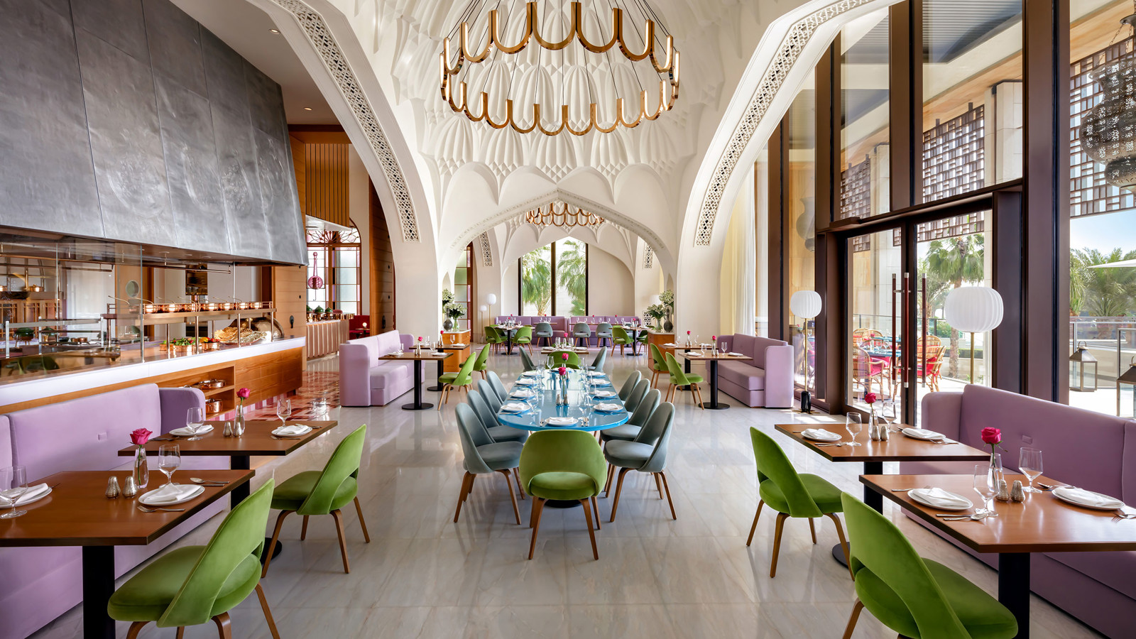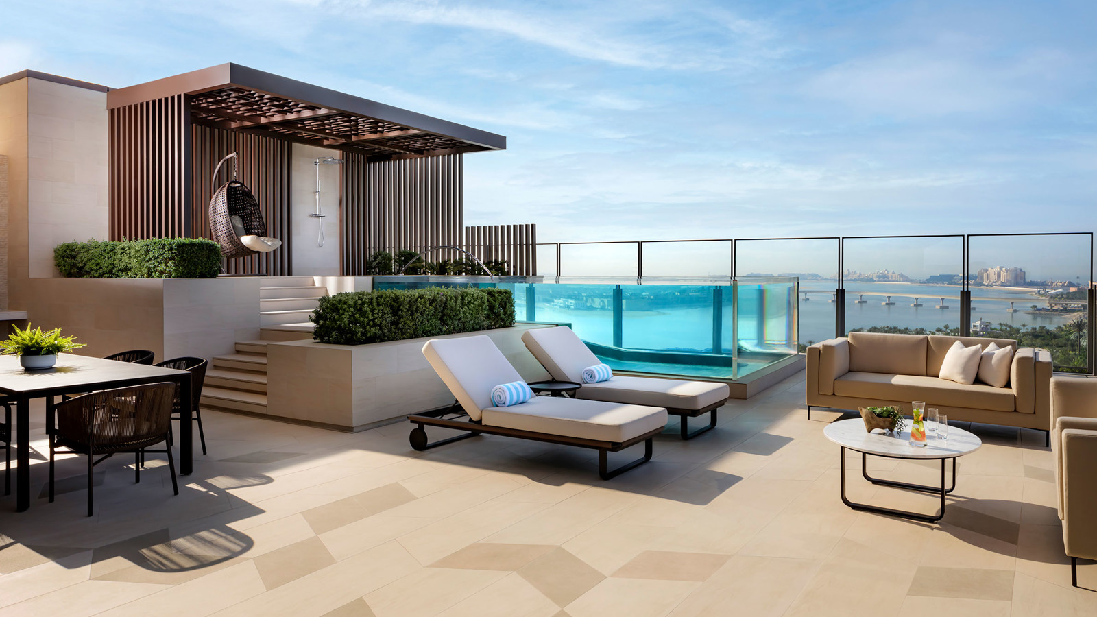 Välkommen att checka in på ett nytt superlyxigt hotell på den konstgjorda halvön Jumeira Palm Island. Atlantis The Royal är arkitektoniskt underverk som har tagit sju år och kostat hisnande 17 miljarder att bygga. Resultatet är 795 rum, sviter och lyxvåningar. Alla med milsvid utsikt och många med privat trädgård, pool och egen del av stranden. Lobbyn har wow-faktor till tusen med tre gigantiska akvarietankar plus världens största samling levande maneter. Bland faciliteterna hittar du 17 restauranger och barer i absolut världsklass. Dessutom ett konditori som drivs av den brittiska kungafamiljens och kändiselitens favoritbagare Mich Turner. Du hittar också ett 3000 kvadratmeter stort spa, komplett med hamman och yogagräsmatta samt en infinitypool som svävar 90 meter över marken. Det råder varken brist på äventyr eller aktiviteter. Som gäst har du nämligen tillgång till allt från vattenland till akvarier och djurparker på systerhotellet Atlantis The Palm. Tillsammans har de två hotellen över 90 pooler. Ta med badkläder!