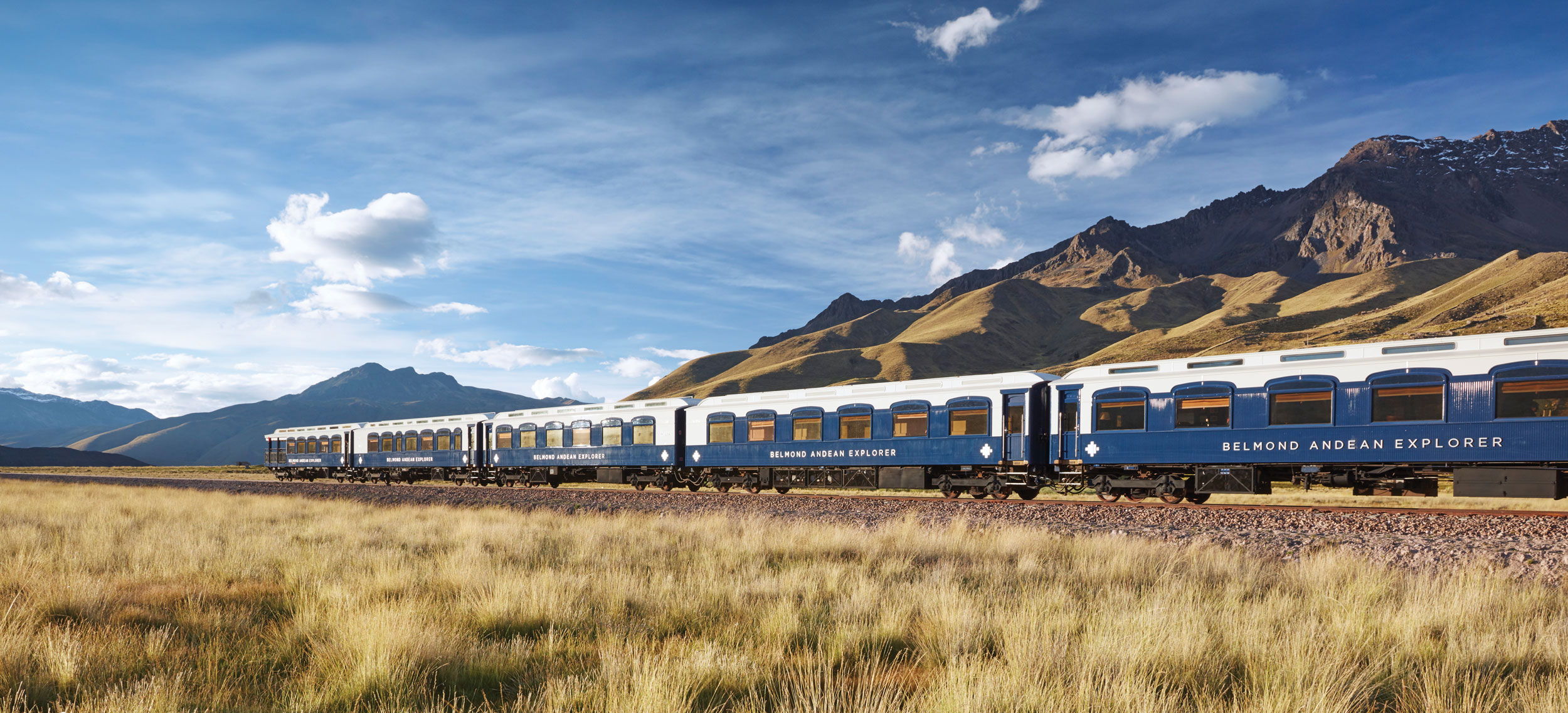 Tåget Andean Explorer är Sydamerikas första riktiga lyxtåg med övernattning och Belmonds andra tåglinje i Peru efter The Hirham Bingham som erbjuder dagsturer mellan Cusco och Machu Picchu. Andean Explorer är en av världens högst belägna järnvägslinjer och löper med fantastisk utsikt över Anderna från Cusco till Titicacasjön och vidare till Arequipa. Fyra separata turer ger gästerna möjlighet att utforska ravinen Colca, öarna i Titkakasjön och spännande avstickare till avlägsna byar längs vägen. Ombord på Andean Explorer råder all inclusive, både måltider och utflykter ingår i priset. Interiörerna i de ljusa, stora kupéerna är inredda i mjuka toner av alpackaull och andinsk skiffer i grått av formgivaren Inge Moore vid The Gallery HBA. Känslan är modern och för tanken snarare till designhotell än tågromantik i murriga Pullman-vagnar. Det exklusiva tåget har två restaurangvagnar, en observationsvagn med utomhus balkong samt en härlig loungevagn. Den spännande menyn är komponerad av köksmästaren på hotellet Monasterio i Cusco.
