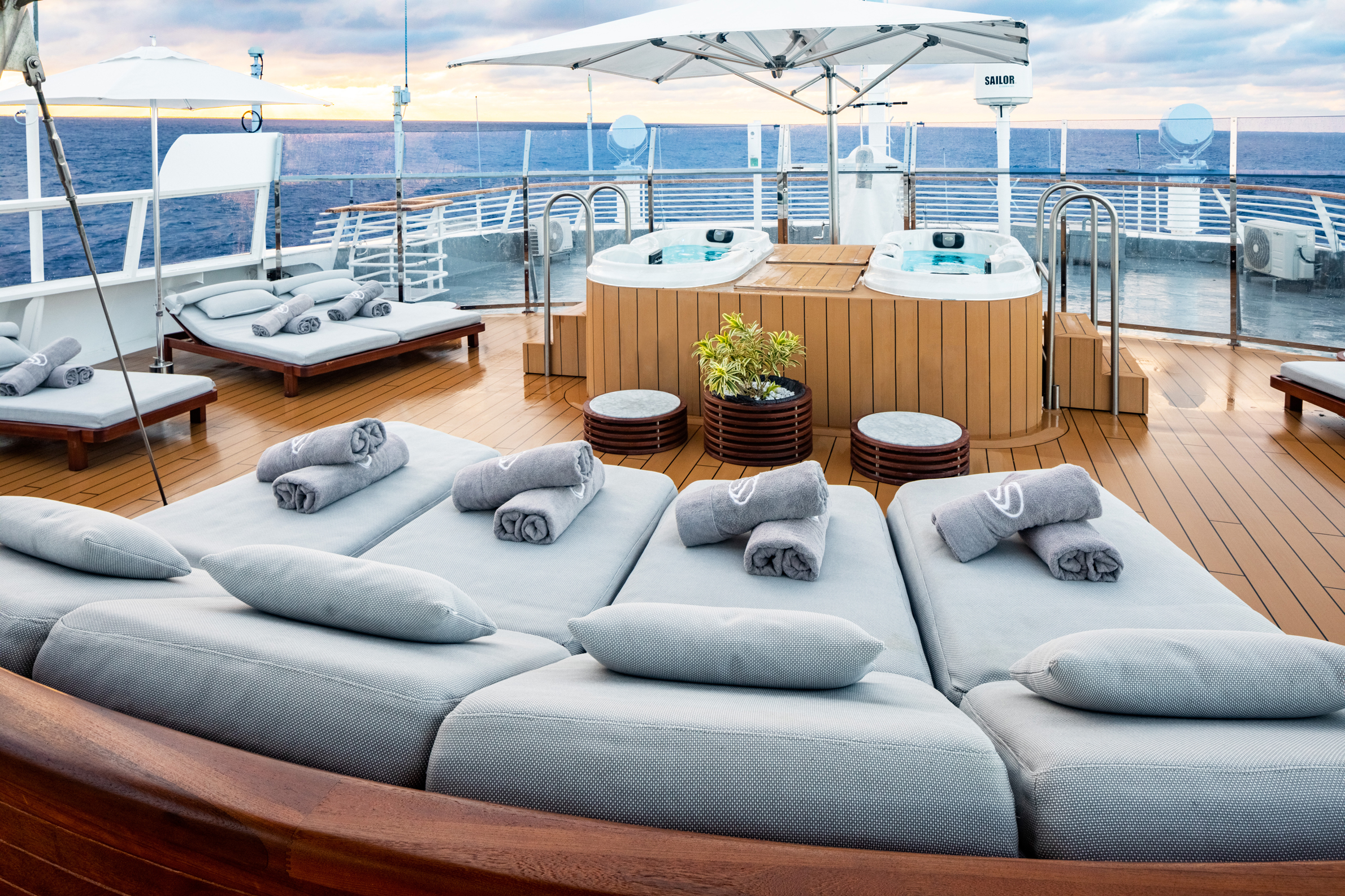 SeaDream II är en lyxyacht i absolut världsklass som erbjuder en intim och exklusiv kryssningsupplevelse. Med plats för endast 112 gäster och en personalstyrka på 95, är servicen ombord både personlig och förstklassig – en känsla av att vara ombord på sin egen privata yacht snarare än på ett kryssningsfartyg. Yachten är känd för sin avslappnade men eleganta atmosfär, där varje detalj är noggrant genomtänkt för att skapa en oförglömlig resa. Ombord kan gästerna njuta av gourmetmåltider skapade av skickliga kockar, alltid med lokala och färska råvaror. Serveringen sker både inomhus och utomhus, där du kan njuta av dina måltider under bar himmel. SeaDream II:s hyttutbud består enbart av lyxiga sviter med havsutsikt. Här kan du koppla av i eleganta utrymmen med moderna bekvämligheter och personlig service dygnet runt. För den som vill ha ännu mer lyx erbjuder Owner’s Suite och Admiral Suite enastående komfort och extra utrymme. Ombord finns ett överdådigt spa som erbjuder massage och skönhetsbehandlingar, samt ett soldäck där du kan koppla av på balisängar – perfekta för stjärnskådning eller en eftermiddagslur. För de mer äventyrliga gästerna finns en marina i aktern med vattensporter som kajak, paddleboard och snorkling, direkt från fartyget.