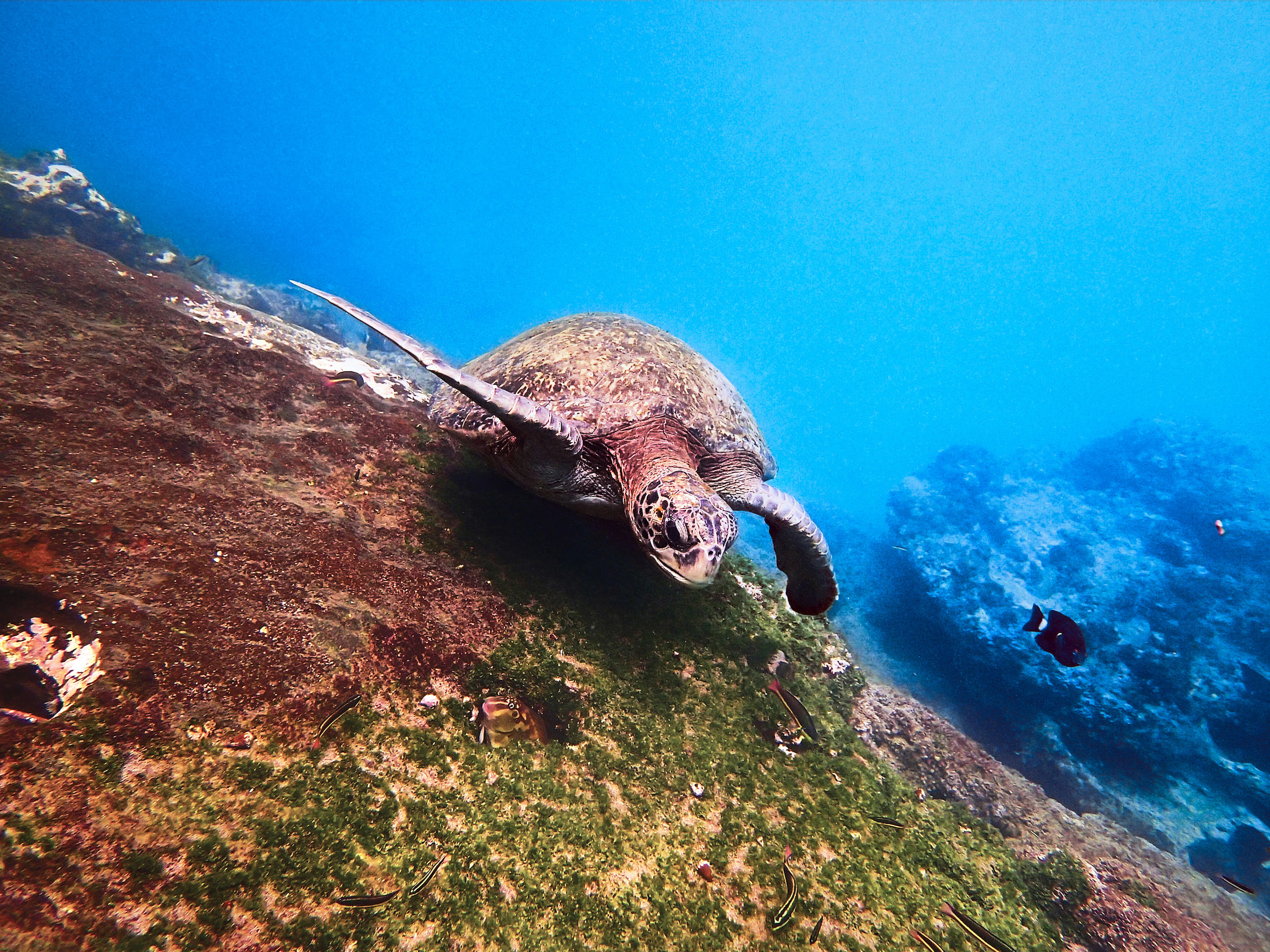 ”För mig är Galápagos övärld ett paradis mitt ute i Stilla havet med vita korallstränder, häftiga lavaformationer, turkost hav och orädda djur i spektakulära färger. Och när man stoppar ner huvudet under vattnet uppenbarar sig om möjligt en ännu vackrare värld.”