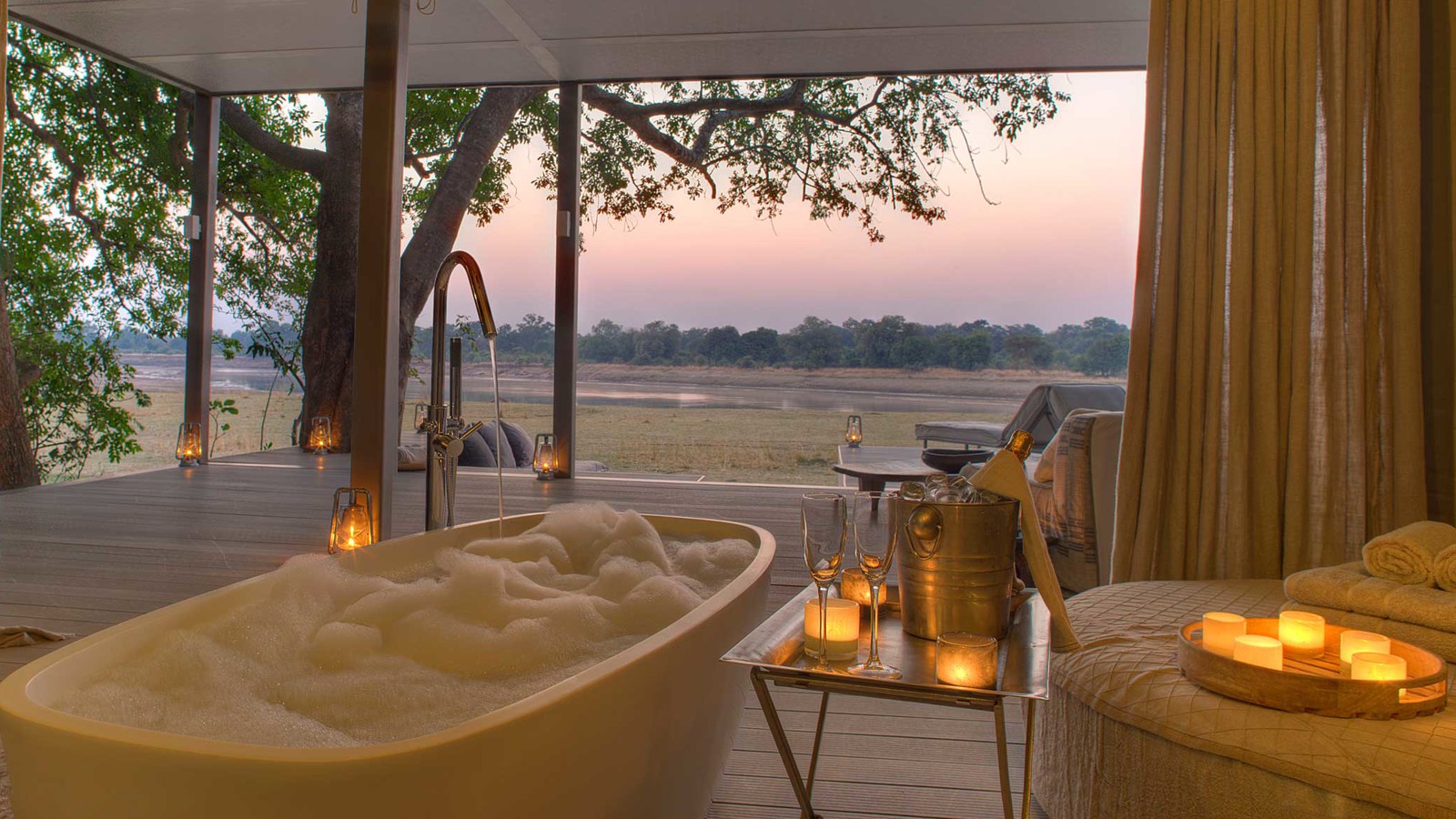 Du väcks vid 5.30-tiden efter en god natts sömn, dricker te och äter gröt vid brasan. Sen är man ute på safari i cirka tre timmar. Väl tillbaka på campen väntar en stadig brunch och efter det har du i regel ledigt ett par timmar för vila. Innan eftermiddagssafarin bjuder personalen på Afternoon Tea. Höjdpunkten brukar vara ”sundownern”– som avslutning på eftermiddagssafarin. En drink och lite snacks uppdukat på en magisk utkiksplats i solnedgången där guiden har uppsikt åt alla håll. Middagen serveras vid campen runt 19.00 och vid 21.00-tiden sover du redan.