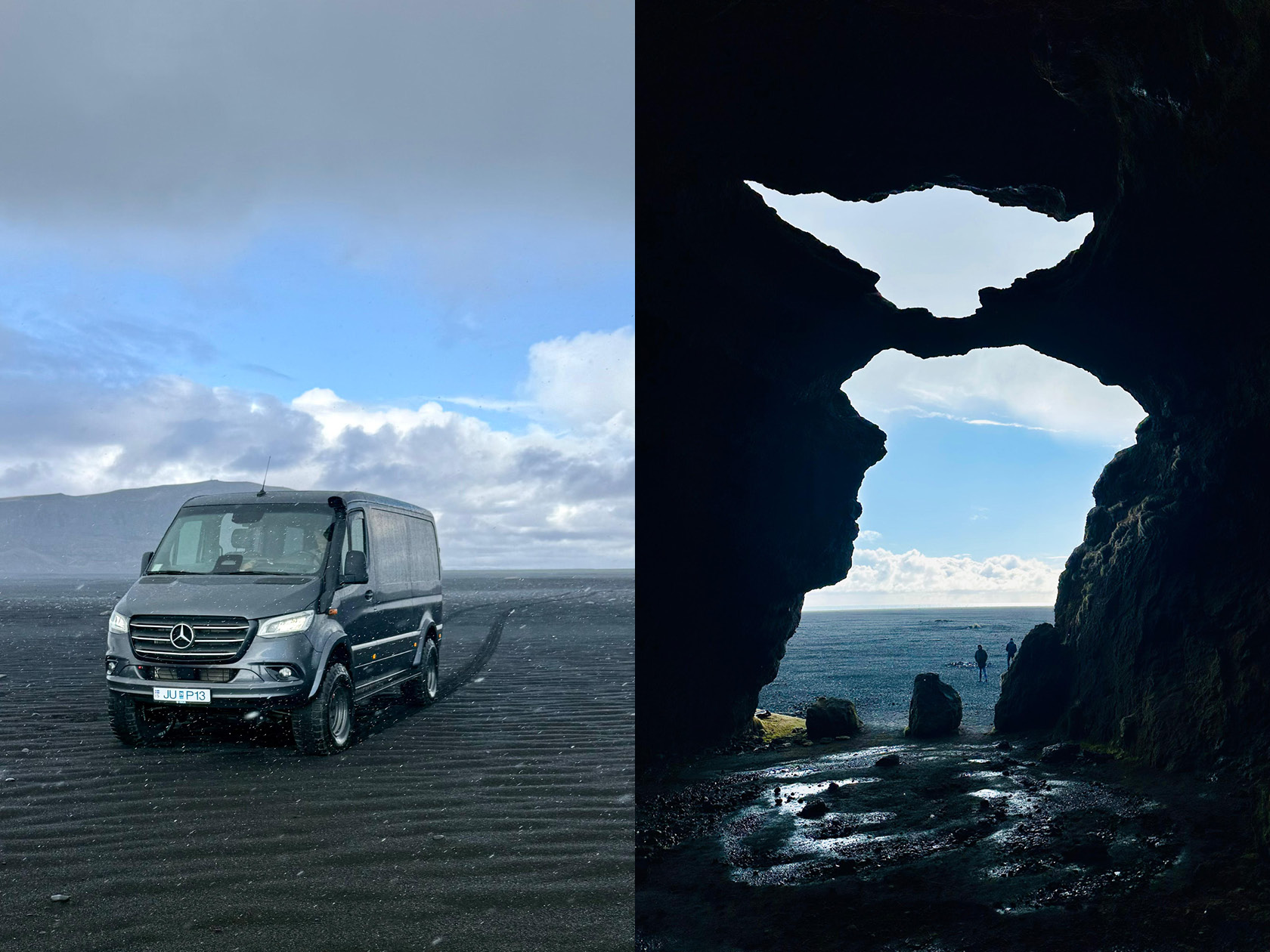 ”Vill ni se en grotta medan regnet drar förbi?” säger Kristjan. Han gör en snabb u-sväng, kör några hundra meter och stannar igen. Mitt i det råa, vindpinade landskapet reser sig en klippa som, från rätt vinkel, påminner kusligt mycket om den ikoniska Star Wars-figuren Yoda. Förundrade kliver vi in och tar några bilder. När vi kommer ut igen har regnet dragit vidare och solen bryter igenom molnen. Vi rullar tillbaka ut på stranden.
