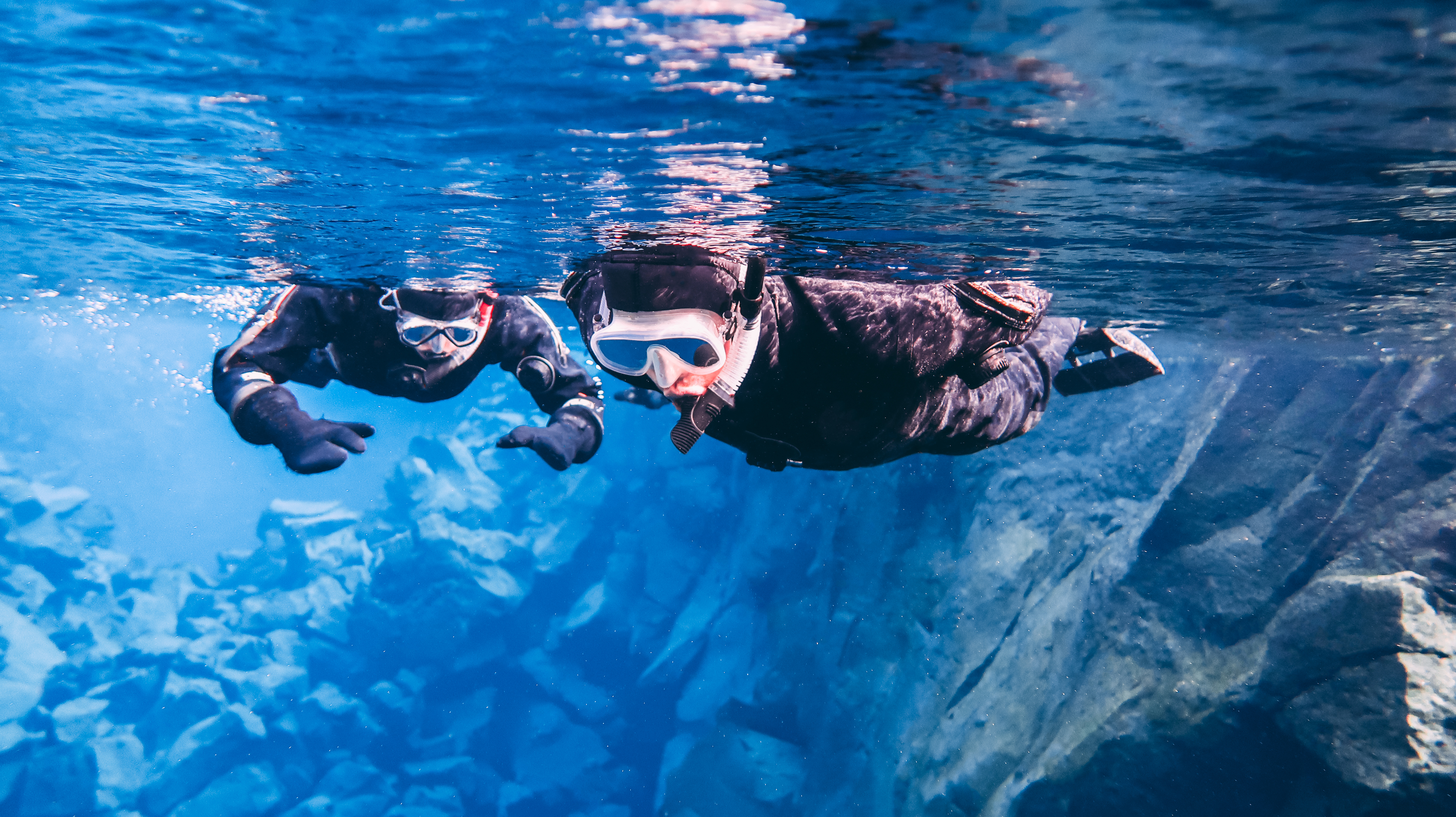Innan de första besökarna anländer glider du ner i det kristallklara vattnet vid Silfrasprickan, där du snorklar eller dyker mellan två kontinenter; Amerikas och Euroasiens. Sikten är oändlig. Tystnaden total.