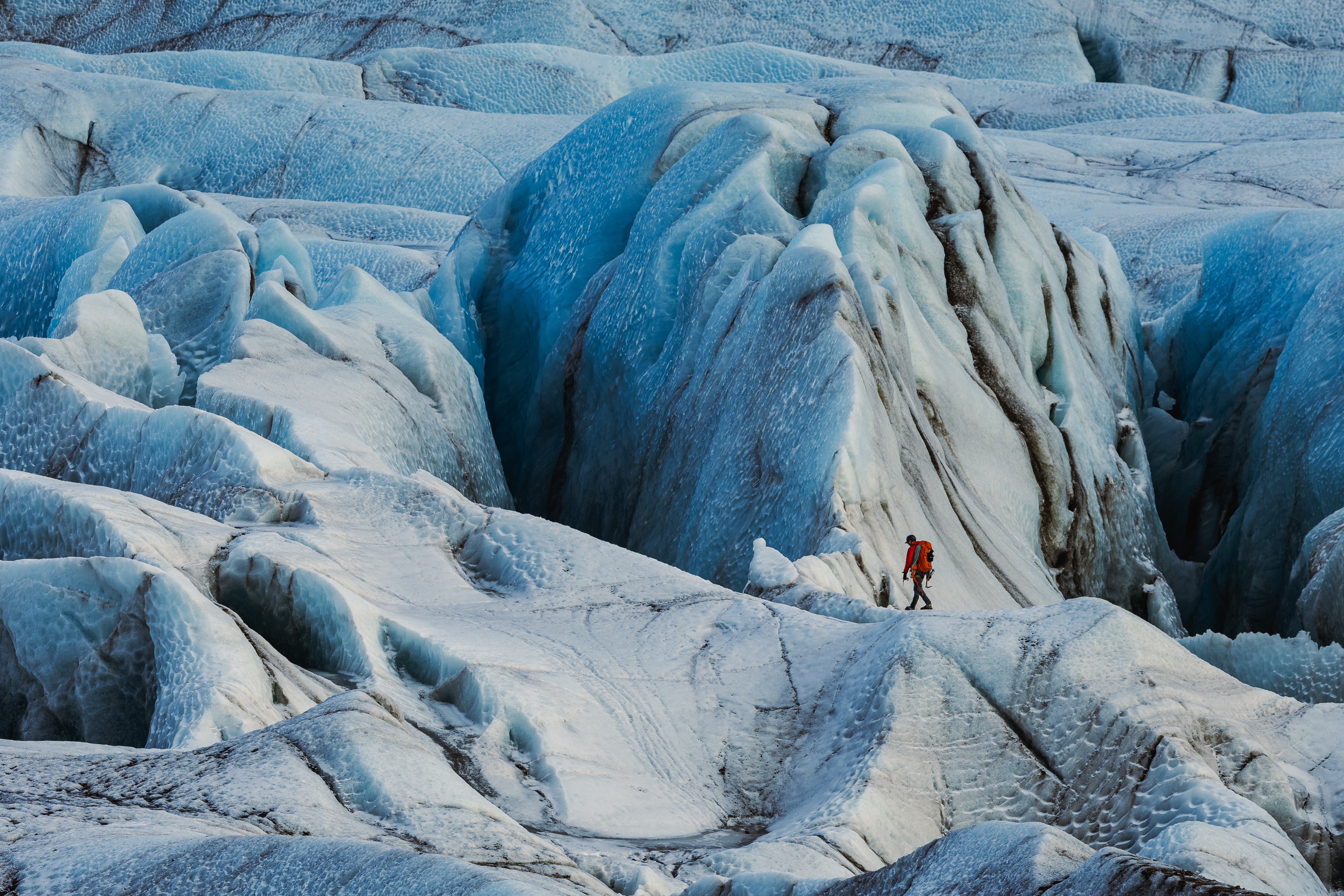 Tillsammans med er privata guide sätter ni stegjärnen i den blåskimrande isen och tar ni er fram mellan djupa sprickor och slingrande smältvatten. En glaciär är aldrig densamma två gånger – och det här ögonblicket är bara ert.