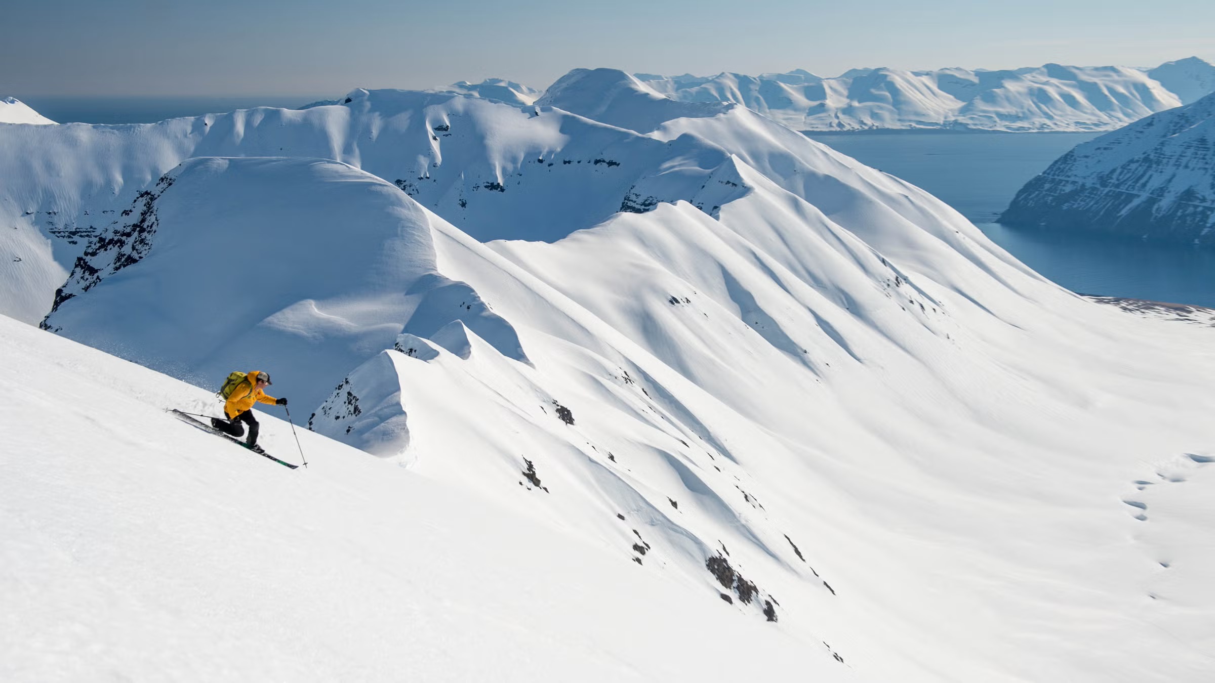 Från Deplar Farm, Europas mest isolerade lyxretreat, tar helikoptern dig till orörda toppar i Islands mest avlägsna landskap. Du åker skidor från berg till hav – utan spår, utan människor, utan begränsningar.