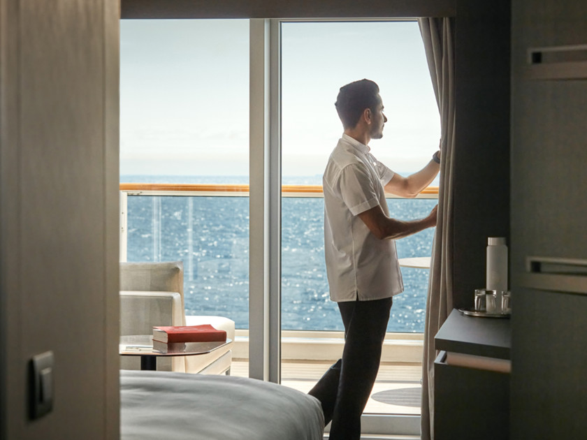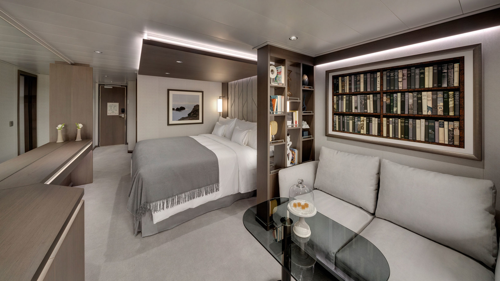 Sviterna ombord är designade med bekvämlighet och elegans i åtanke, med rymliga sovrum, lyxiga badrum och privata balkonger som erbjuder fantastisk utsikt över havet.