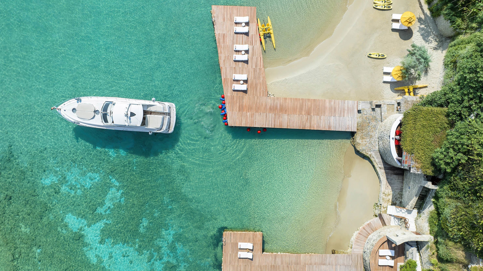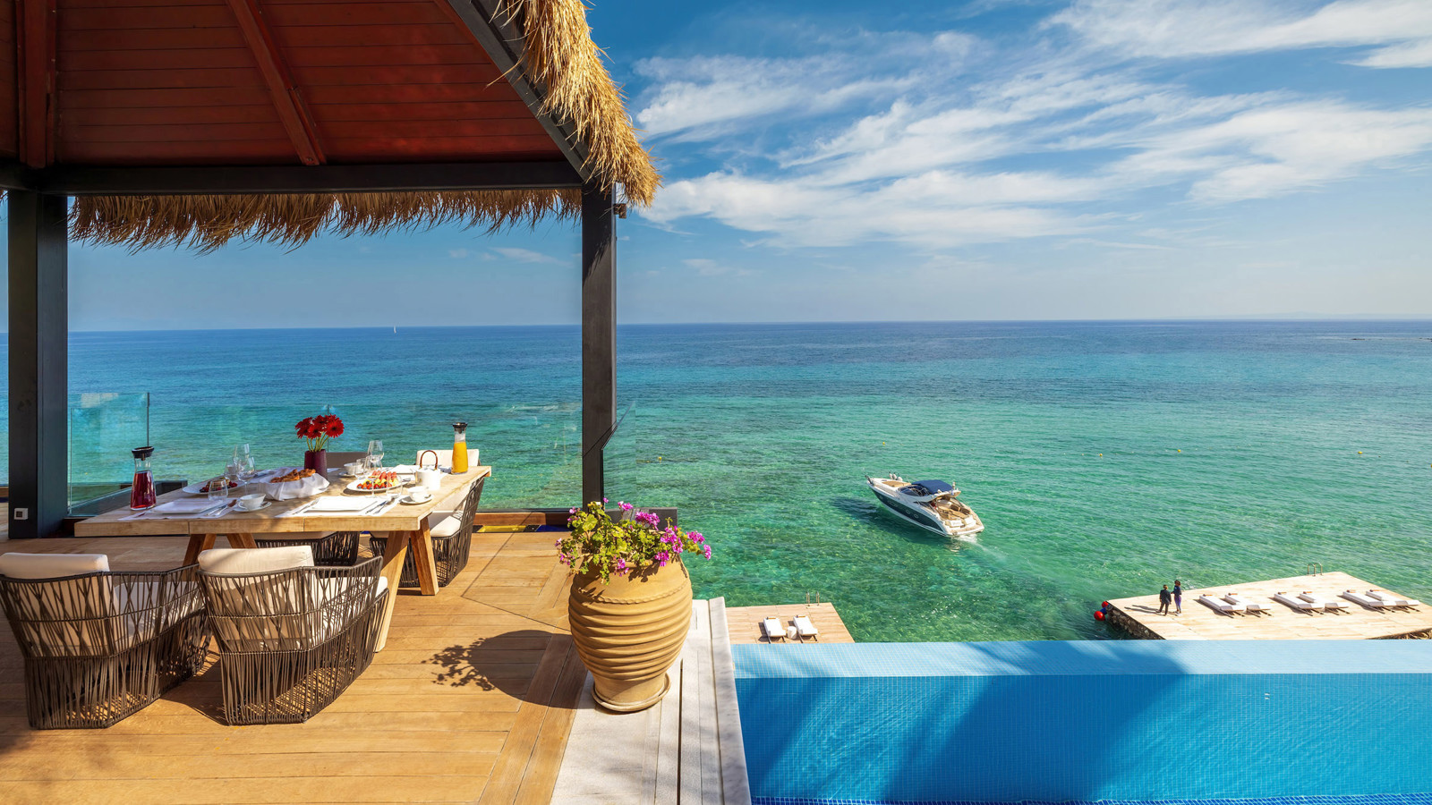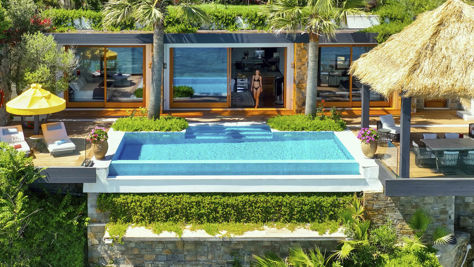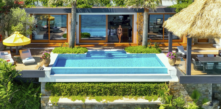 Alla nio villor är inramade av rosa bougainvillea och byggda åtta till tio meter över vattenytan, för att säkerställa total avskildhet tillsammans med oavbrutna vyer över det turkosa vattnet. Du behöver bara ta ett par barfotasteg från din privata, uppvärmda pool för att komma ner till sandstranden. Villorna har upp till fyra sovrum och vissa har en privat del av stranden. Där hittar du även Porto Zantes spa som lockar med över 20 behandlingar från världens alla hörn.