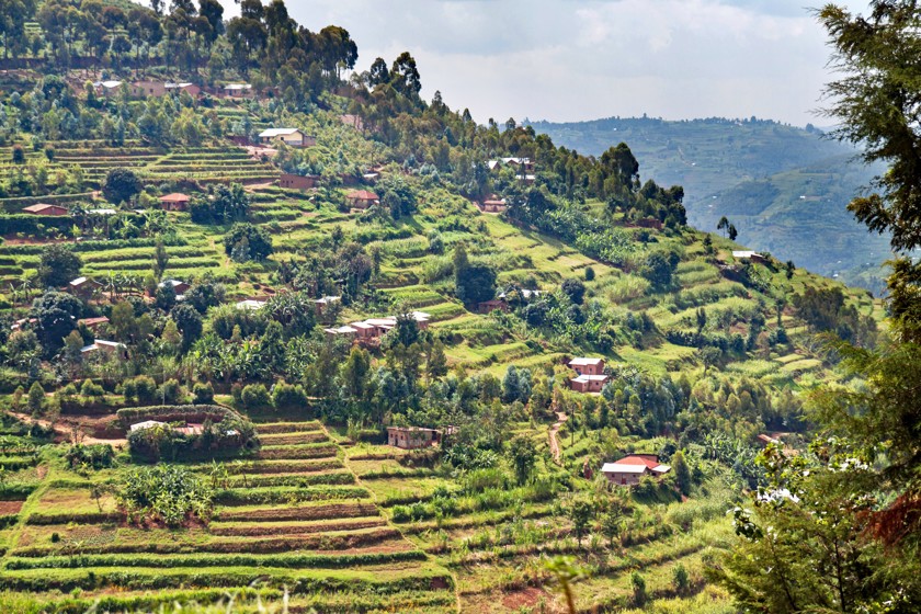 Den nästan tre timmar långa bilresan från Kigali till vulkanbergen nära gränsen till Kongo, gick upp och ner för kullar, förbi majsfält, byar med hus av lera, ljusgröna teplantager och människor som vandrade längs med vägen med stora säckar gräs på huvudena och spadar i händerna.