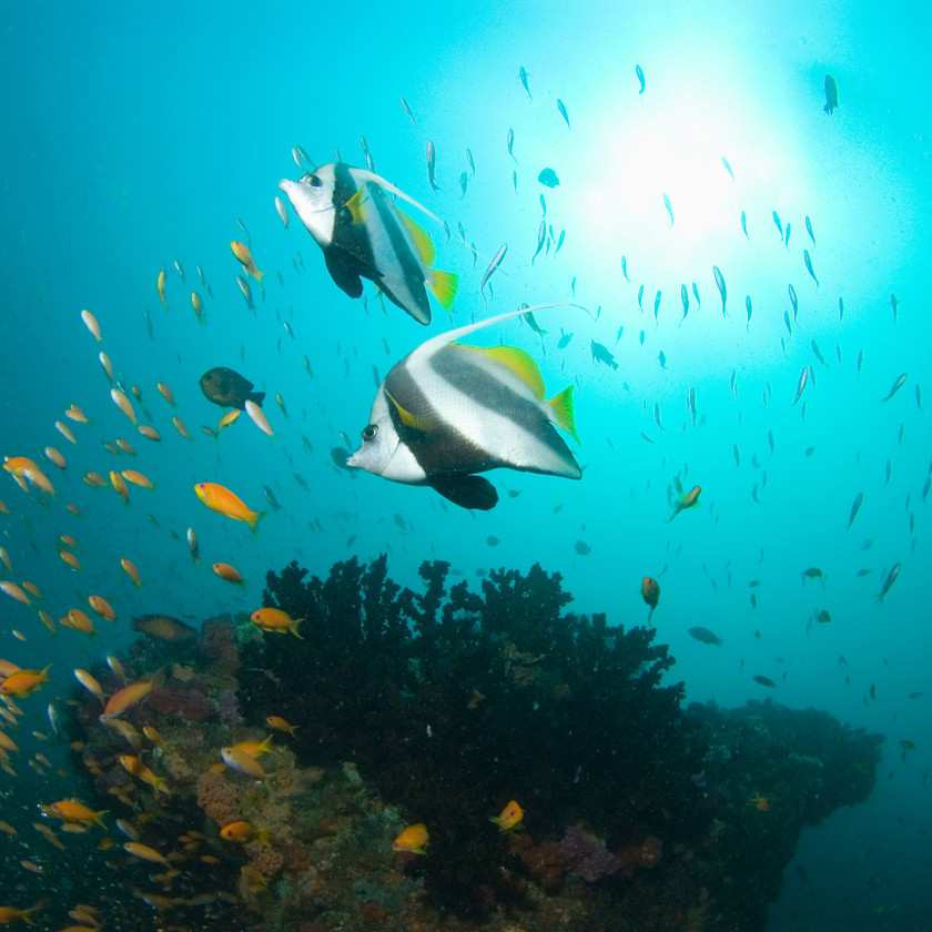 Delfiner, kokoskrabbor, koraller, sköldpaddor och färgglada fiskar.