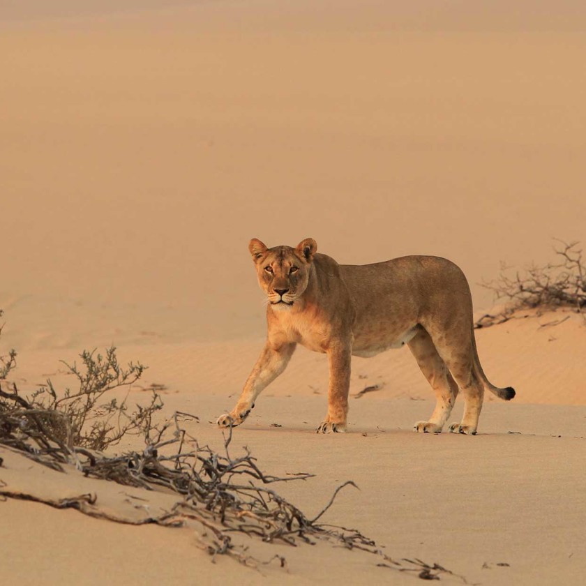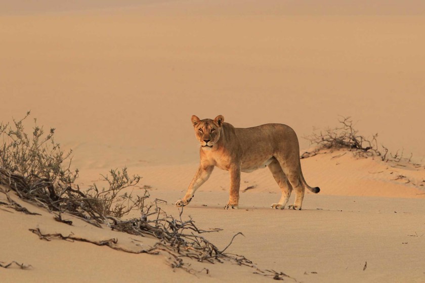 Världens enda ökenelefanter, utrotningshotade svarta noshörningar, geparder, springbock och oryxantiloper. Leopard om tur har tur.