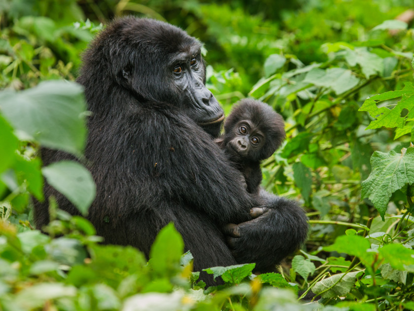 De unika bergsgorillorna, skogselefanter, bufflar, leoparder, mängder av fåglar och den utrotningshotade apan Kandts markatta.