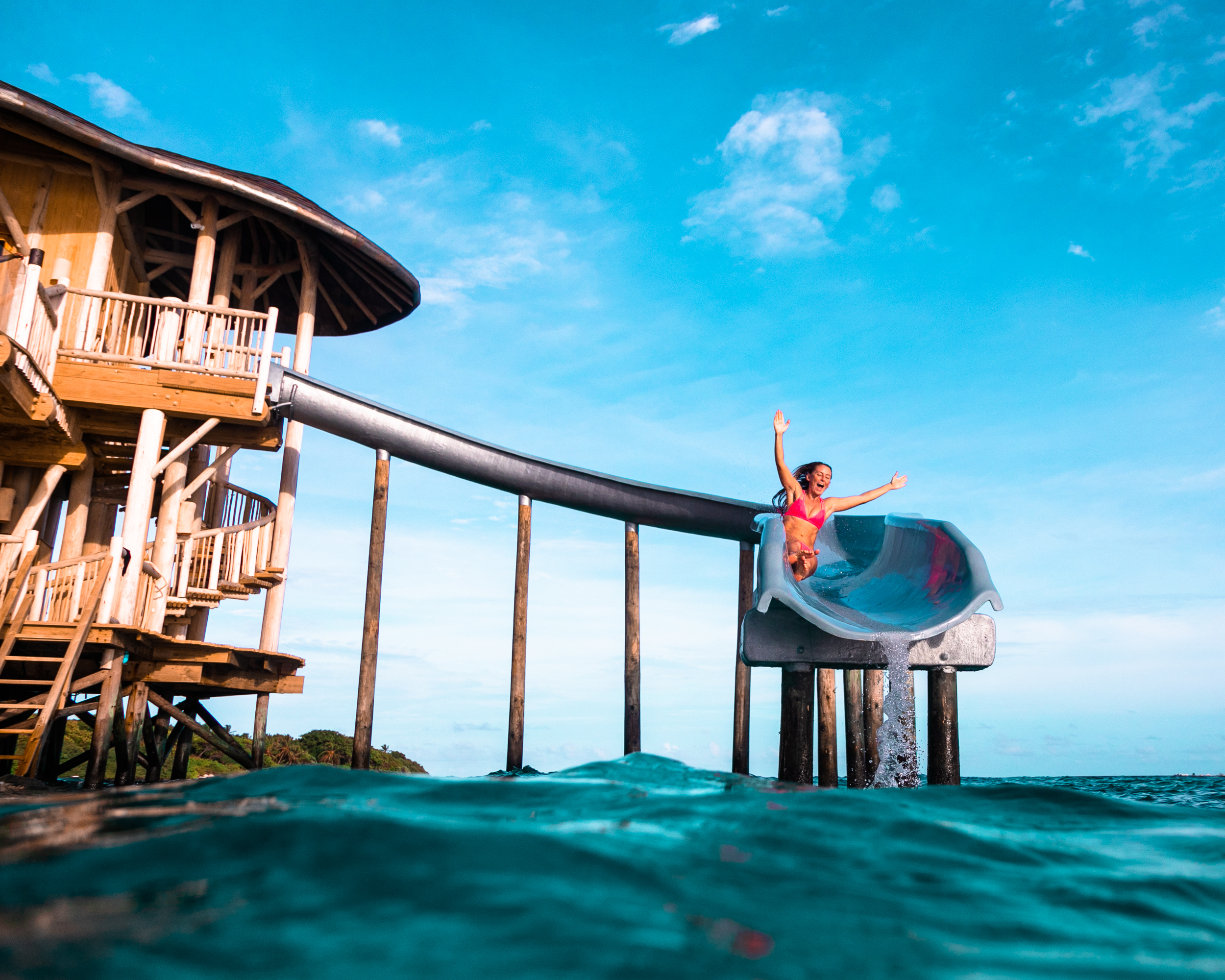”Sist jag var där hade jag bara ett dygn på Soneva Jani. Vi hade två timmar innan vi skulle åka därifrån. Jag frågade min kompis Mia, ska vi äta lunch eller åka rutschkana? Vi bara tittade på varandra och sa ”rutschkana!” Vi sprang upp och ner säkert 20 gånger. Fantastiskt roligt!”