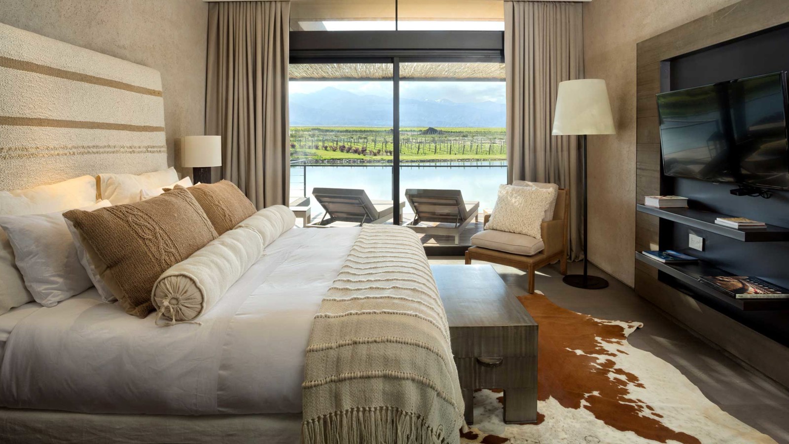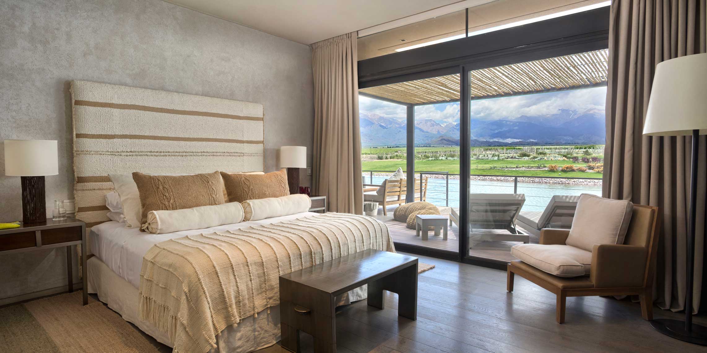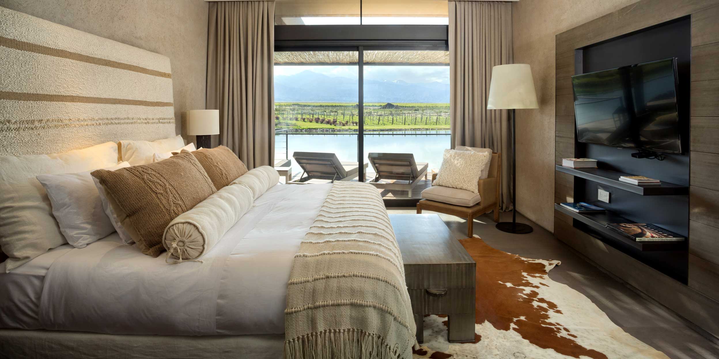 The Vines Resort & Spa i Mendoza är mer ett fantastiskt hotell. Det är mer som en livsstil och ett sätt att vara, med möjlighet att konversera över ett glas utmärkt vin i en underbart vacker natur. Allt i symbios med en varmhjärtad gästfrihet. Vid foten av de majestätiska Anderna och i den prestigefyllda Uco Valley och inbäddade bland de egna vingårdarna ligger de 22 villor som utgör The Vines underbara boende. Villorna är modernt och omtänksamt designade i ljusa färger med rustik lyx. De har stora trädgårdar eller terrasser, några med egen eldplats, pool och sköna soffor med magnifik utsikt över bergen och vingårdarna. Några av villorna har takterrass. För regin i köket står internationellt kända mästerkocken Francis Mallmann som skapar rätter och serverar den berömda argentinska biffen på bästa sätt. I restaurangen Siete Fuegos bjuder han på specialrätter som 9-timmars långsamt grillad entrecôte eller gjutjärnsbakad lax krönt i salt. Alla rätter kombineras med prisbelönta Mendoza-viner. Hotellet anordnar aktiviteter där du till exempel kan ”smutsa ned händerna” och blanda ditt eget vin med vinmakaren Santiago Achaval. Det anordnas även ridning med gauchos och spännande flugfiske. För den aktive finns även ett gym med gruppträning som yoga, bergsklättring och cykling bland vingårdarna.
