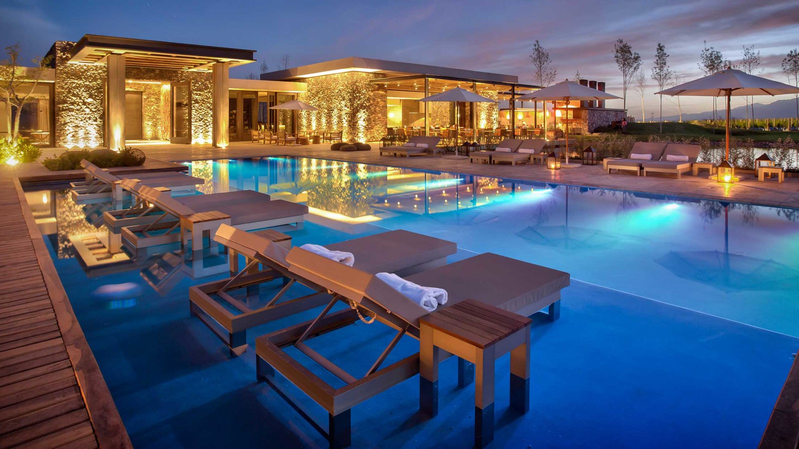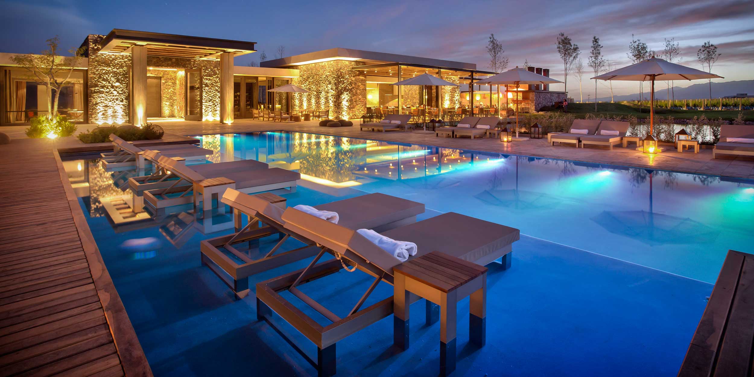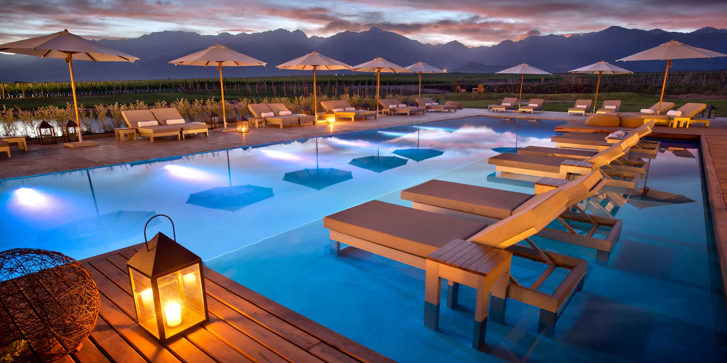 The Vines Resort & Spa i Mendoza är mer ett fantastiskt hotell. Det är mer som en livsstil och ett sätt att vara, med möjlighet att konversera över ett glas utmärkt vin i en underbart vacker natur. Allt i symbios med en varmhjärtad gästfrihet. Vid foten av de majestätiska Anderna och i den prestigefyllda Uco Valley och inbäddade bland de egna vingårdarna ligger de 22 villor som utgör The Vines underbara boende. Villorna är modernt och omtänksamt designade i ljusa färger med rustik lyx. De har stora trädgårdar eller terrasser, några med egen eldplats, pool och sköna soffor med magnifik utsikt över bergen och vingårdarna. Några av villorna har takterrass. För regin i köket står internationellt kända mästerkocken Francis Mallmann som skapar rätter och serverar den berömda argentinska biffen på bästa sätt. I restaurangen Siete Fuegos bjuder han på specialrätter som 9-timmars långsamt grillad entrecôte eller gjutjärnsbakad lax krönt i salt. Alla rätter kombineras med prisbelönta Mendoza-viner. Hotellet anordnar aktiviteter där du till exempel kan ”smutsa ned händerna” och blanda ditt eget vin med vinmakaren Santiago Achaval. Det anordnas även ridning med gauchos och spännande flugfiske. För den aktive finns även ett gym med gruppträning som yoga, bergsklättring och cykling bland vingårdarna.