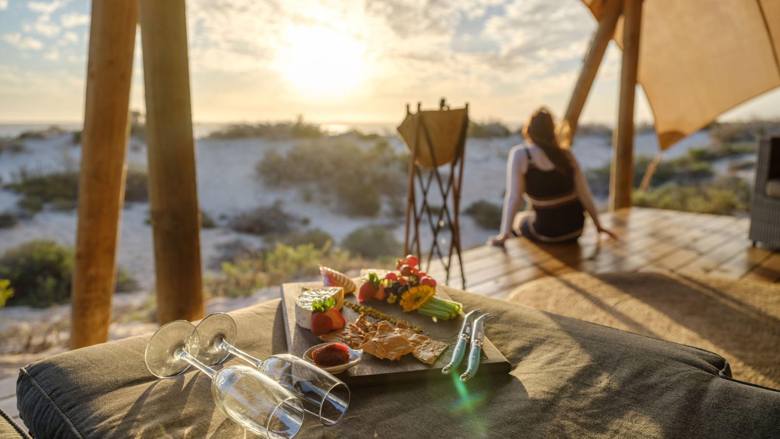 Sal Salis ligger bland sanddyner och raviner i Western Australias avlägsna och spektakulära vildmark. Lodgen har en vacker stil som kallas ”Wild Bush Luxury” och ligger på stranden bara några meter från korallreven i Ningaloo - världens bästa plats om man vill dyka med havets vänliga jätte, valhajen. De nio stora sovtälten står på trädäck och är förbundna med varandra och lodgen med upphöjda gångvägar. Tälten har alla privat badrum, stora komfortabla Jarrah-sängar och underbar utsikt. Här vaknar du till fågelsång och säger ”G’day mate!” till en nyfiken känguru när du är på väg ned för ett morgondopp i kristallklara Ningaloo. Måltider serveras i lodgen, och här finns snorkelutrustning, våtdräkter och flytvästar för den som vill utforska revet. Nere på stranden finns skugga, solbäddar och en självserverande bar med iskalla drycker. Kom ihåg att Sal Salis ligger långt från närmsta stad och passa på och njut av en digital detox långt från Internet och mobiltelefontäckning.