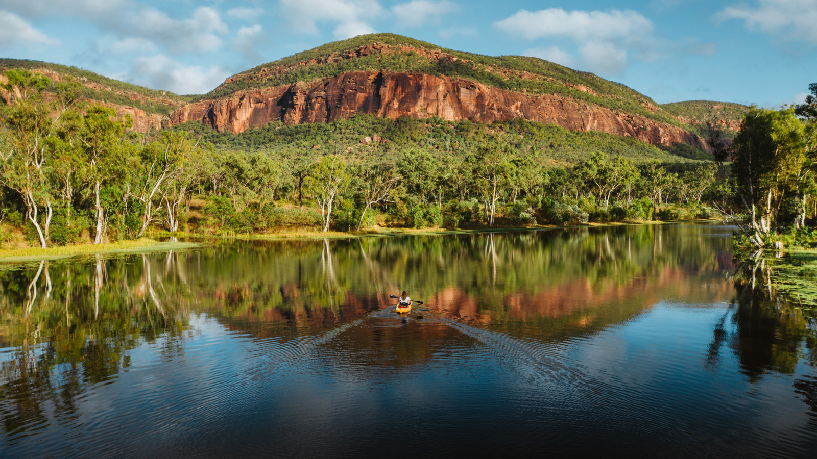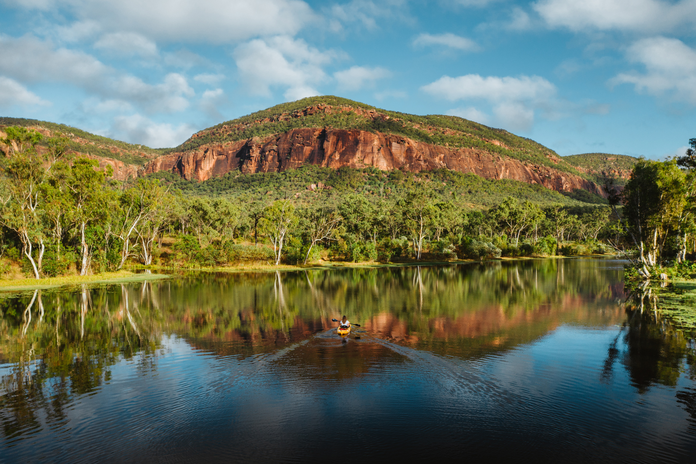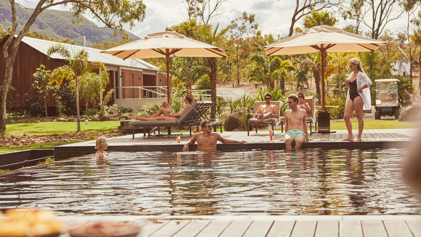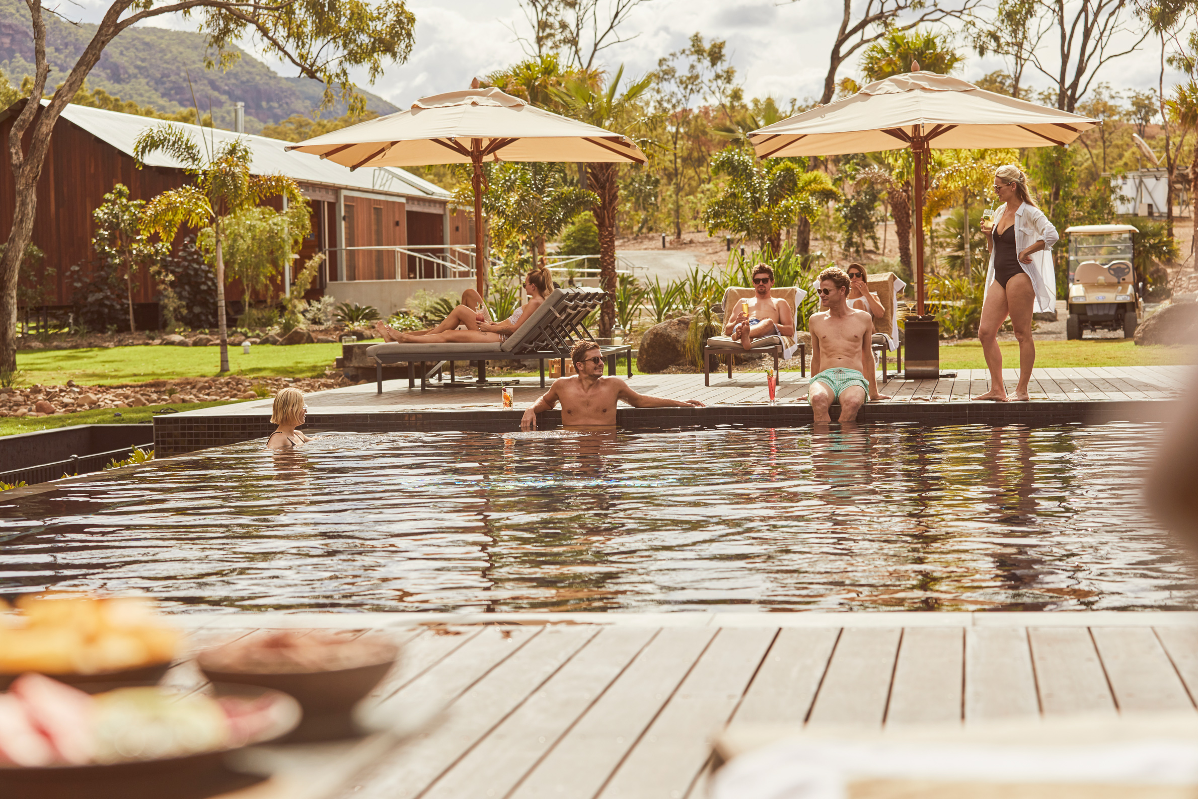 I skuggan av majestätiska Mount Mulligan i norra Queensland och omgiven eukalyptusskogar ligger Mt. Mulligan Lodge, en fungerande boskapsstation för besökande gäster. Huvudbyggnaden är rymlig med pastoral takhöjd, träbjälkar och överdådiga lägerstolar. Här finns lodgens restaurang där gästerna kan få njuta traditionella rätter gjorda av de finaste, lokala råvarorna och serverade efter säsong. Naturligtvis kompletteras måltiderna med viner från Australiens bästa vingårdar. Boendet består av både lyxiga tält och sviter, alla inredda i jordnära färger, sten och trä. På verandan finns rustika badkar med magnifik utsikt över den glittrande dammen och Mt. Mulliganberget. Familjesviten består av två sovrum och badrum, perfekt för familjer med barn i alla åldrar. Aktiviteterna på Mt. Mulligan Lodge är många. Här kan man förkovra sig i Australiens stora guldrush på nära håll. Spökstad och kolgruvor finns att utforska. Med terrängfordon tar ni er genom det otämjda outbacklandskapet för att fiska barramundi, åka på vildmarkssafari eller bedriva stjärnskådning. Helikoptertur över det magnifika landskapet är nästan ett måste. Bli inte förvånad om ni landar på en öde plats och picknicklunchen är uppdukad bara för er!