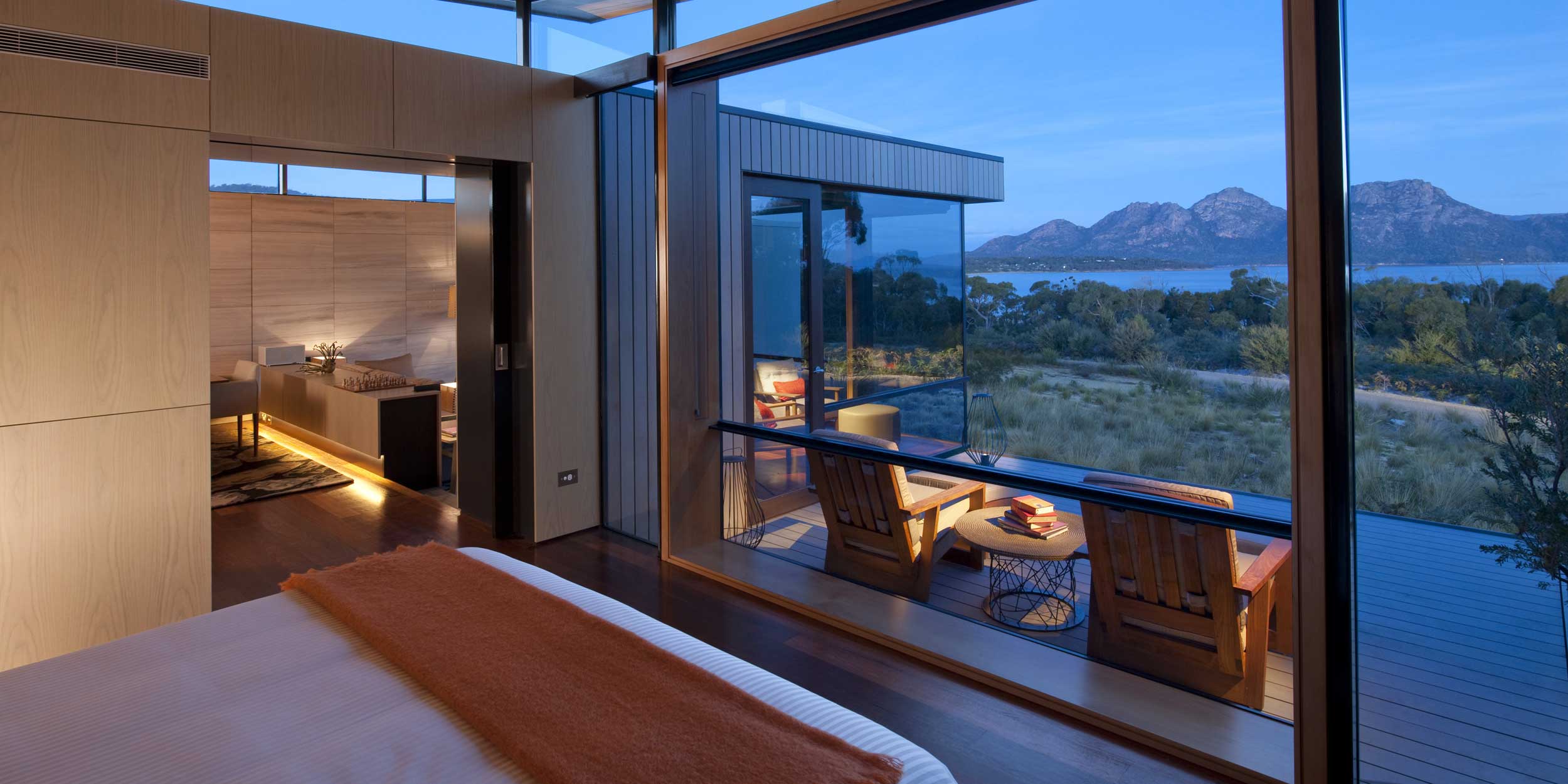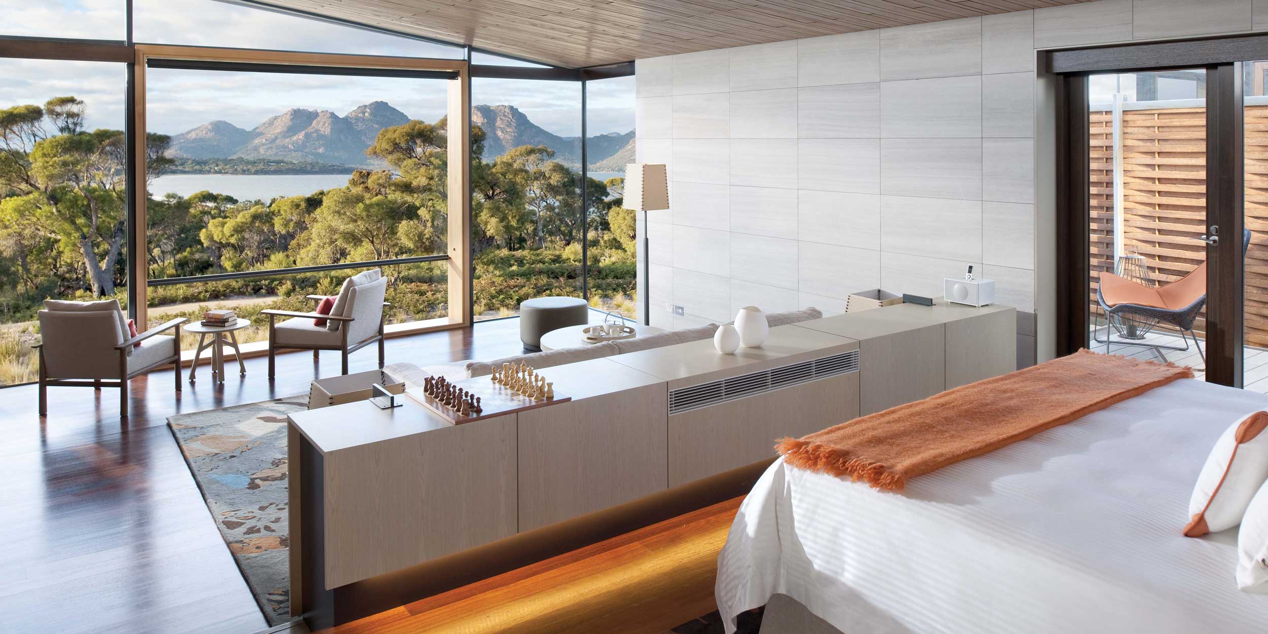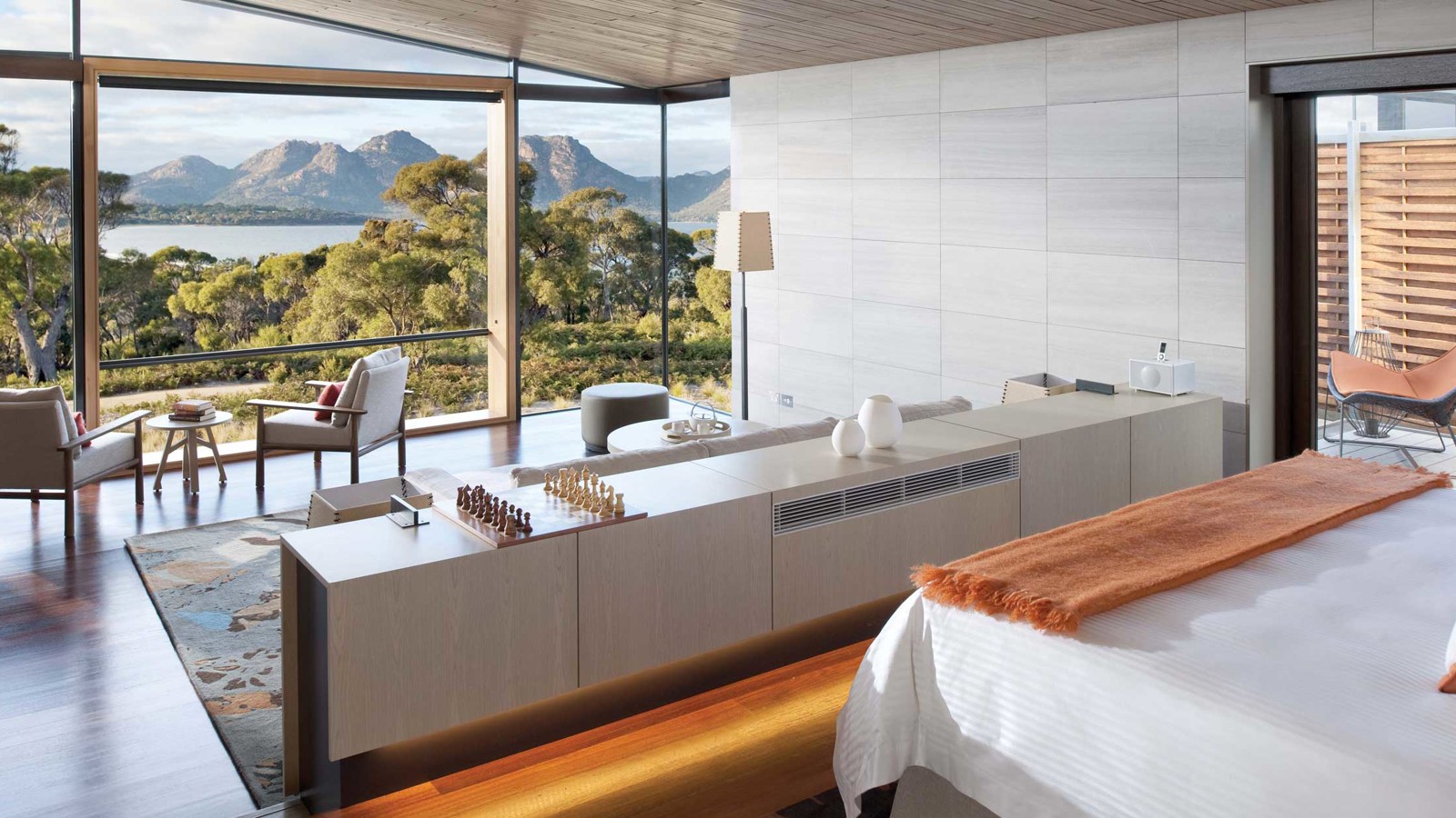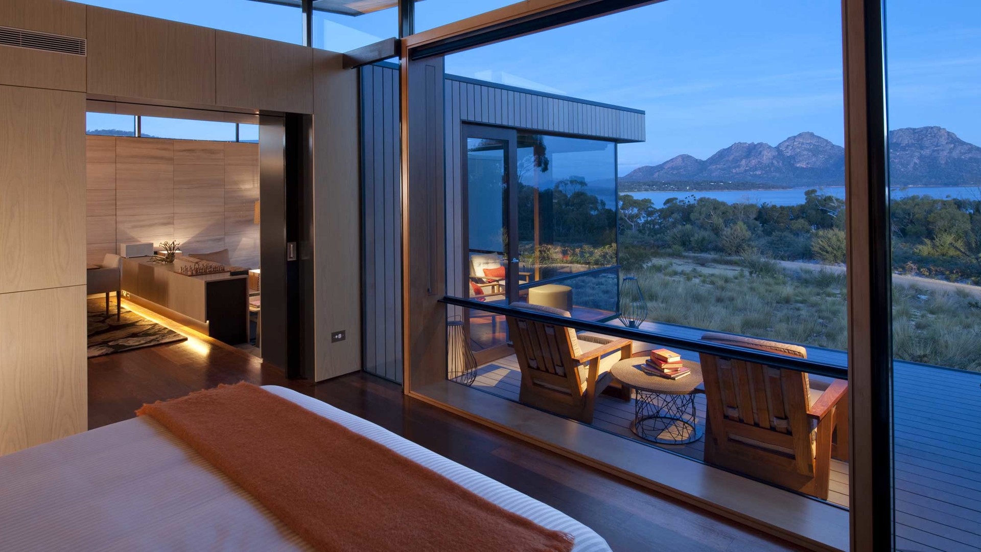 Saffire Freycinet på Tasmanien är en australiensisk nykomling bland medvetna eco-lodger och ligger med en hisnande utsikt över de orörda vattnen i Great Oyster Bay. Stilen är sofistikerat intim och restaurangen har specialiserat sig på genuina smaker med lokala råvaror. Från frukost till avsmakningsmenyer. Lodgen har 20 lyxiga sviter som alla är byggda att erbjuda största möjliga avskildhet och bästa vyer. Inredningen är en iögonfallande mix av nytt och gammalt, blandat med lokala timmerstockar samt bland 1900-talsklassiker som stolar designade av Charles & Ray Emes och Herman Miller. Självklart finns ett modernt utrustat gym och Spa Saffire’s tre behandlingsrum har alla vidunderliga vyer över vildmarken – en av Australiens och Tasmaniens mest trollbindande. Glöm inte hålla utsikt efter öns egen storkändis, den ständigt glupska tasmanska pungdjävulen.