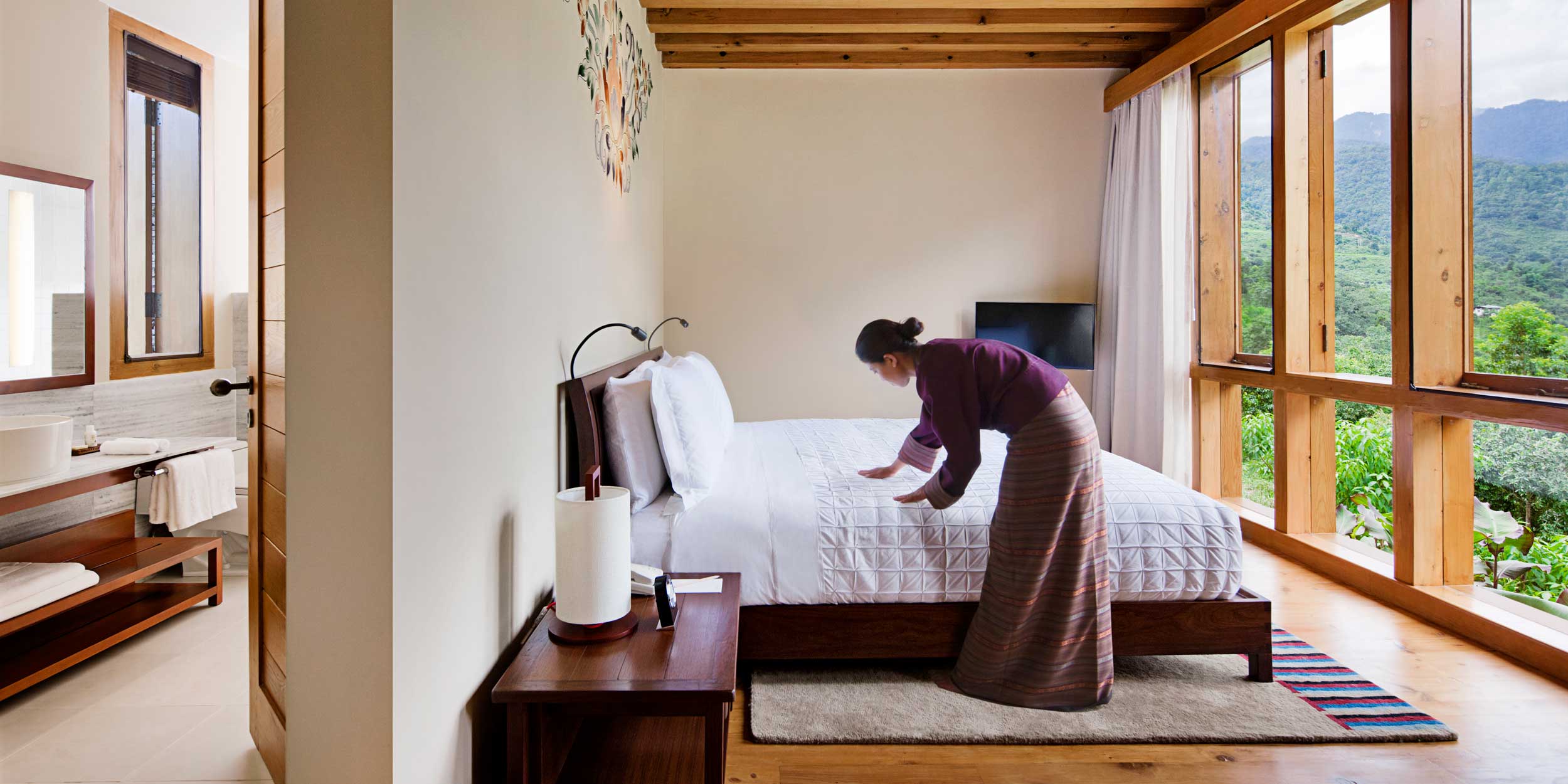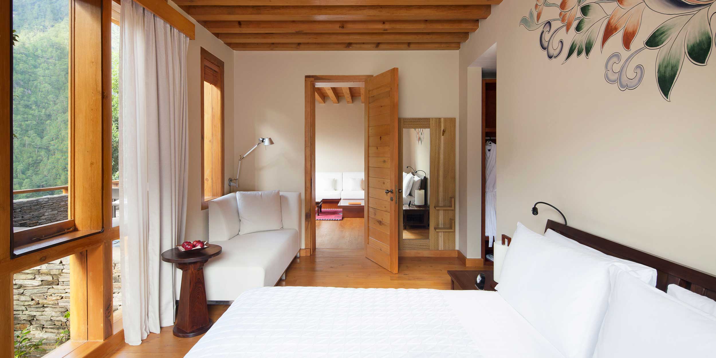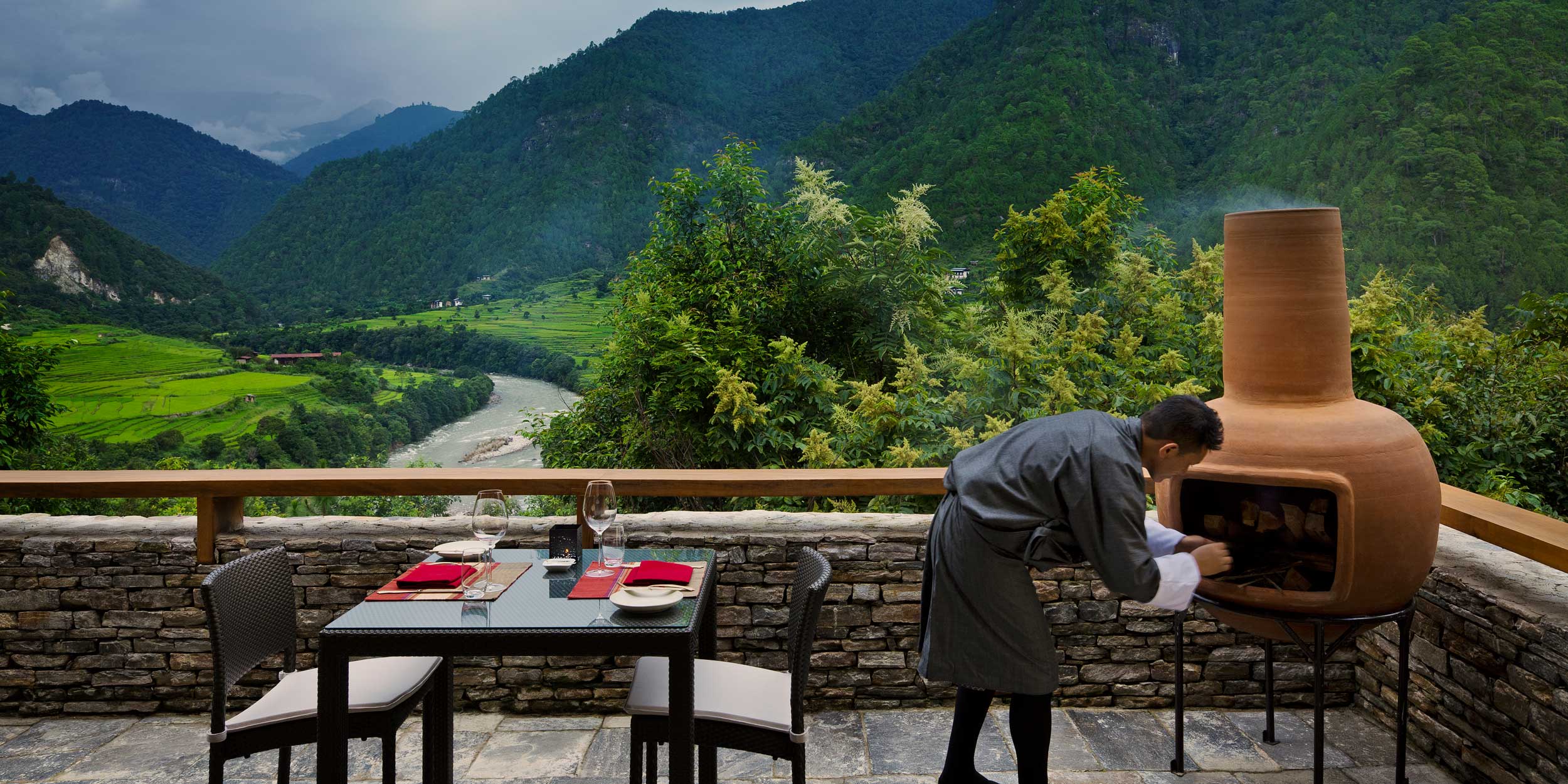 Den lilla intima lodgen COMO Uma Punakha ligger i en sagolikt vacker, avlägsen och stillsam dal i konungariket Bhutan. Med utsikt över Himalayas höga toppar slingrar sig floden Mo Chu genom risfält och fruktträdgårdar. Lodgen har nio rymliga rum och två fristående villor som erbjuder ett boende utöver det vanliga. Rummen har hisnande vyer över dalen, varav några med privata terrasser. Villorna har ett eller två sovrum och en prunkande trädgård med azaleor, rhododendron, kamelior och hortensior. Inredningen är i trä med bhutanesiska designdetaljer och diskret komfort som handbroderade sängöverkast i indisk bomull och handknutna mattor från Nepal. I restaurangen, som är uppkallad efter den traditionella bhutanesiska öppna spisen Bukhari, serveras under lunchen lättare rätter som pasta och sallad. Chef Dewa Wijaya komponerar middagens menyer av säsongsfärska råvaror förädlade till både bhutanesiska och internationella rätter med starka smaker och finess. COMO Shambhala Retreat ligger i en skogsglänta intill lodgen och erbjuder holistiska och asiatiskt inspirerade behandlingar i en fantastisk miljö med traditionella ”hot stone bath” och långsträckt utsikt över Punakhadalen.