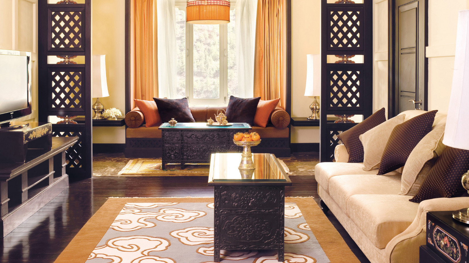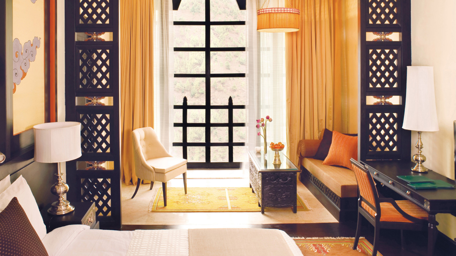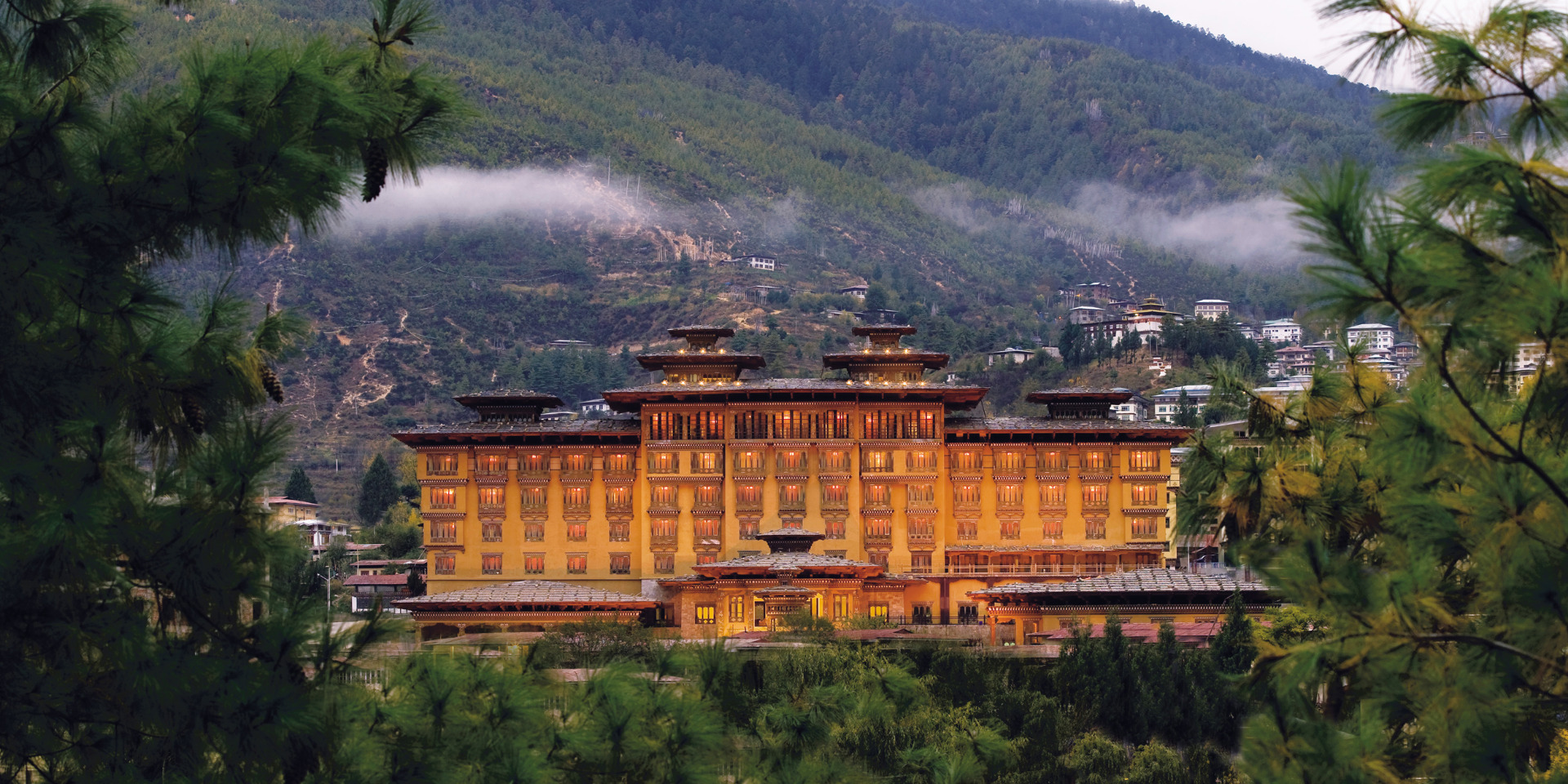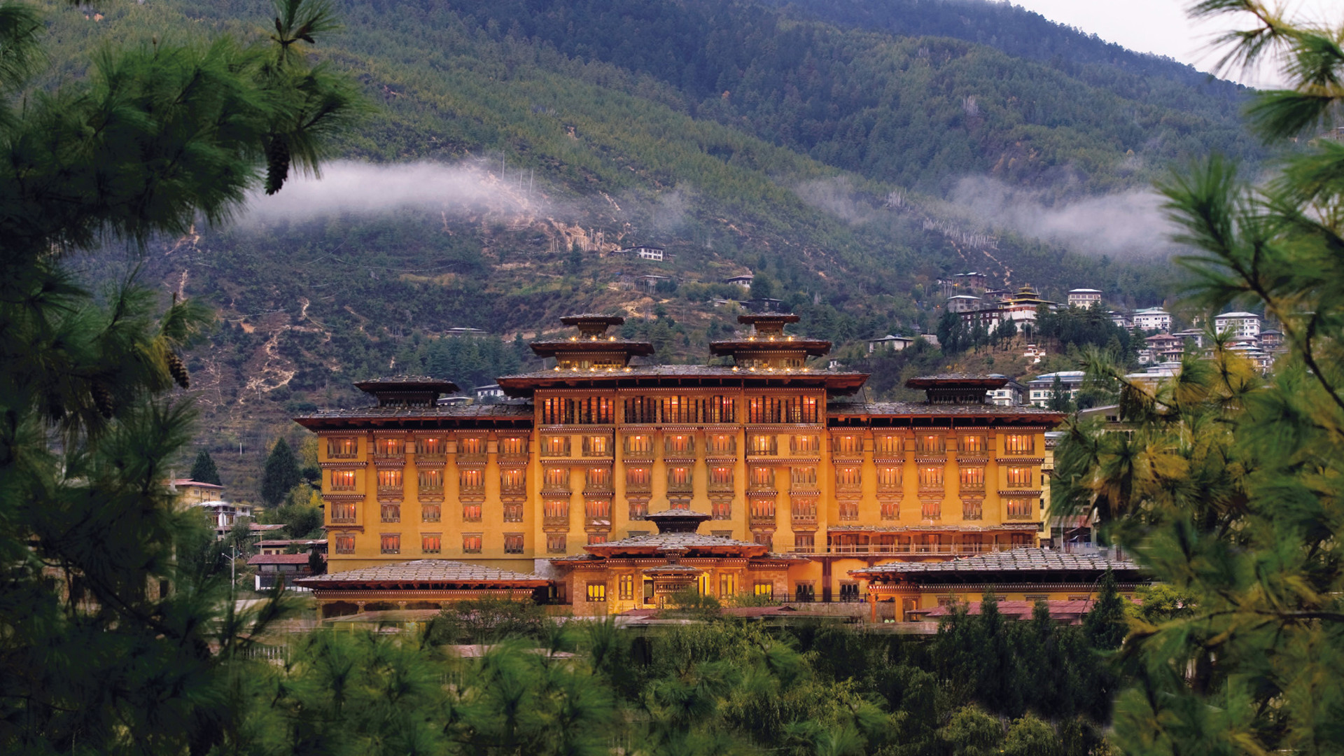 Mitt i Åskdrakens eget land och dalen Thimphu ligger magnifika Taj Tashi. Alla hotellets rum och sviter är inredda i en vacker blandning av Bhutans historiska Dzong-arkitektur och modern design. Handritade buddhistiska väggmålningar i traditionella färger pryder alla de smkafulla rummen och sviterna, som dessutom har en hänförande vacker utsikt över Himalayas dramatiska berg och höga himmel. Närheten till huvudstadens sevärdheter och butiker är perfekt för egna utflykter. I de fyra restaurangerna serveras Bhutans eldiga mat på bästa sätt, såväl som tibetanska specialiteter och europeiska rätter. På Jiva Spa erbjuds traditionella behandlingar i en rofylld miljö av trä och marmor där bad med varma stenar i specialgjorda kar är en härlig upplevelse.