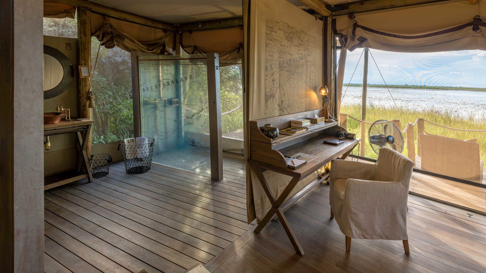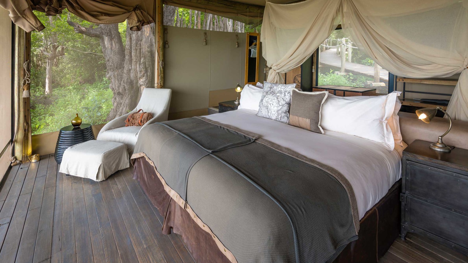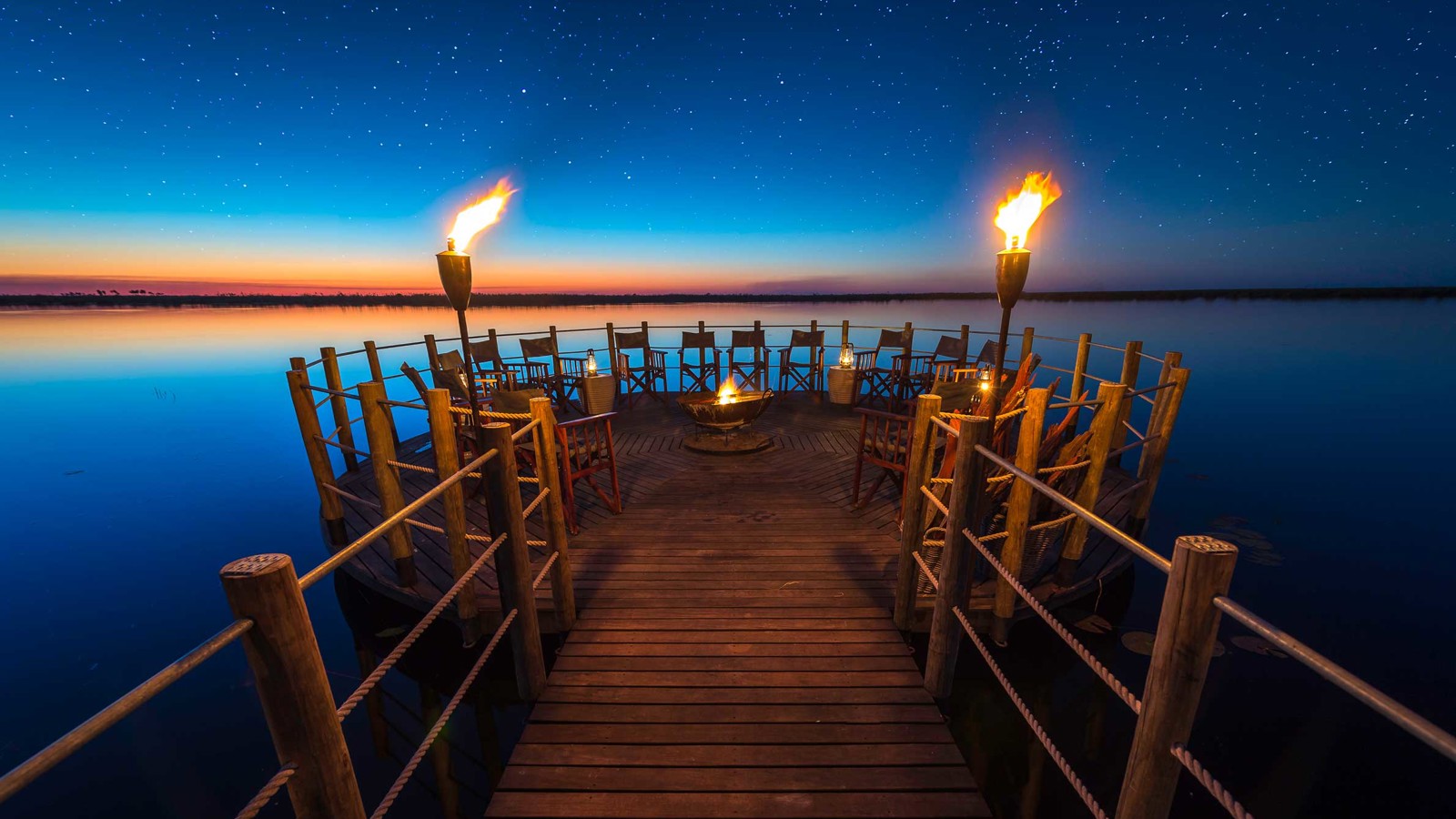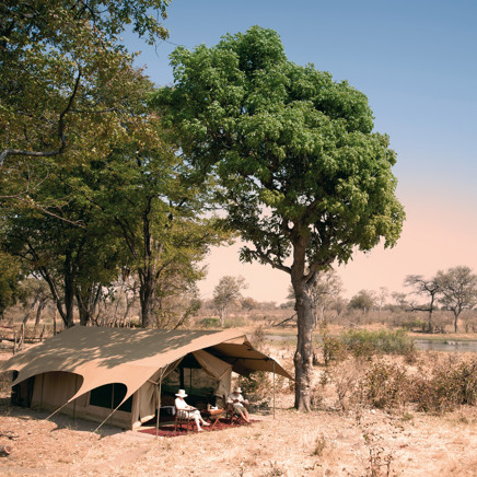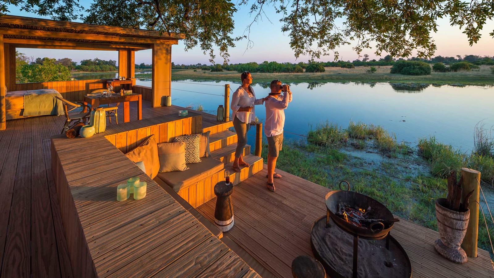 Duma Tau betyder passande nog ”rytande lejon” och ligger mellan två elefantkorridorer vid en lagun mellan floderna Savute och Linyanti i ett privat Wildlife Reserve som gränsar till nationalparken Chobe. Campen ligger på ett upphöjt däck för den fantastiska utsiktens skull där var och en av de tio tältsviterna har ett privat utsiktsdäck. Sviterna har heltäckande ”fönster” i tältduken så att du kan ligga i den underbara dubbelsängen och följa djurlivet vid flodkanalen. Inredningen är varm och rustikt mysig i subtila savannfärger. Loungedelen av campen har en stor och luftig matsal och en pool med soldäck och utsikt över lagunen. Nedanför matplatsen al fresco finns en lägerhelt på marken för nattliga berättelser och en sängfösare. Området är känt för sin stora koncentration av elefanter men även giraff, buffel och vårtsvin hör till de vanliga besökarna. Dessutom är rovdjur som lejon, gepard, fläckig hyena och leopard inte ovanliga. Runt Duma Tau finns plattformar vid utmärkta spaningsplatser där man kan jaga det perfekta fotot. Den bästa vinns vid Suvatekanalens källa där stora örnar och andra rovfåglar är vanliga.