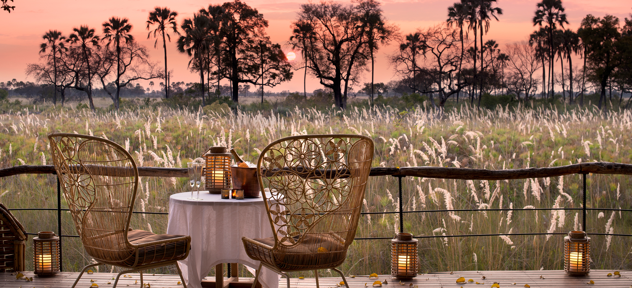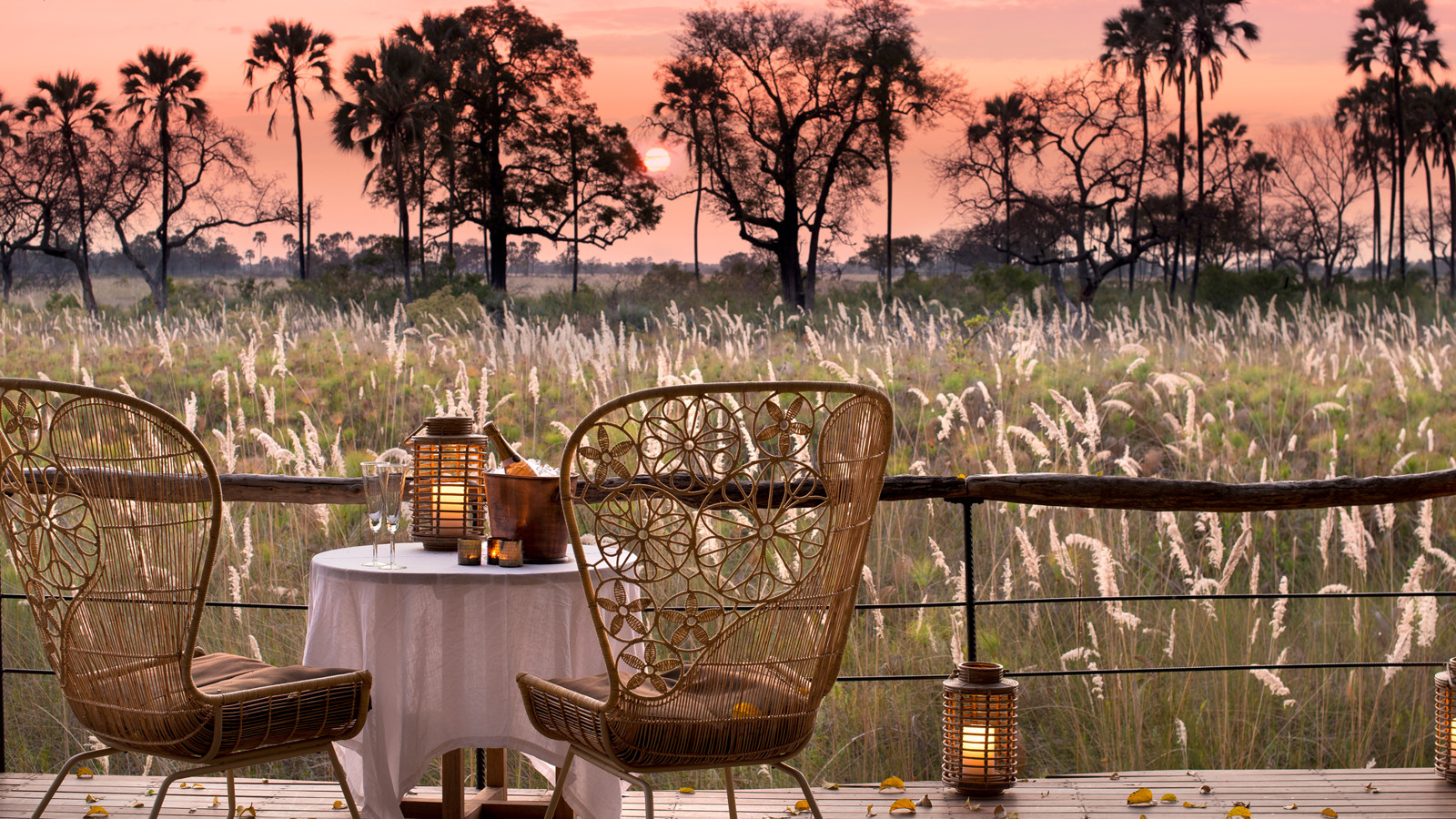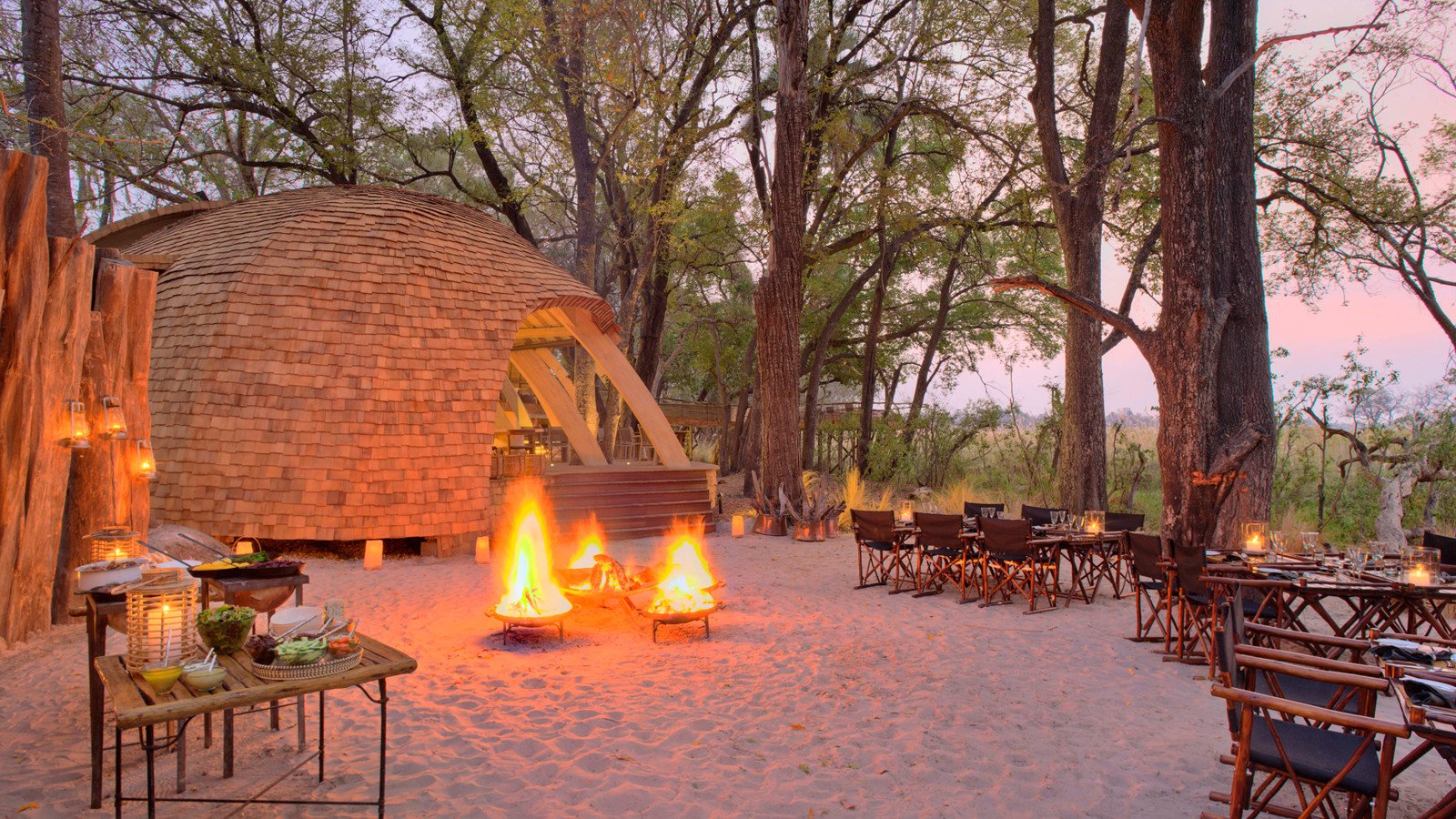 &Beyond Sandibe Okavango Safari Lodge kombinerar spektakulär design med vilda äventyr och är sedan återöppnandet 2014 en unik safariupplevelse. Lodgen ligger mitt i det storslagna Okavangodeltat under ett tak av vilda palmer och knotiga fikonträd och bjuder på gästfri service i en medveten miljö. Utsikten över flodslätten ramas in av palmakantade små öar, spiror av jättelika termitstackar och en eller annan antilop. Från bersån av träd leder trappor in i en stor öppen sal som strålar av afrikanskt ljus och utgör lodgens lounge där doften från kökets kryddor blandas med kaffeångor och flodslättens prassel av papyrus. De åtta eleganta sviterna kikar fram under sina kapell av skog och över kanten från den lilla höjd de ligger på. Alla har organisk design med handvävda exteriörer i naturliga linjer. Inredningen är stilfull med lädersoffa präglad i krokodil, sideboards snidade ur en trädstam och en säng i king size med utsikt över deltat. Dessutom finns en terrass med privat bubbelpool, dagbäddar och i vardagsrummet finns en vedeldad spis. Safariturerna utförs med kunniga guider som pekar ut den eleganta röda vattenbocken, den blyga sitatungan eller det stolta lejonet om det så skulle behövas. Här ses dessutom gepard, leopard, vildhund och flodhäst. Dessutom finns kontinentens största koncentration av elefant och buffel.