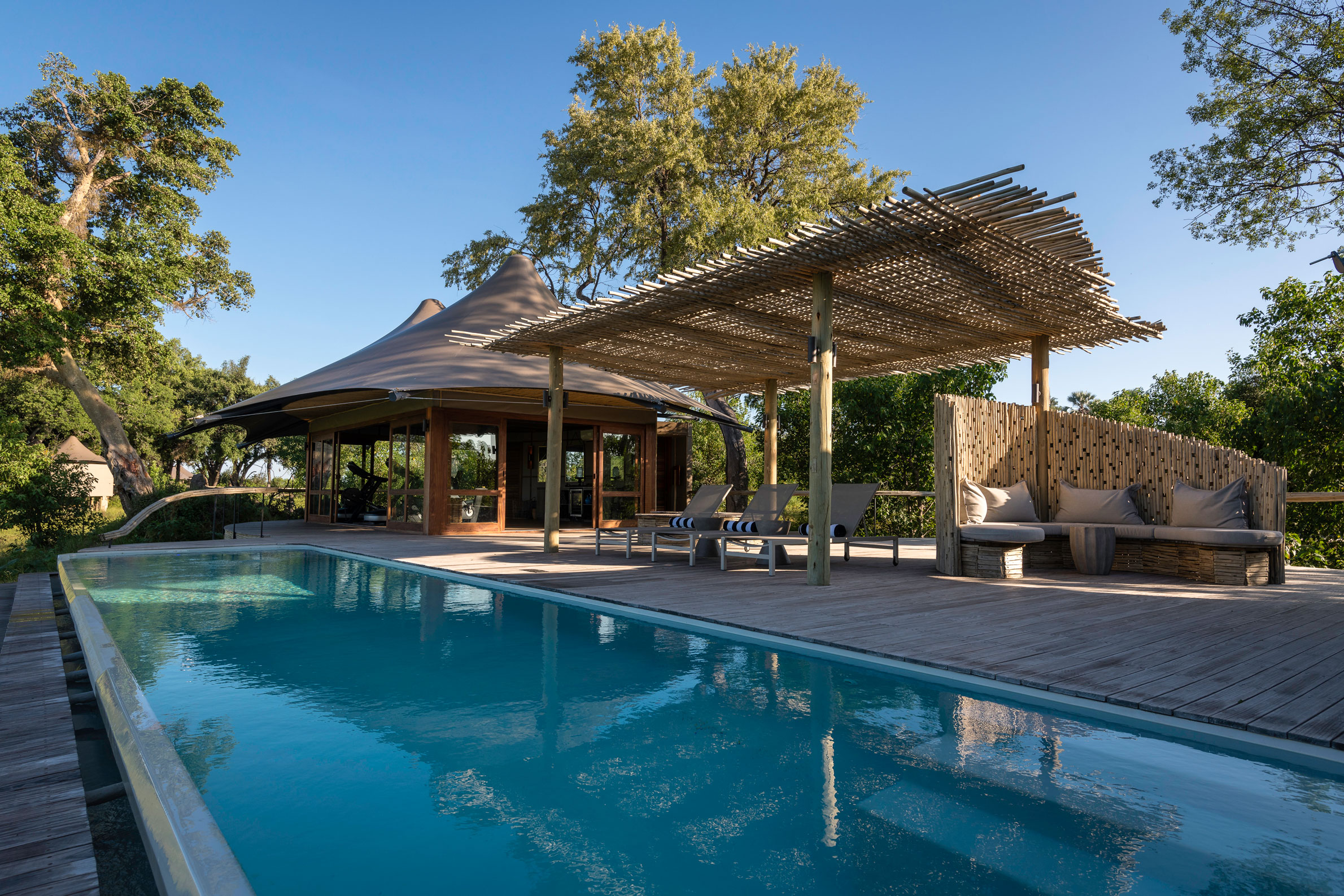 Mombo Camp, som är känt för det i särklass bästa djurlivet i Botswana, ligger på den nordligaste delen av Chief Island mitt i Okavangodeltat. Beståndet av djur är stort året om, och allt från elefant och buffel till små antiloper syns i stora hjordar. Även rovdjur som lejon (i synnerhet), leopard och gepard finns i rikliga mängder. Boendet består av 9 väldigt rymliga lyxtält som är resta upp mot 2 meter över marken och inte sällan vandrar exotiska djur genom lägret! Kring Mombos ”boma” serveras gourmetmåltider under stjärnorna ackompanjerat av nattdjurens ljudliga läten.