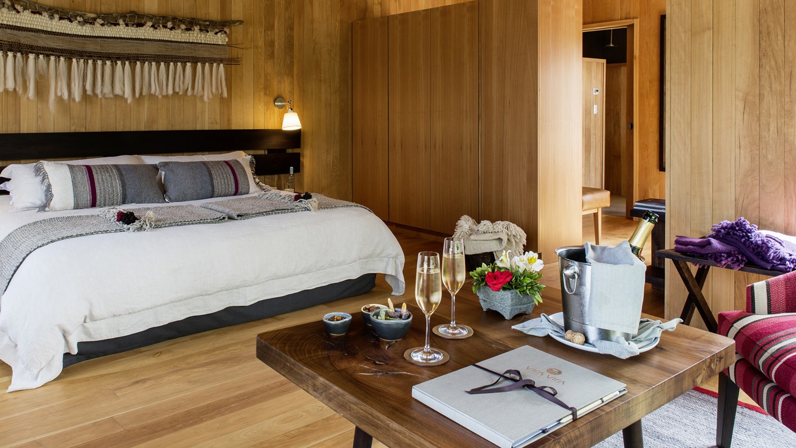 Mitt i en 22 hektar stor naturegendom ligger lodgen &Beyond Vira Vira, omgivet av vackert parkområde, naturliga laguner, flödande vattendrag och magnifik utsikt över vulkanen Villarrica. Lodgen erbjuder 6 sviter, 12 villor och en stor 5 sovrumsvilla, alla vackert inredda i varma färger och mönster som speglar Mapuche folkets traditioner. Här odlas det organiskt och den egna ostfabriken strax utanför Pucon tillhanda håller lodgen med delikata ostar. I området finns en mängd aktiviteter att välja på. Tillsammans med kunniga och engagerande guider kan man utforska nationalparken till fots, med häst eller med helikopter. På vintern kan man även åka skidor, snowboard eller snöskoter. Sommarperioden bjuder på exellent flygfiske, härliga turer med MTB eller prova på olika varianter av vattensporter. &Beyonds barnprogram WILDChild skräddarsyr äventyr och aktiviteter för de minsta familjemedlemmarna.