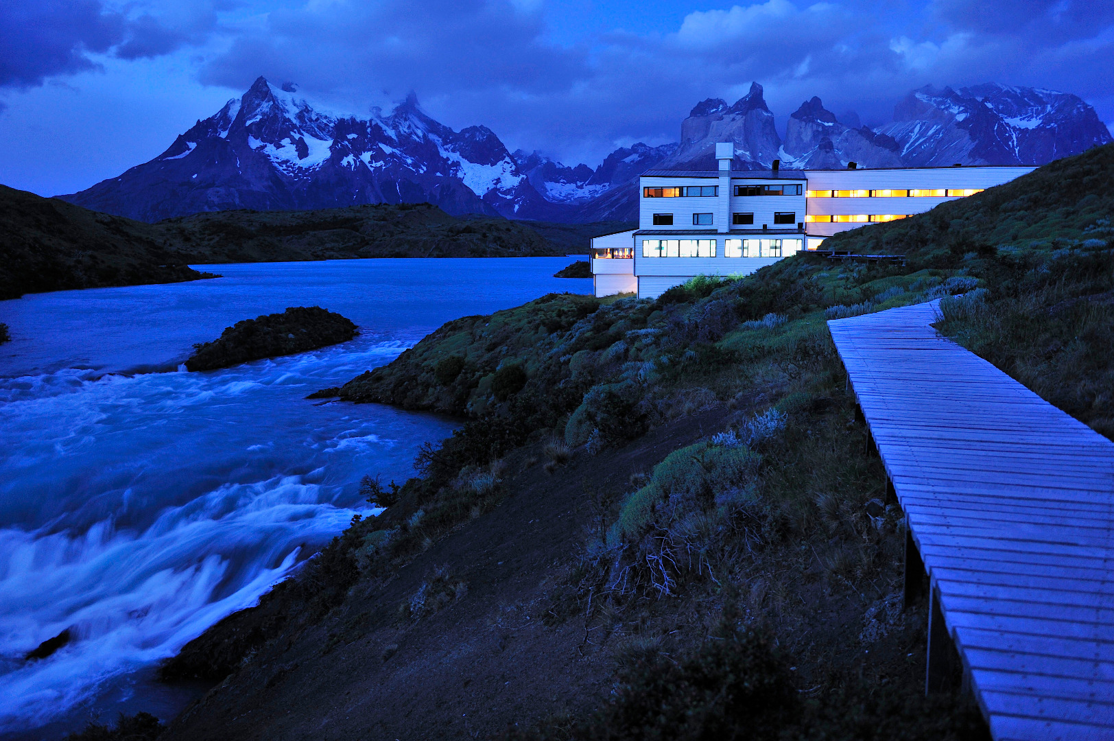 Få platser är så mytomspunna som den sydligaste delen av Sydamerika – Patagonien. Och få platser har så storslagen natur! Läget för Explora Patagonia är helt oslagbart, där det ligger obeskrivligt vackert vid ett vattenfall och utsikt över den resliga bergskedjan. Det är en lång resa att ta sig hit, men väl värt mödan. Hotellet är inrett i varma toner av trä och de mjuka vågliknande väggarna skänker rummen en speciell och spännande atmosfär. Här finns mysiga soffhörnor och öppna spisar att sitta och koppla av framför. Den högsklassiga restaurangen serverar en blandning av modern kokkonst och traditionell chilensk mat. Rummen håller hög klass, precis som inomhuspoolen och bastuanläggningen. Valet av aktiviteter är många. Här kan man prova att ta sig fram på både hästryggen, mountainbike-sadeln, med terrängbil eller till fots.