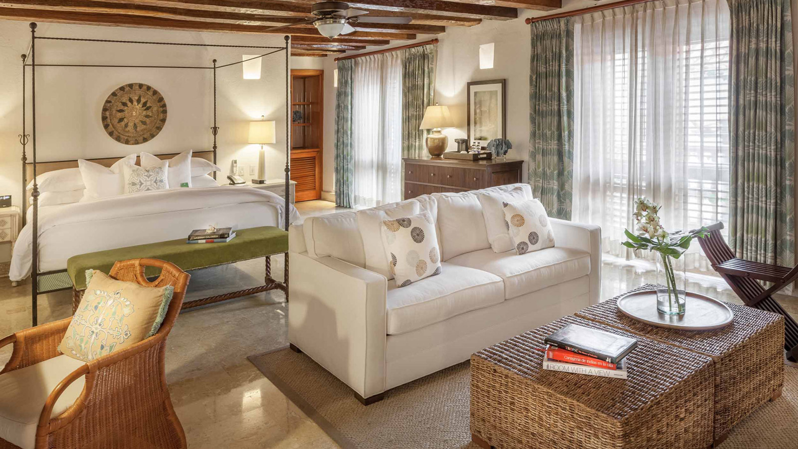 Balkonger med vinrankor och färgglada blommor pryder den elfenbensfärgade fasaden på det före detta nunneklostret Casa San Agustin – idag omgjort till ett exklusivt boutiquehotell. Läget, i hjärtat av Cartagenas äldsta stadsdel kunde inte vara bättre. Härifrån kan du utforska staden till fots och har både barer och restauranger inom bekvämt gångavstånd. Casa San Agustin är ett hotell med en stor personlighet och en djupt rotad historia som man framgångsrikt lyckats bevara och blanda med moderna bekvämligheter. Omsorgsfullt bevarade fresker täcker till exempel bibliotekets väggar och under den 300 år gamla akvedukten har man byggt en L-formad utomhuspool. De 30 rymliga rummen och sviterna är inredda i traditionell colombiansk stil med lugna jordiska färger och inslag av akvamarin. Rottingmöbler, antika skåp, imponerande himmelssängar, fönsterluckor och synliga takbjälkar skapar en hemtrevlig känsla. Alla rum flödar av ljus via stora panoramafönster eller balkonger. Premiumrummen kommer med privat uteplats och mosaikbelagda avsvalkningspooler medan största sviten stoltserar med en oslagbar utsikt över staden från sina två takterrasser. Om du kan slita dig från middagsrestaurangen Alma’s mysiga del inomhus med colombiansk originalkonst och livemusik, rekommenderar vi att du bokar ett bord på innergården. Här kan du njuta under bar himmel. Låt bartendern bjuda på en innovativ variant av sydamerikanska klassiker. Missa inte Humo Dulce, ett gudomligt gott hopkok av tequila, mango och sriracha som gifter sig väl med din bläckfiskcarpaccio eller sesamstekta tonfisk.