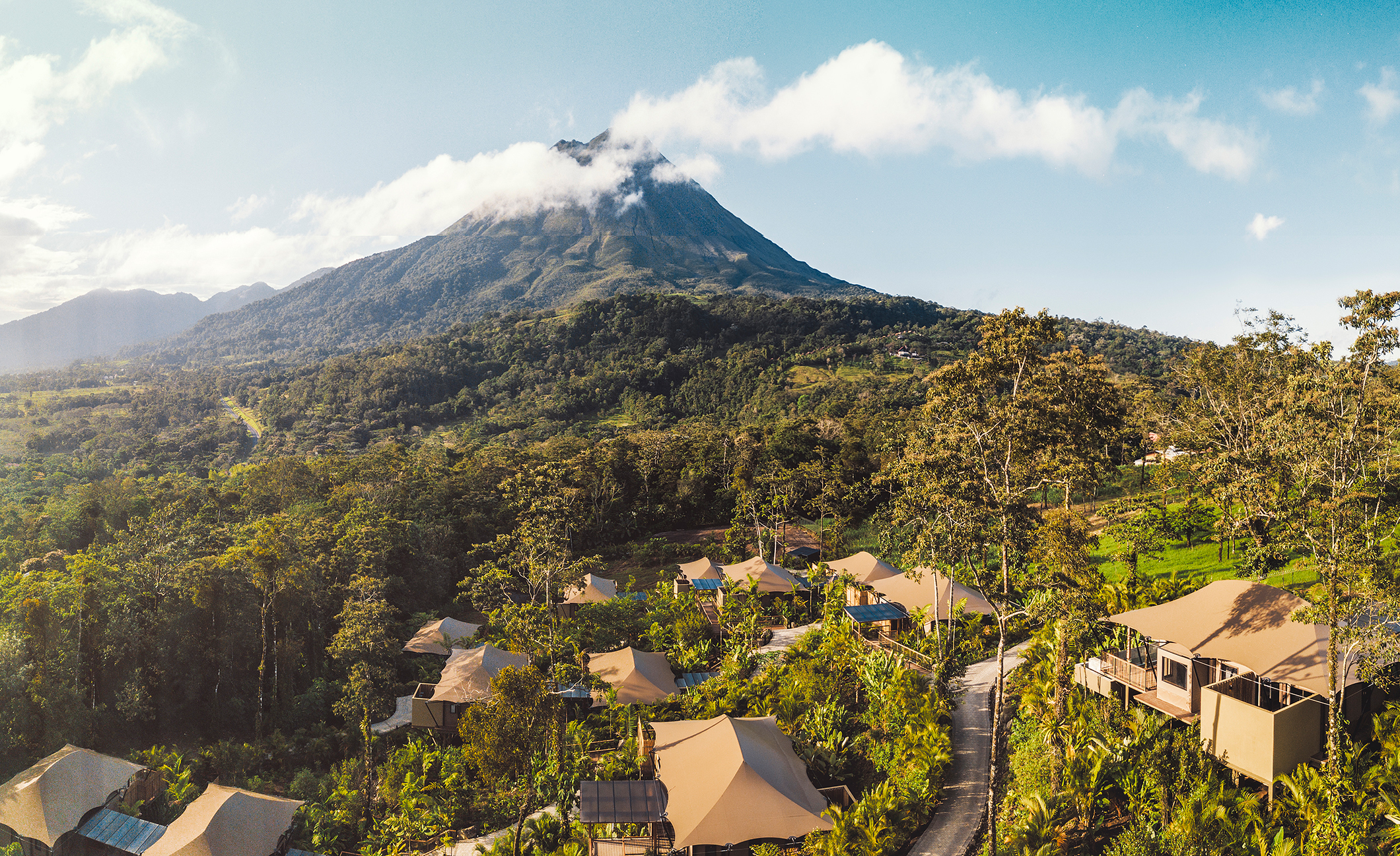 Prisbelönta Nayara Resorts öppnade 2020 lyxiga Nayara Tented Camp. Här erbjuds 25 lyxtält varav 14 av dem är kopplade samman för att skapa en rymlig två sovrumsenhet som rymmer två par eller en familj upp med två vuxna och upp till fyra barn! De fristående tälten ligger högt och erbjuder magnifik utsikt över vulkanen Arenal. Luftkonditionering, utomhusdusch och rymligt inomhusbadrum är standard i alla tälten. Liksom himmelsäng, sköna trägolv och egen pool med vatten från ortens varma källor. Campen smälter varsamt in i den omgivande regnskogen och gör minsta möjliga avtryck i naturen. Stor familjepool, en gourmetrestaurang samt terass för att sköna stunder ackompanjerat av sång från regnskogens färgglada fåglar är faciliteter som erbjuds campens 50 gäster. Arenal är känt för sitt stora utbud av aktiviteter - allt från adrenalinfylld zipline, hästridning och naturvandringar till varma bad i ortens naturliga källor.