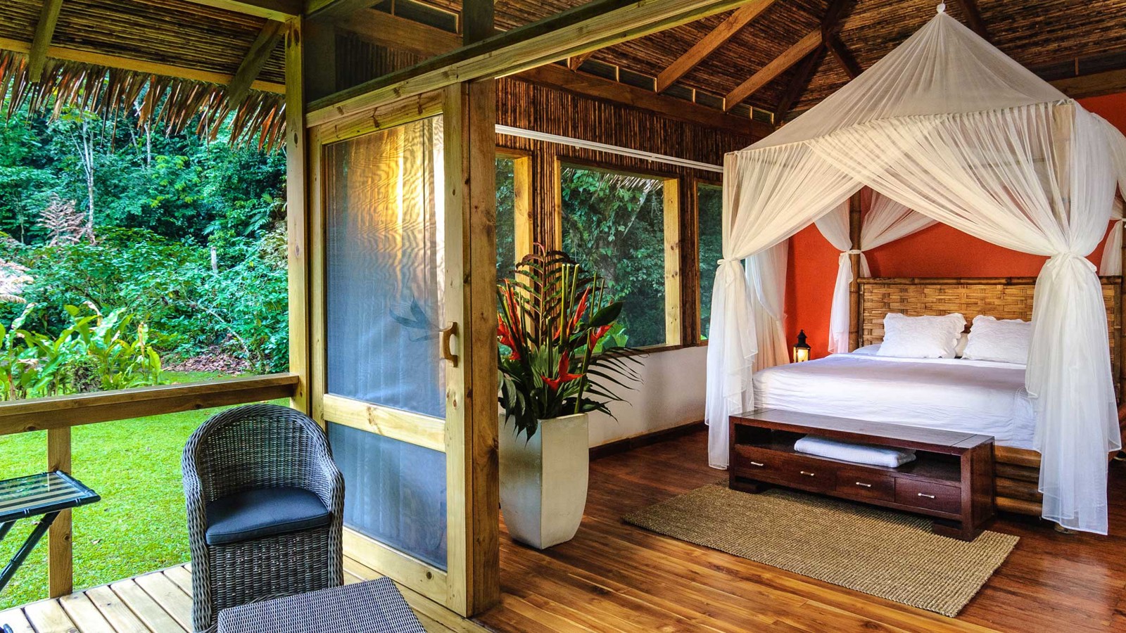 Pacuarefloden har fräst, spottat, skvätt och skummat i över en timme. Pacuare Lodge liknar inget annat hotell och är ett ”måste” i Costa Rica. Den bästa vägen till djungellodgen går via vild forsränning i gummibåt och plötsligt får termen ”hotelltransfer” en ny och hisnande innebörd. Högt bland träden står exklusiva sviter som erbjuder ett bekymmerslöst liv på trädäck i miljövänlig superlyx ackompanjerad av en tusenårig regnskog. Vissa sviter har privata pooler uppe bland trätopparna som matas av källvatten som mot grönskan tar en ton av smaragd. En timma om dagen sätts elektriciteten igång och då blir loungen Pacuares naturliga samlingsplats. Därefter serveras en trerätters middag i stearinljusens dunkla sken, haute cuisine presenterad på äkta porslin och kryddad med egenodlade örter. Den som vågar tar en zipline och äter middag i The Nest – 20 meter upp bland trädtopparna. Pacuare Lodge är en unik upplevelse!