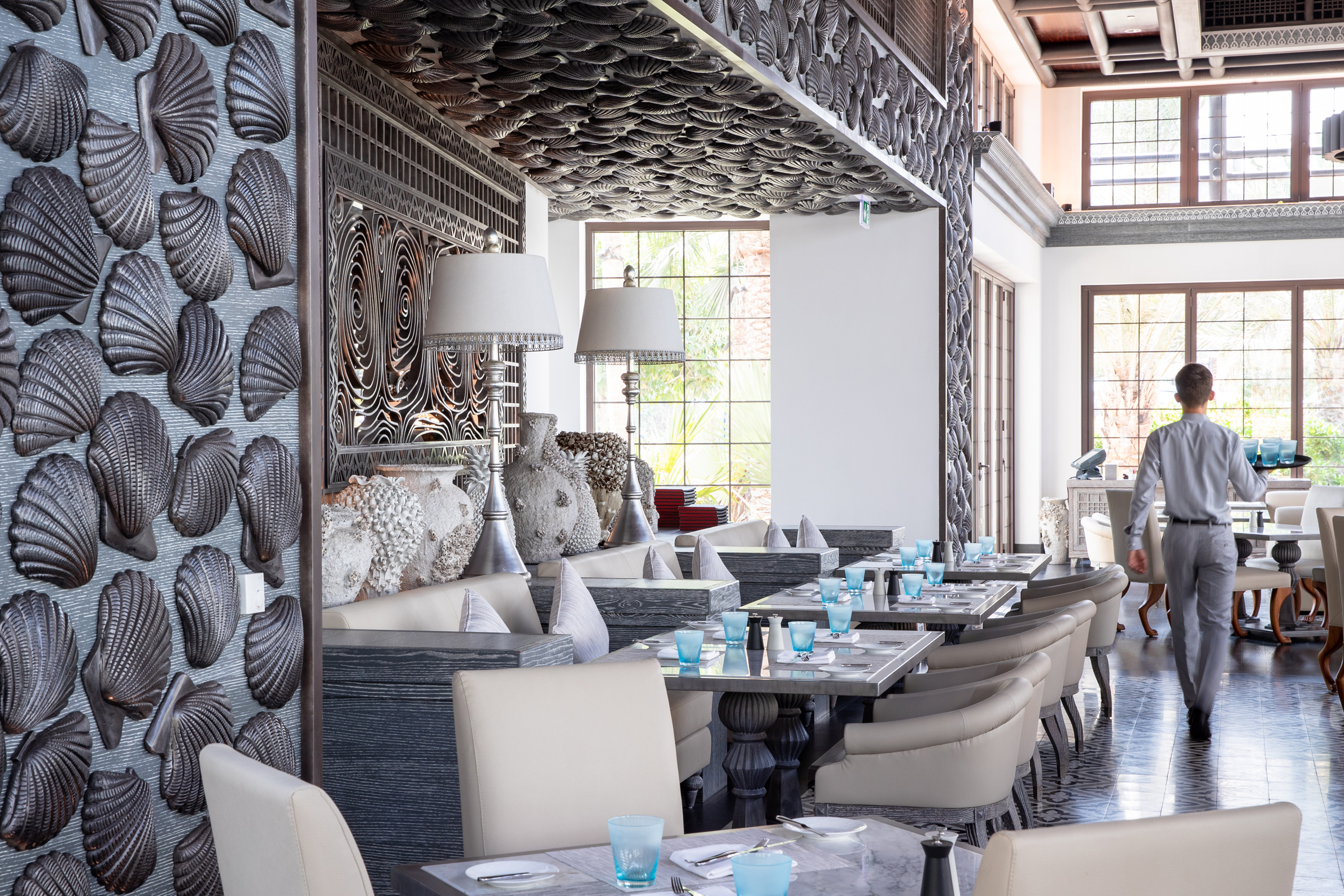 Bara några få sandiga fotsteg från en av Dubais bästa stränder hittar du giganten Jumeirah Al Naseem – en lyxresort för den mest kräsna resenären. Al Naseem betyder havsbris på arabiska och det är just känslan av en frisk bris som genomsyrar hotellets stil i alla kanter och vrår. Här samsas naturliga material som sten och trä med nyanser av blått, sand och turkost. Utanför hotellets entré möts man av en magnifik skulptur föreställandes en karavan av kameler som springer på vatten och på väggarna hänger modern konst som flörtar med det fartfyllda och samtida Dubai. Hotellet ligger i området Madinat Jumeirah – en stor semesteroas uppbyggd att efterlikna en traditionell arabisk stad – med tre hotell, restaurange och vattenland: Wild Wadi Waterpark. Självklart har du som gäst obegränsat fritt inträde. Rummen är många – 430 stycken – och de flesta bjuder på häpnadsväckande utsikt över Burj Al Arab Jumeirah. Hotellets mest påkostade rum, den kungliga sviten, är imponerande 500 kvadratmeter stor med två rymliga sovrum, ett vackert vardagsrum, en biograf, gym och trädgård. Under de hetaste sommarmånaderna fungerar terrassen som en inglasad förlängning av med luftkonditionering. Längs med den privata stranden finner du Talise Spa, där du kan njuta av lyxiga ansikts- och kroppsbehandlingar och på hotellets Summersalt Beach Club finns dj:s och party om helgerna. Häng vid en av hotellområdets tre pooler eller varför inte prova på vattenskidor eller jet-ski vid stranden?