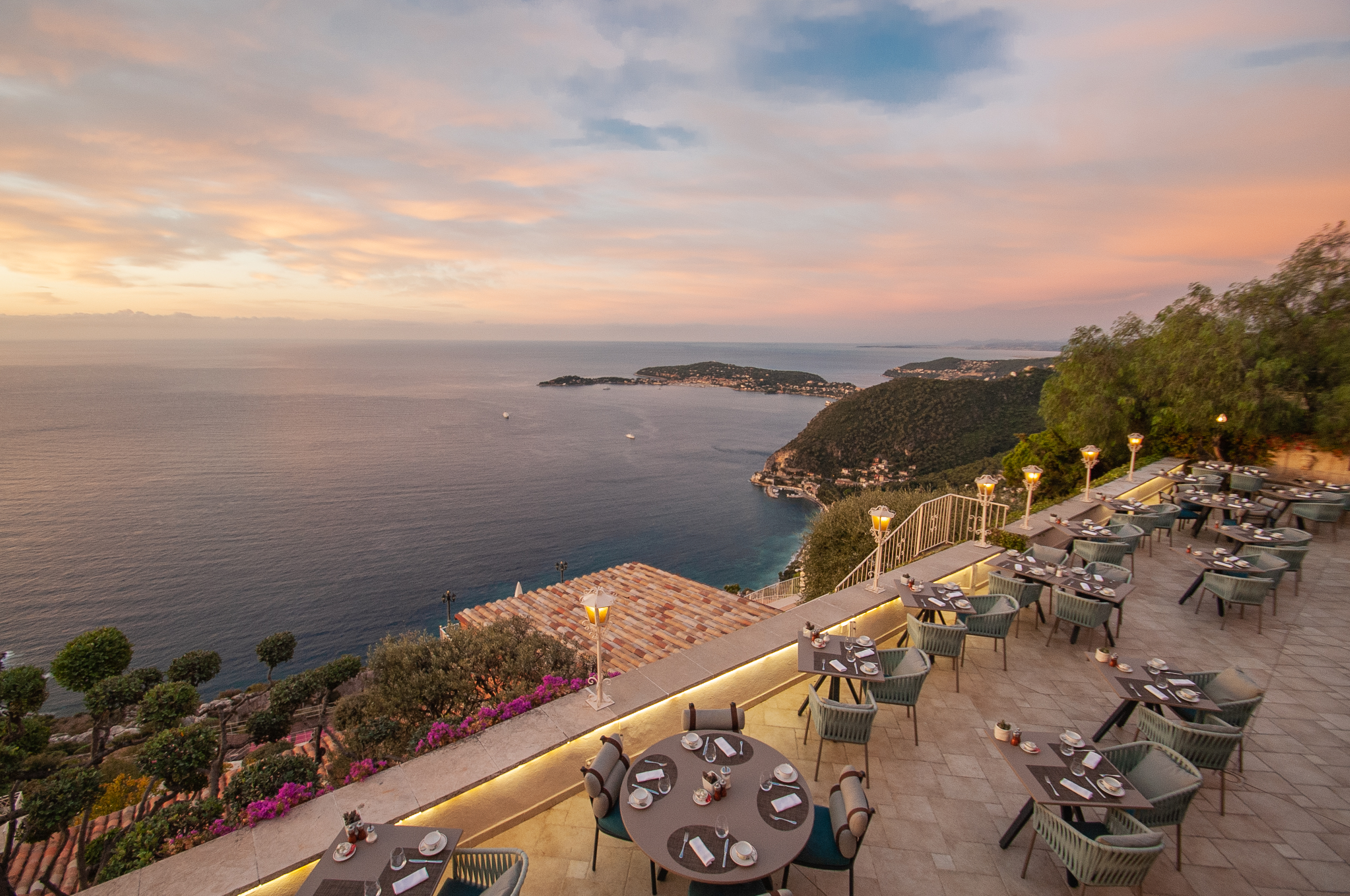 Chateau de la Chèvre d’Or är beläget på en klippa 430 meter över havet med en oförglömlig panoramautsikt av det glittrande Medelhavet. För att nå till detta slottshotell till fots tar du samma branta serpentinstig från havet som filosofen Nietzsche gjorde under sina meditativa vandringar upp till byn Èze. Alternativt anländer du i Monacostil och lämnar din Ferrari i händerna på hotellpersonalen. Hit kommer du för romantiken, lugnet, maten och de jasmin- och rosendoftande trädgårdarna som är fyllda av fontäner, vattenfall och vackra skulpturer. Njut av ett glas rosé på en av slottsterrasserna och se ut över franska Rivieran. Kanske har du tur och får se hoppande delfiner långt därnere. Hotellet erbjuder 43 rum och juniorsviter och en exceptionellt vacker svit med egen utomhuspool och jacuzzi med utsikt över havet. Inredningen sträcker sig från avskalad provensalsk till en mer modern stil, med eldstäder i sten, parkettgolv, antika dörrar, tidstypiska skåp och designerfåtöljer. Chateau de la Chèvre d’Or saknar spa, men har flera pooler och erbjuder både massage, skönhetsbehandlingar och yogaklasser. När magen kurrar finns tre fantastiska hotellrestauranger att välja mellan, inte minst La Chévre d’Or med två Michelinstjärnor. Efter middagen kan du ströva längs byns smala och snirkliga kullerstensgator med sina autentiskt restaurerade stenhus, kika in i konstgallerier och beundra den azurblå utsikten.