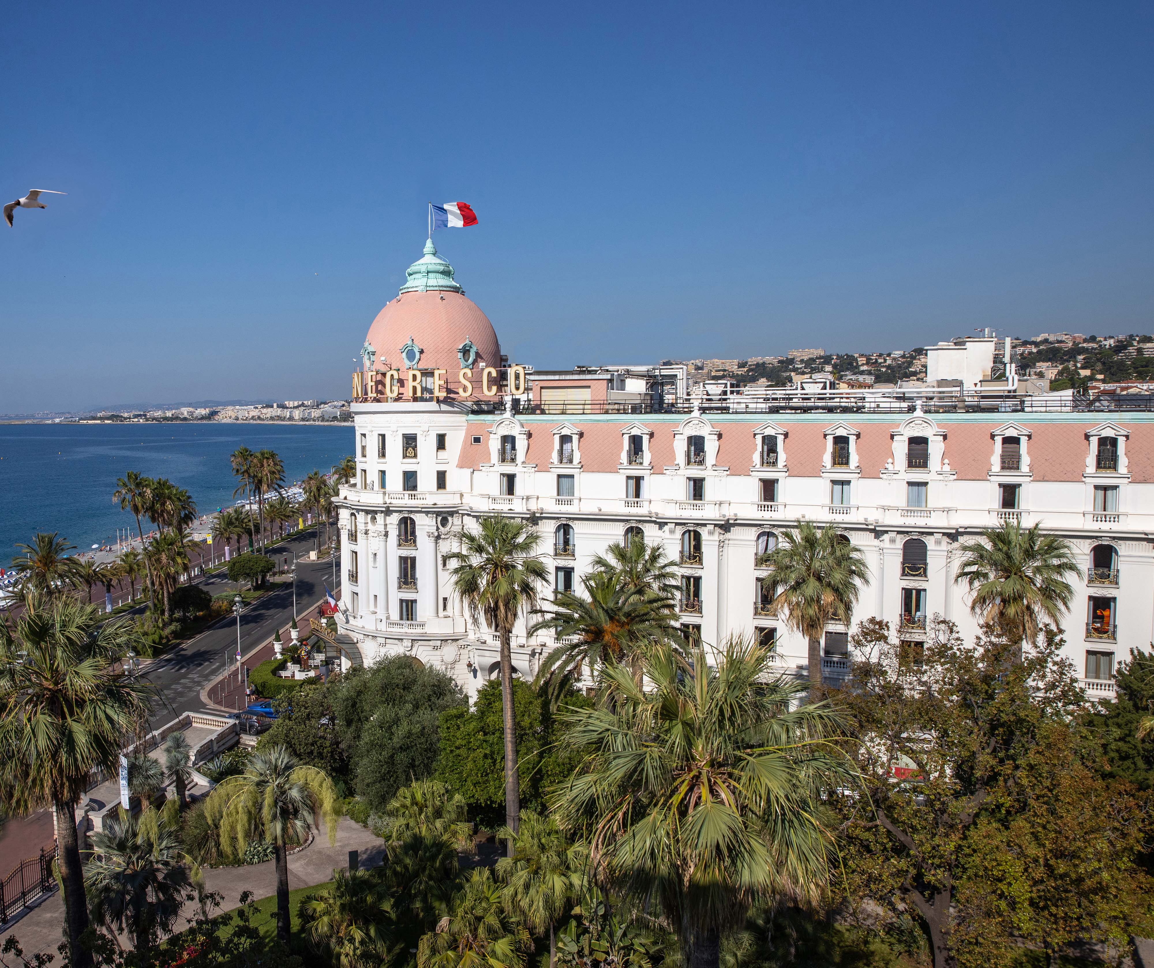 Alla som besöker Franska Rivieran bör checka in på ikoniska Hotel Le Negresco åtminstone en gång. Utifrån ser Hotel Le Negresco ut som en viktoriansk tårta – en böljande gräddvit skapelse toppad av en praktfull rosa kupol. Passera de stiliga dörrvakterna med sina vita handskar och 1700-talsuniformer och du förflyttas genast till en häpnadsväckande värld fylld av kontrasterande starka färger, antika muséiföremål och modern konst i glad samvaro. Fem århundraden av fransk historia finns representerade i de 128 rummen och sviterna som alla är inredda olika. De stora sviterna känns som sina egna minilägenheter med havsutsikt och exceptionella antikviteter. Le Negrescos läge är suveränt, mitt på Promenade des Anglais och när du vill njuta av strandliv, går du bara tvärs över gatan till hotellets egen strand. N Le Spa, på över 7500 kvadratmeter, invigdes i januari 2024. Här väntar finsk bastu, hamam, uppvärmd pool, en spameny med behandlingar för både kropp och själ samt en relaxavdelning med bakverk signerade Virginie Basselot. I hotellets klassiska bar, helt i valnöt och med 1600-talsgobelänger kan du smutta på cocktails till livejazz varje kväll. När hungern gör sig påmind står stjärnkrogen Chantecler och brasseriet La Rotonde till ditt förfogande.