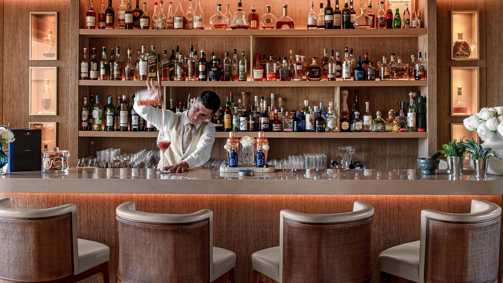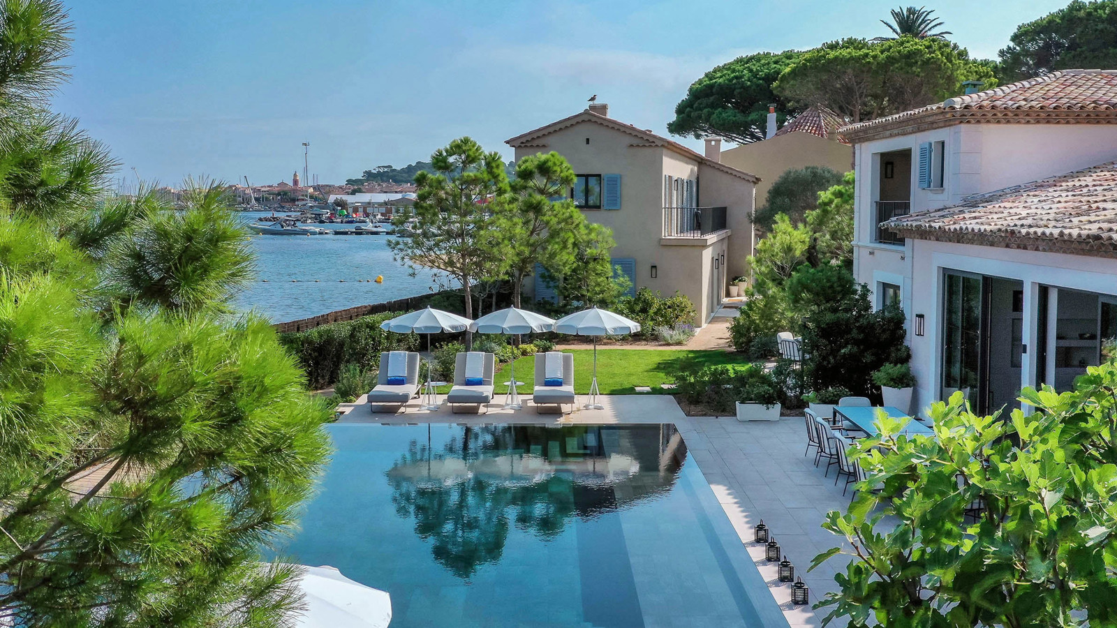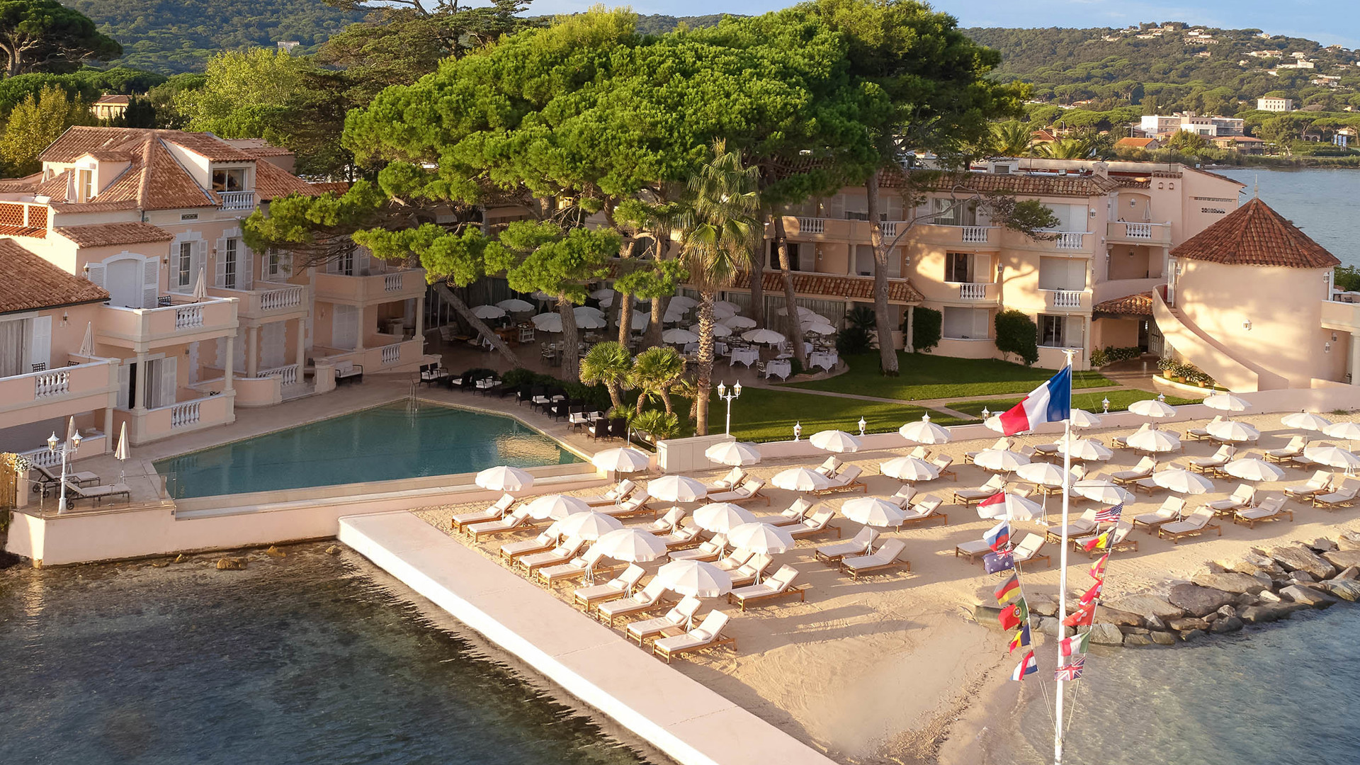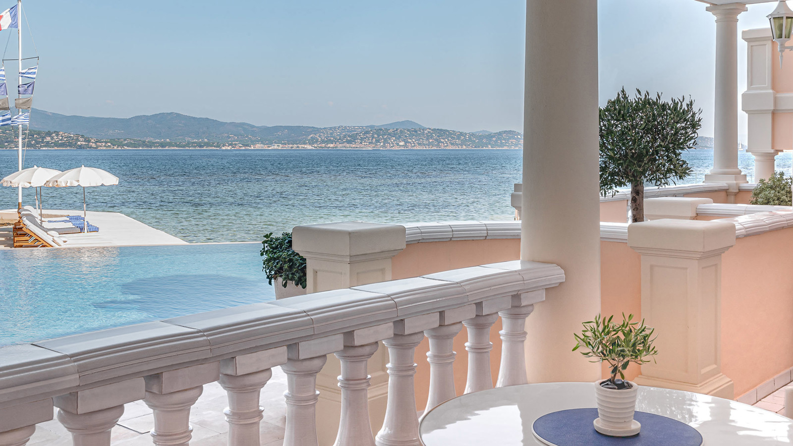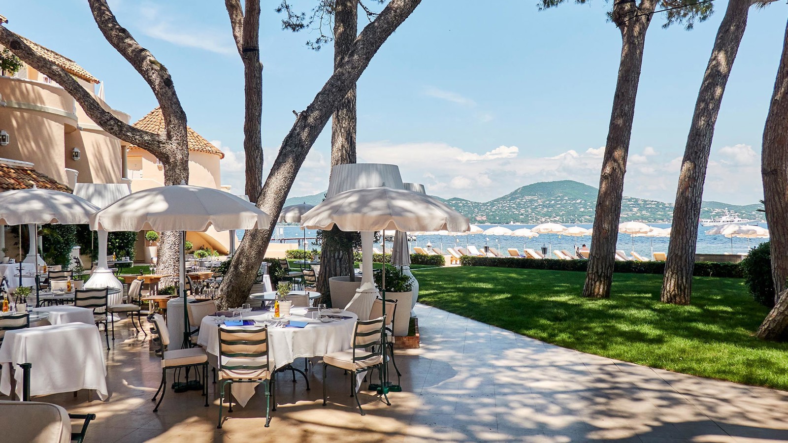 Det finns många skäl till att St. Tropez är ett legendariskt resmål. Detta eleganta hotell som öppnade 1936 och förvandlades till Cheval Blanc St. Tropez 2019, är ett av dem. Den nya interiören av Jean-Michel Wilmotte lyckas vara rogivande och häpnadsväckande på samma gång, med inslag av provensalsk konst överallt. Rummen och sviterna, inredda i marinblått och krämvitt, har obeskrivligt bekväma sängar och vackra jugendstolar, noggrant utvalda från Paris loppmarknader. I princip alla rum har terrasser med utsikt över poolen och havet. Djupa badkar är perfekt placerade för att njuta av solnedgången eller några avsnitt på Netflix via en skärm infälld i väggen. Ett team av dedikerad personal, givetvis klädda i samma färger som rummen, vet precis vad du behöver innan du själv vet det. Kanske lite varm mjölk till kaffet eller ett bad med levande ljus? På den privata stranden masserar spaterapeuter solkräm från Guerlain i gästernas ansikten och i trestjärniga Michelinrestaurangen La Vague d’Or levereras ett fyrverkeri av kulinariska smaker. Lunchen intas med fördel på terrassen framför Cheval Blanc St. Tropez persikofärgade fasad med utsikt mot det glittrande Medelhavet.