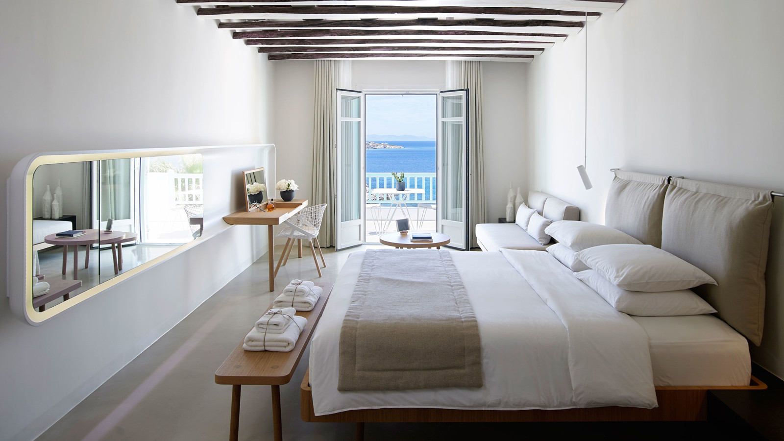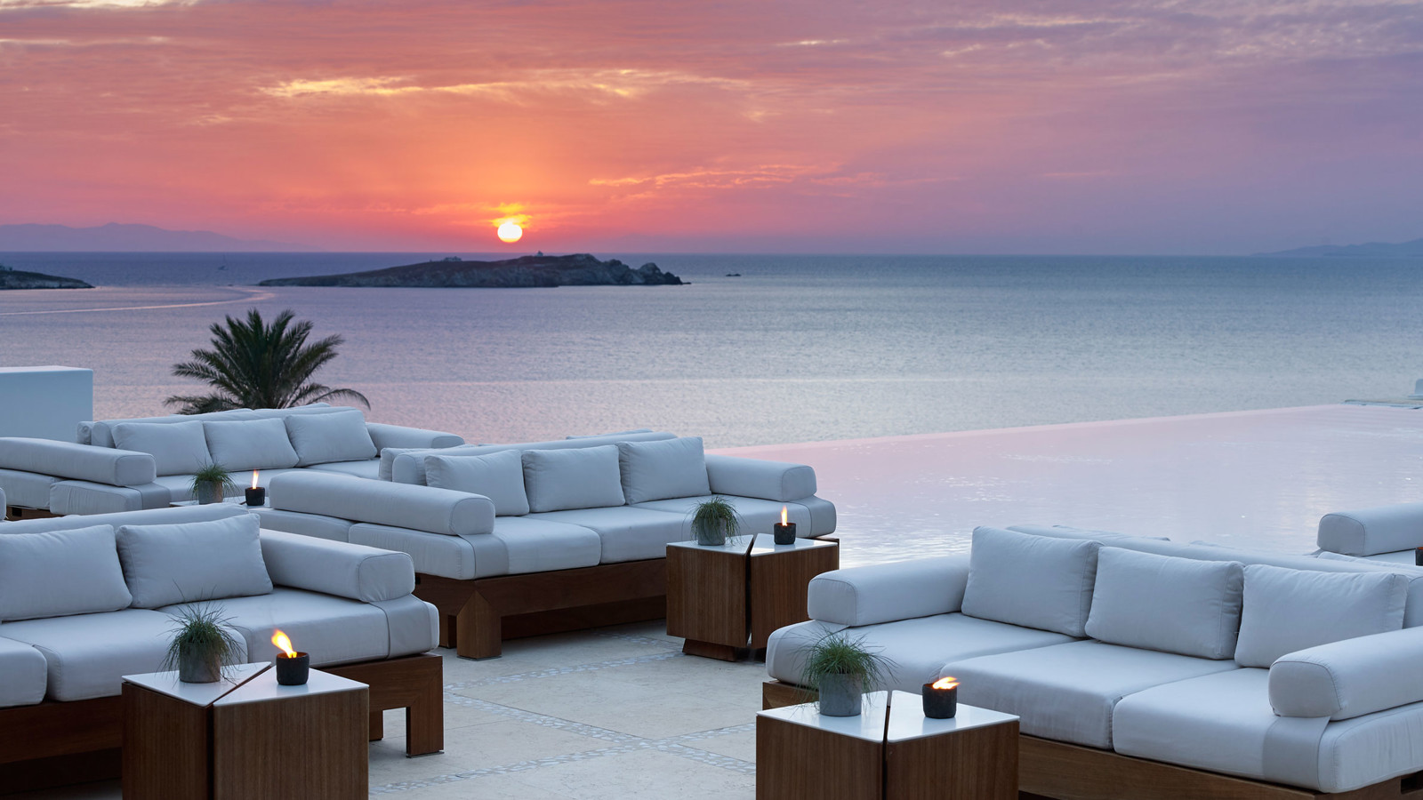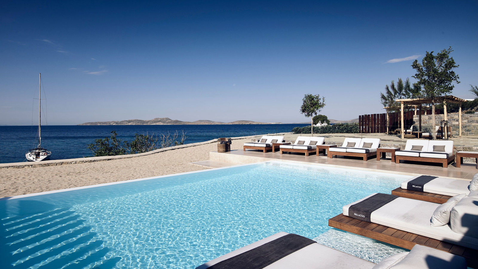 På grekiska ön Mykonos i ögruppen Cykladerna ligger Bill & Coo Suites & Lounge – ett femstjärnigt designhotell med minimalistisk arkitektur, vitkalkade väggar och 32 utsökta sviter. Samtliga med magnifik utsikt över Egeiska havet. Flera har privata pooler eller åtminstone en egen balkong med en loungesäng så skön att du riskerar att somna varje gång du lägger dig till rätta. Infinitypoolen, loungen och restaurangen är byggda så att du, oavsett åt vilket håll du tittar, alltid har det glittrande havet i synfältet. Gourmetrestaurangen är en av Mykonos bästa och har till och med utnämnts till Greklands bästa hotellrestaurang flera gånger om. Det märker du bland annat på chefskocken, Athinagoras Kostakos medelhavsinspirerade meny, där varje maträtt är minutiöst komponerad för att få fram de karaktäristiska smakerna från oliver, kapris, citrusfrukter, färska skaldjur och lokala grönsaker. Hotellet ligger på promenadavstånd från den gamla delen av Mykonos stad. Så innan du avnjuter en läskande mojito och ser solen doppa sig god natt i havet, har du kanske strövat bland tysta gränder och sockerbitshus, snorklat eller provat vindsurfing. Valet är ditt!