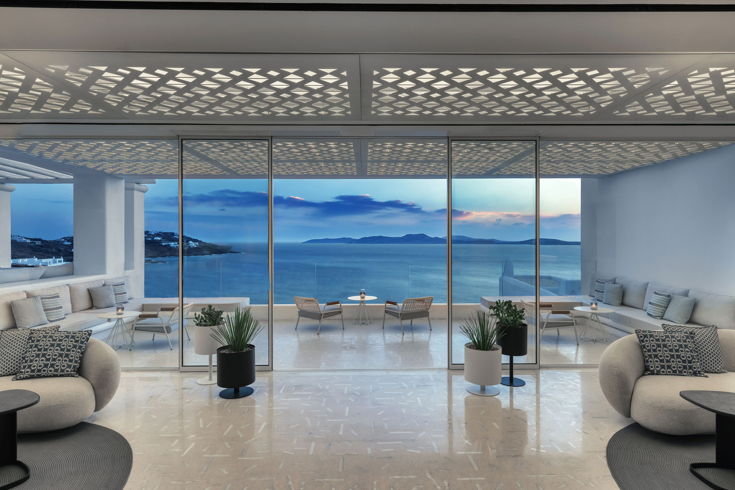 Den grekiska ön Mykonos är framför allt känd för att erbjuda party 24/7, men inte för dig som är gäst hos prisbelönta Mykonos Grand Hotel & Resort. Här utlovas i stället möjlighet att koppla ned och av. Skäm bort dig själv med ljuvliga behandlingar i Althea Spa Retreat. Följ med på båtturer till hemliga grottor och öns bästa stränder. Varför inte beställa en grapefruktspritz och slå dig ned vid poolkanten i solnedgången! De vitkalkade sockerbitshusen och kullerstensstigarna är typisk kykladisk arkitektur, byggda i nivåer ovanför den avskilda Agios Ioannisstranden med utsikt över Delos- och Rinia-öarna. Inredningen är elegant, vilsam och ljus. Boendekategorierna är indelade efter utsikt, storlek och bekvämligheter. Alla kommer med beigevit palett, gåsfjädertäcken, grekiskt kvalitetslinne, dockningsstationer för iPod, stjärnkikare och rymliga balkonger. Sviterna har egna bubbelpooler och ångduschar. Två av sviterna kan kopplas samman och delar en privat infinitypool, matsal och grillplats för privat barbecue med en personlig kock. Restaurangen serverar klassisk grekisk mat med en modern twist och vill ni äta middag med fötterna i sanden, ordnar hotellets personal mer än gärna en romantisk middag för två på stranden. Många gäster kommer till Mykonos Grand Hotel & Resort för en mysig strandsemester och lämnar inte hotellet förrän det är dags att åka hem. Grekerna hävdar för övrigt att platsen hotellet ligger på är en av världens soligaste och att den sjuder av speciell kosmisk energi. När du tröttnar på strandlivet väntar i stället lyxiga solsängar vid den stora havsvattenpoolen, fri glass och läskande drinkar. Skulle du mot förmodan vilja ta dig in till charmiga och pittoreska Mykonos stad och ansluta till partydjuren, kan du ta hotellets egen shuttle bus som går varannan timme. Var uppmärksam på att det är lätt att tappa orientering på dess labyrintlika gator.