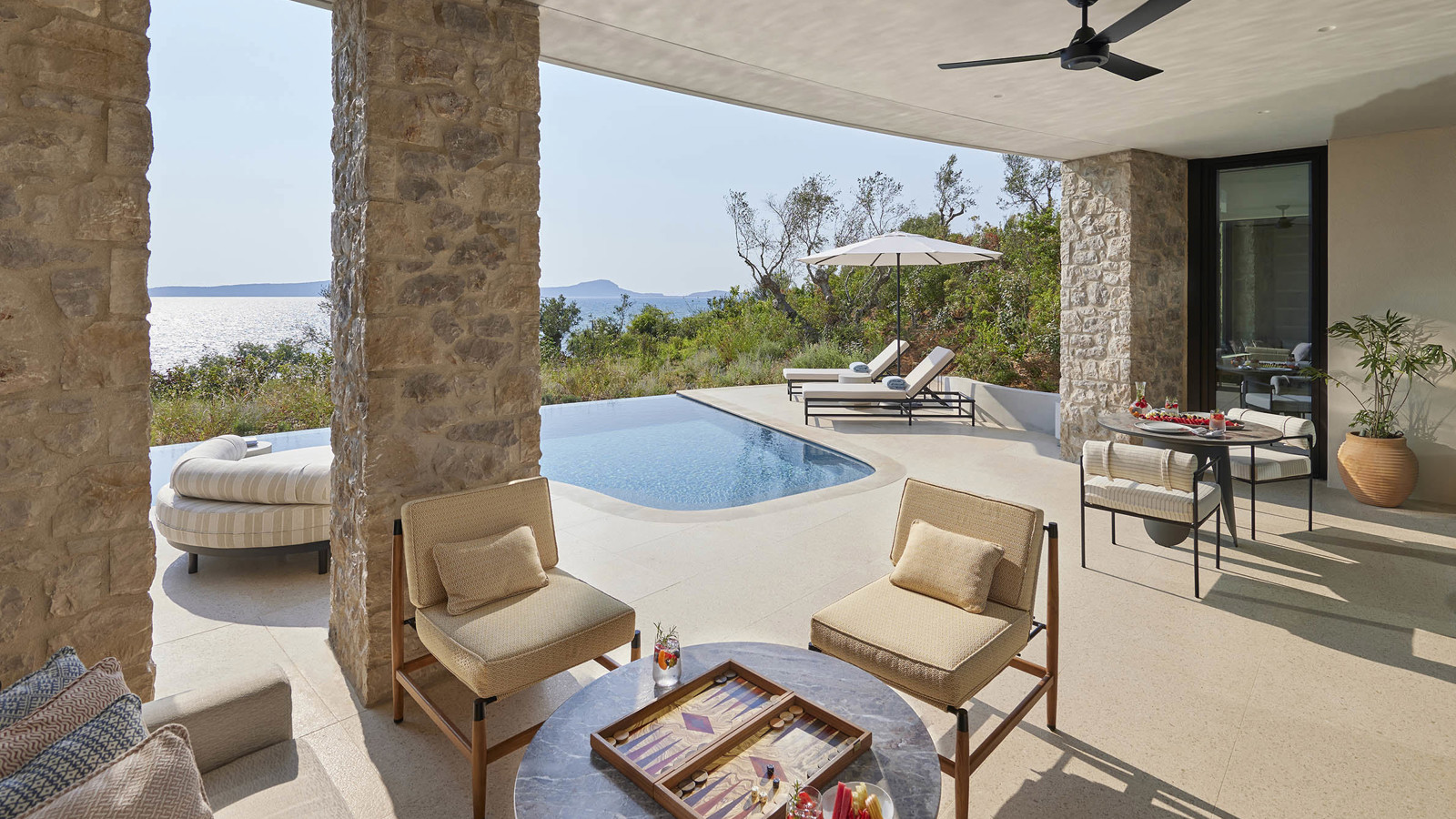 Mandarin Oriental Costa Navarino är ett boende som måste upplevas på plats. Vyerna från bukten och solnedgångarna är visserligen spektakulära, men det som verkligen sticker ut är de stora poolvillorna. Vackert inbyggda i landskapet och givetvis ultraluxösa med jacuzzi, stort loungeområde utomhus och fönster från golv till tak som bjuder på oavbruten utsikt. Både rum och villor är utsökt inredda med lokalt gjorda mattor, sängramar i trä, inramade antika fläktar och genomtänkta detaljer som en mjukstängande minibar och böcker om grekisk mytologi. För varje gäst finns en specialdesignad el cykel – perfekt när du vill upptäcka det böljande landskapet. Du som är ute efter en aktiv semester kan segla, dyka, surfa eller åka på fisketurer. Mandarin Oriental Costa Navarino erbjuder också aktiviteter som vinprovningar, matlagningskurser, astronomikvällar och yoga på stranden. Golf är förstås stort. En av banorna ligger precis intill hotellet och ytterligare tre finns att välja mellan inom Costa Navarino-regionen. Servicen på hotellet är klanderfri. Ditt bagage anländer till rummen i princip i samma sekund som du öppnar altandörrarna. Städpersonalen lämnar godsaker dagligen, från fat med ost och fikon till choklad och kunskapen om mat och dryck i de fem restaurangerna är exceptionellt bra. I barn- och tonårsklubbarna får de yngre gästerna uppleva allt från arkeologiska utgrävningar till drejning och historieberättande runt lägerelden.