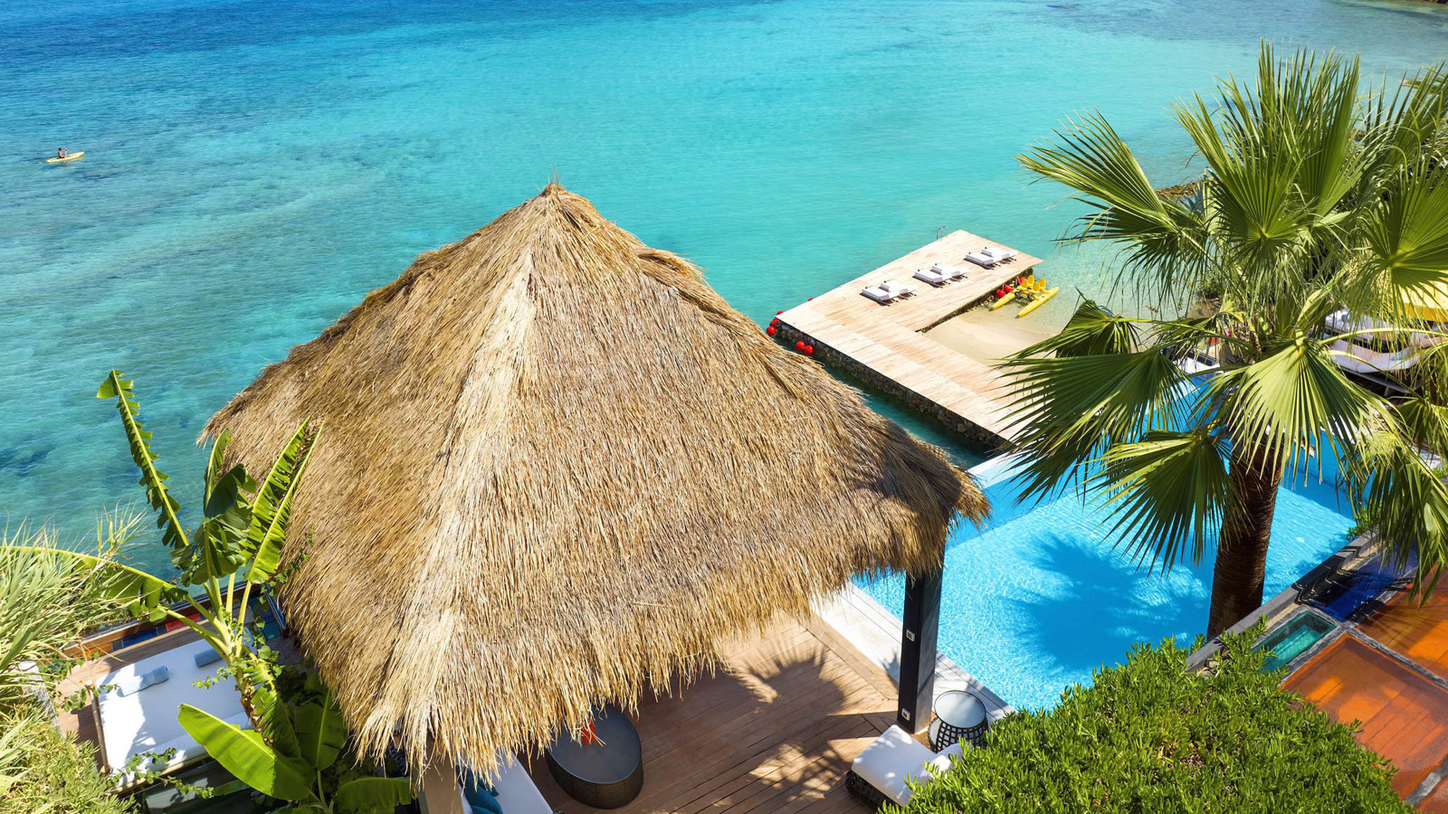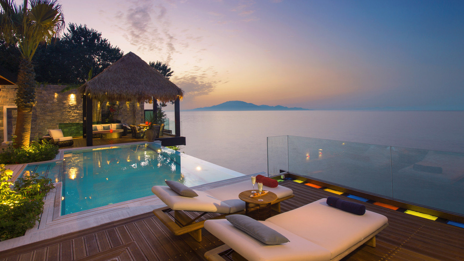 Femstjärniga Porto Zante Villas & Spa klassades ännu en gång som ett av Europas bästa hotell av resemagasinet Condé Nast Traveller 2024. Vi förstår varför. Beläget på en privat liten strand i en avskild bukt på ön Zakynthos, strax väster om det grekiska fastlandet, är det här boutiquehotellet unikt i sitt slag. Här finner du enbart nio luxuösa villor, med egen uppvärmd pool, privat trädgård och rymliga badrum klädda i marmor. Du anländer med hotellets privata och kostnadsfria limousintjänst direkt från flygplatsen och välkomnas med bubblig champagne och frukt, skönhetsartiklar av märket Bvlgari och badrockar av Armani Casa. Samtliga villor erbjuder mellan ett och fyra sovrum och har utsikt över det magiskt vackra havet, med turkost och klart vatten, klippor och blågröna öar vid horisontens rand. Precis invid stranden hittar du hotellets spa, som erbjuder över 20 olika holistiska naturliga och effektiva behandlingar som kombinerar naturliga produkter med en nyskapande behandlingsteknik. Resorten har även ett gym med en personlig tränare. Vare sig du väljer en lugn dag på hotellet, vill simma med havssköldpaddor, kryssa till Kefalonia med en privat lyxjakt eller besöka världskända Navagio Beach, gör den professionella personalen sitt yttersta för att få alla gäster att känna sig speciella och utvalda. På restaurang Club House kan du njuta av klassiska grekiska rätter såväl som andra medelhavsrätter i en avkopplande strandmiljö. Restaurang Maya serverar modern asiatisk mat i japansk och thailändsk stil. Rumsservice finns tillgängligt dygnet runt och erbjuder nylagad frukost, lätta tilltugg och à la carte-middag, som du kan avnjuta i enskildhet i din egen villa. Vill du se lite folk, sippa på ett glas champagne och lyssna på pianomusik, rekommenderar vi The Club House Bar.
