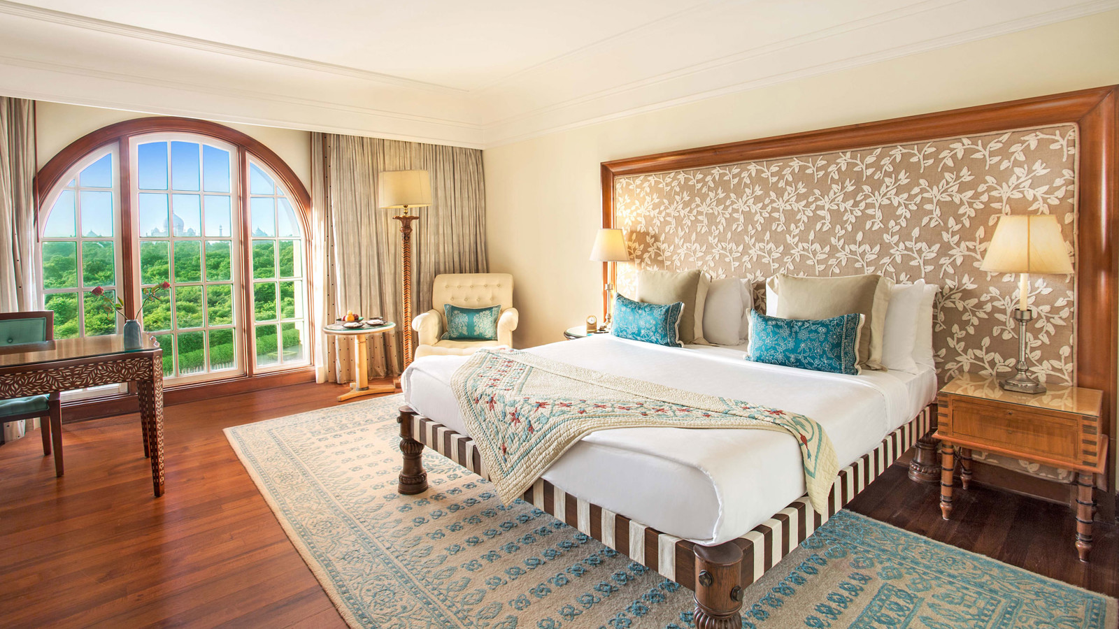 Oberoi Amarvilas byggdes 2001 för att i största omsorg sätta Taj Mahal, en av världens skönaste monument, i fokus. Varje rum erbjuder en makalös utsikt över Taj Mahal. Ändå är Oberoi Amarvilas en ögonsten i sig med en arkitektur i stil med monumenten runt omkring och ett sagolikt trädgårdslandskap med fontäner, pooler och paviljonger. Inredningen är elegant och klassisk med teakgolv, vackra möbler, lyxiga textilier och badrum i marmor. Hotellets Spa med utsikt över Taj Mahal erbjuder flera olika behandlingar, skönhetsvård, bastu och bad. Känn dig som en prins eller prinsessa!