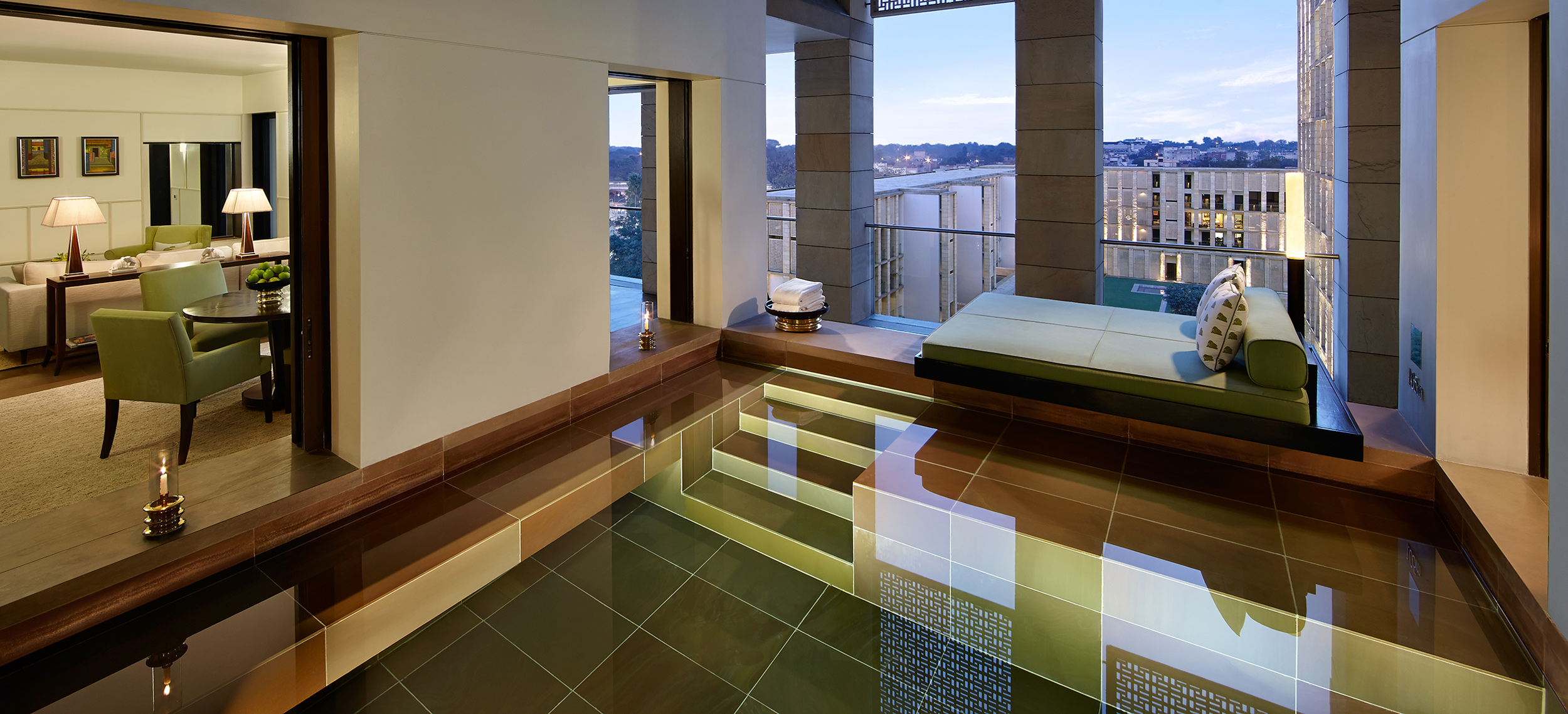 The Lodhi är enkel och lätt lyx i en stad som aldrig sover. I ett 40-tal rum och sviter råder lugn och ro, till skillnad från den livfulla atmosfären i restauranger och lounger. Den sju våningar höga byggnaden skimrar i ockra och guld och har en modern design med vackra detaljer i sina konstutställningar och vackra textilier. Komfort, värme och leenden är ledorden som gör The Lodhi till en vänlig hamn i en stad med hög puls. The Lodhi ligger behagligt placerad på vägen från Indira Gandhi-flygplatsen till Mughal-arkitekturen och de storslagna Raj-monumenten i centrum. Rum och sviter är vackra med svala stengolv, paneler i timmer, diskret belysning, Jalisskärmar. Vissa med privat terrass. Väljer du någon av de större sviterna får du New Delhis rymligaste boende. Alla rum på The Lodhi har privat plungepool och terrasser med bästa utsikten över Hajmuns grav och stadsdelen Nizamuddin. The Lodhis restauranger och barer serverar panasiatiskt cuisine ”doppat i Mellanöstern” och med en ”touch av Europa”. Det finns ett trevligt spa med Hamam, tennis- och squashbanor, pilatesstudio och en stor pool för att svalka sig vid och skölja bort en dag av Delhis hektiska puls.