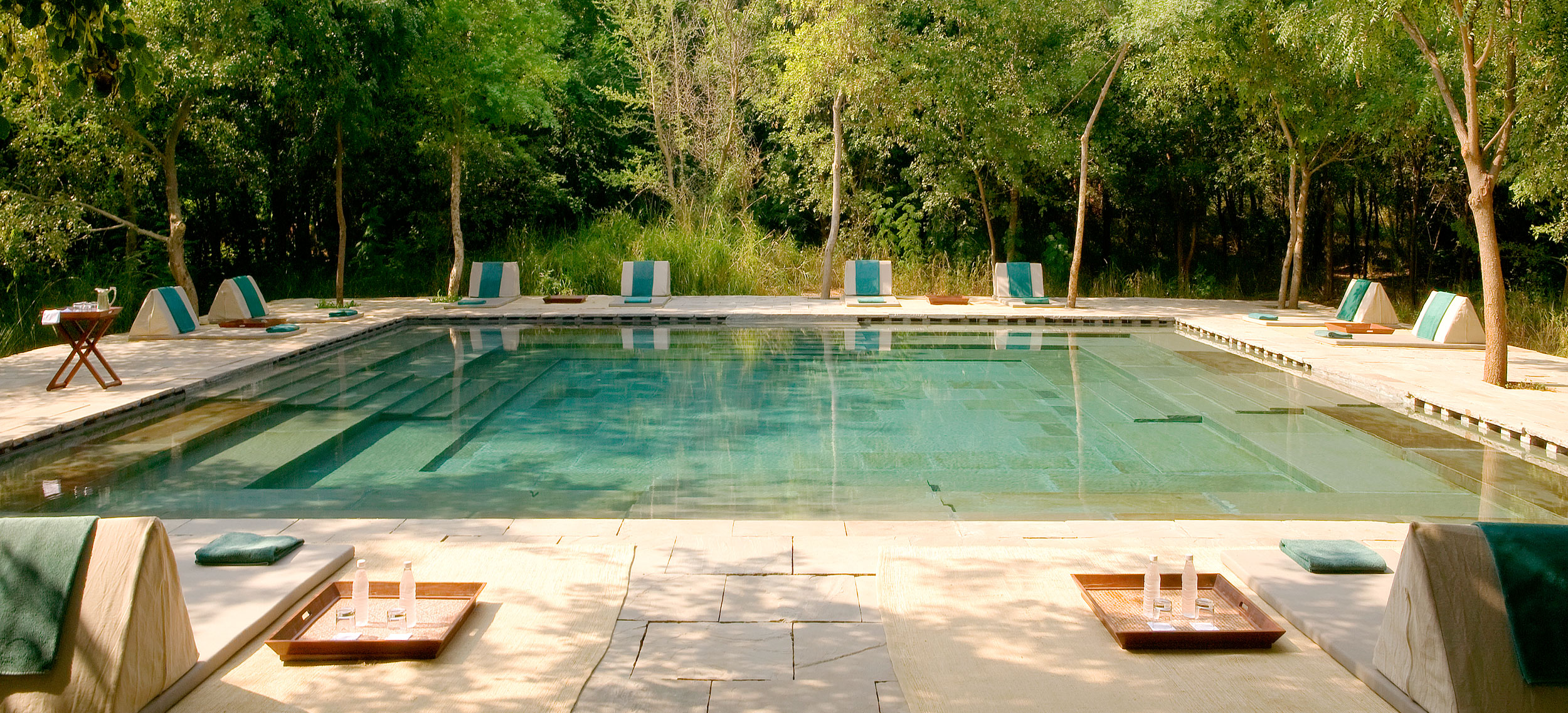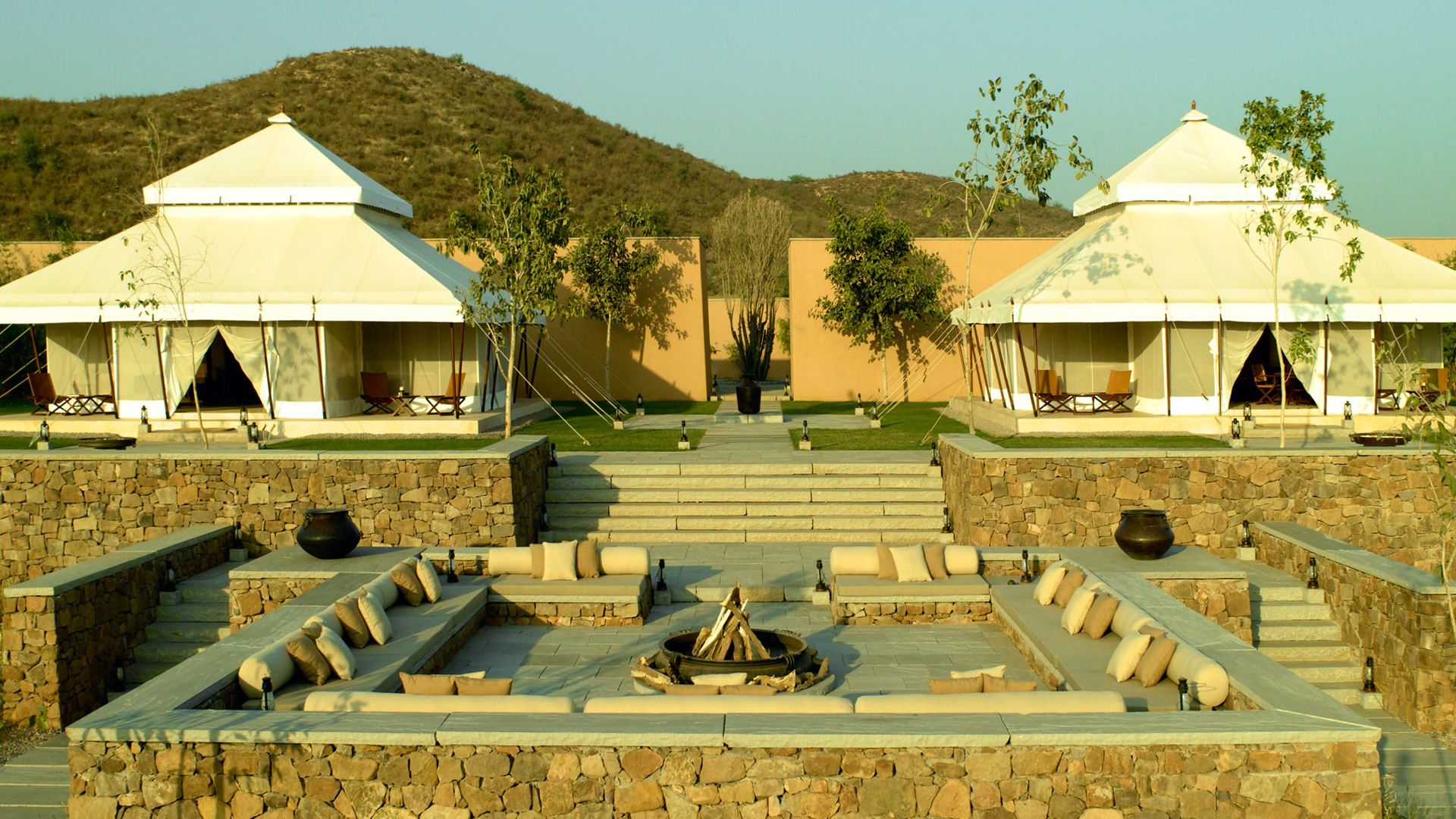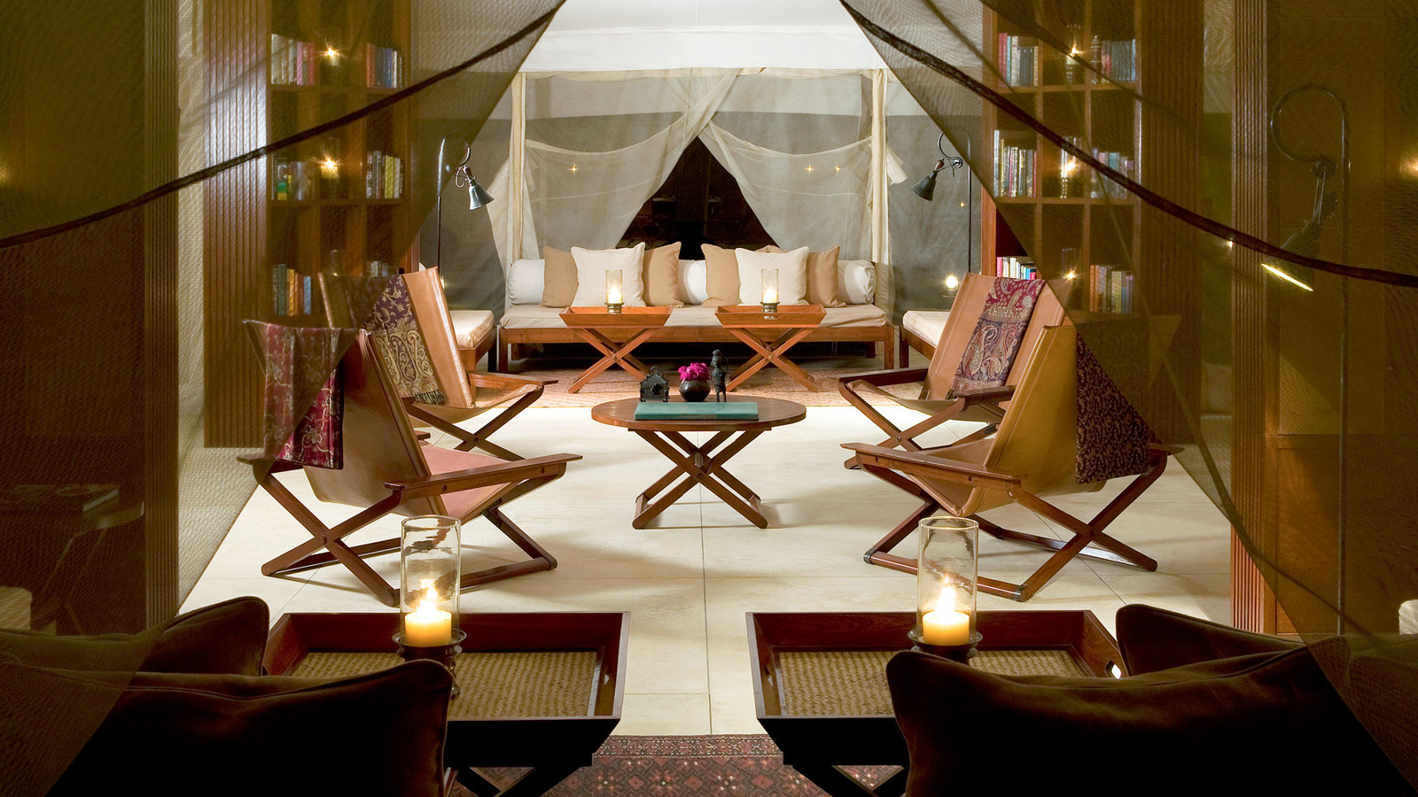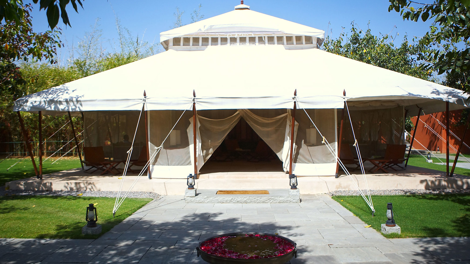 Aman-i-Khas, hindi och urdu för ”speciell” är verkligen något utöver det vanliga. Det är tio kanvasklädda tältsviter i utkanten av Rajasthans stora fristad för vilda djur - nationalparken Ranthambore. Tälten i kolonial safaristil med vacker färg och inredning i läder och linne ligger runt den stora eldstaden som är lägrets givna samlingsplats. Aman-i-Khas ligger nära ett vattenhål dit vilda djur kommer för att dricka och två gånger om dagen arrangeras safariturer med kunniga guider i jakt på den stora bengaliska tigern, leoparder, hyenor, krokodiler och chital. De luftiga tältsviterna har höga baldakiner och separat sov-, dressing- och badrum. Tältsviterna erbjuder stora sängar, inbjudande dagbäddar, badkar i marmor och handgjorda möbler i teak och bomullstyger i en ton av crème. Varje tält har privat butlerservice. Vill du vara extra privat rekommenderas tält nummer 1 som är beläget längst bort från lägret och är det tält där Katie Perry och Russell Brand valde när de firade sitt bröllop här. Köket serverar indiska och västerländska rätter med grönsaker odlade i den egna trädgården. Det finns även en lounge och ett spa där du njuter massage och andra behandlingar.