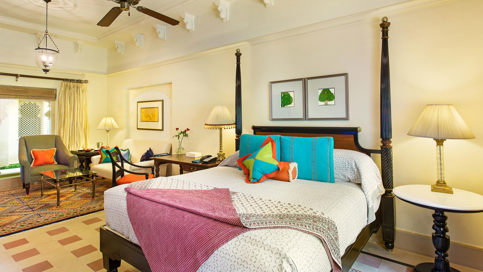Vackert beläget på strandbanken vid sjön Pichola ligger detta romantiska palats. Det är ett enormt bygge som tog tio år att bygga, med 450 handsnidade kolonner, guldförgyllda kupoler och vackra valv. Som gäst kan du känna dig kunglig med högsta tänkbara lyx i både rum och sviter samt oklanderlig service. Inredningen är elegant och påkostad med marmor i badrummen och alla moderna bekvämligheter som kan behövas. Många av rummen har en enskild uteplats och från sviterna får du en bedårande utsikt över den gamla staden Udaipur medan du badar i din egen privata pool. Matupplevelserna med fantastiskt skickliga kockar och oförglömlig atmosfär bidrar till det helhetsintryck som gör Oberoi Udaivilas till något alldeles unikt.