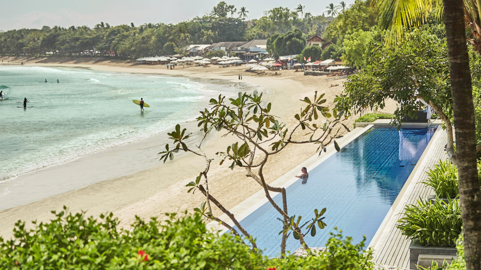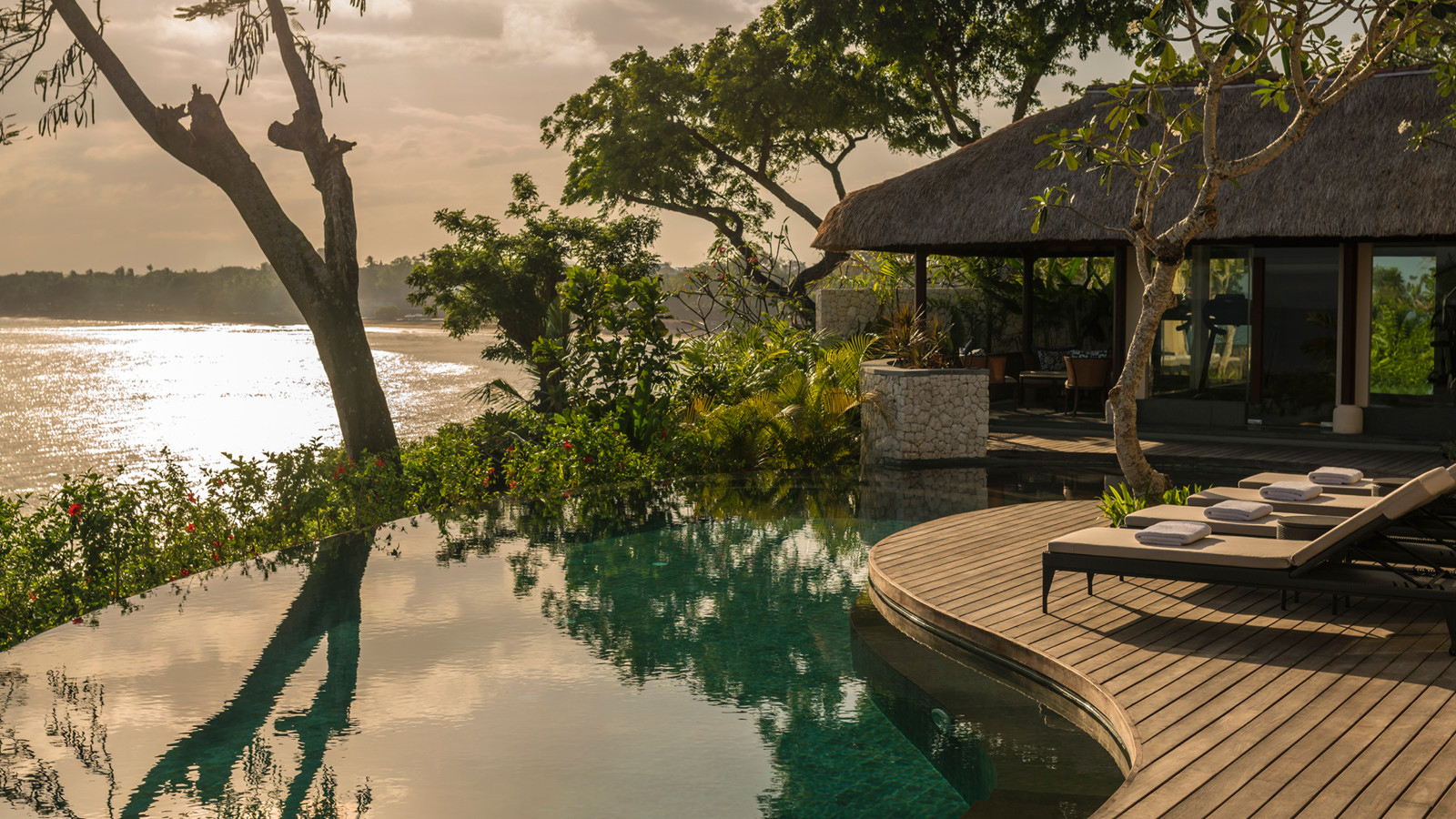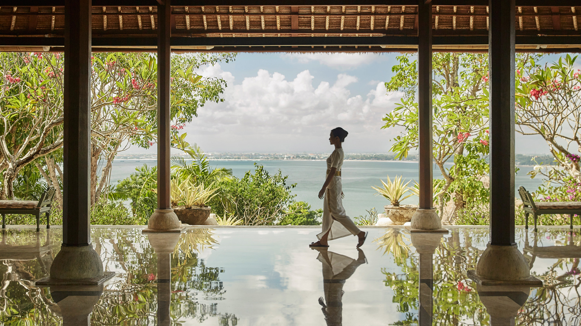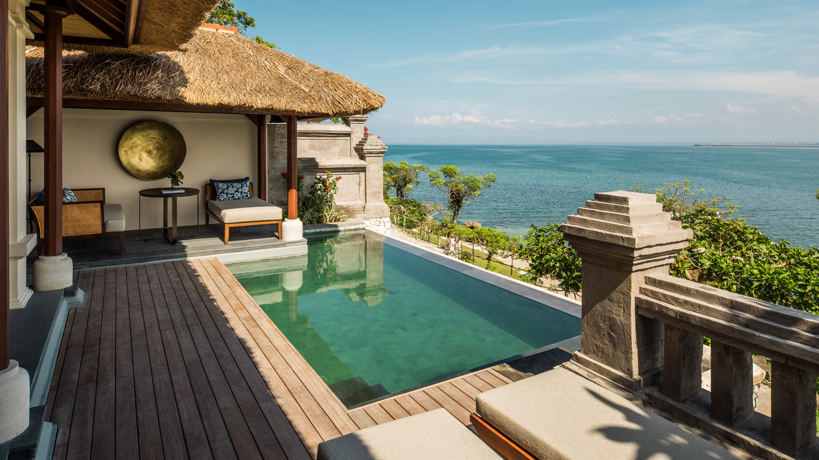På en bergssluttning med dramatisk utsikt över Jimbaran Bay ligger prisbelönta Four Seasons Resort Bali at Jimbaran Bay. Ett lugnt och lyxigt resort med ett vackert boende där varje villa har en separat boendedel och en intill liggande härlig och avkopplande utomhuspaviljong. Förutom en magnifik havsutsikt har varje villa dessutom en privat liten pool och utomhusdusch. Ett sobert och klassiskt hotell som med Jimba Kids Club även passar de yngre. Centralt beläget vid Jimbaran Bay men ändå avskilt och privat.