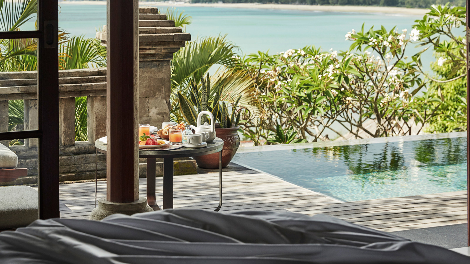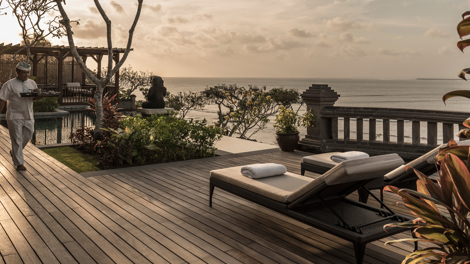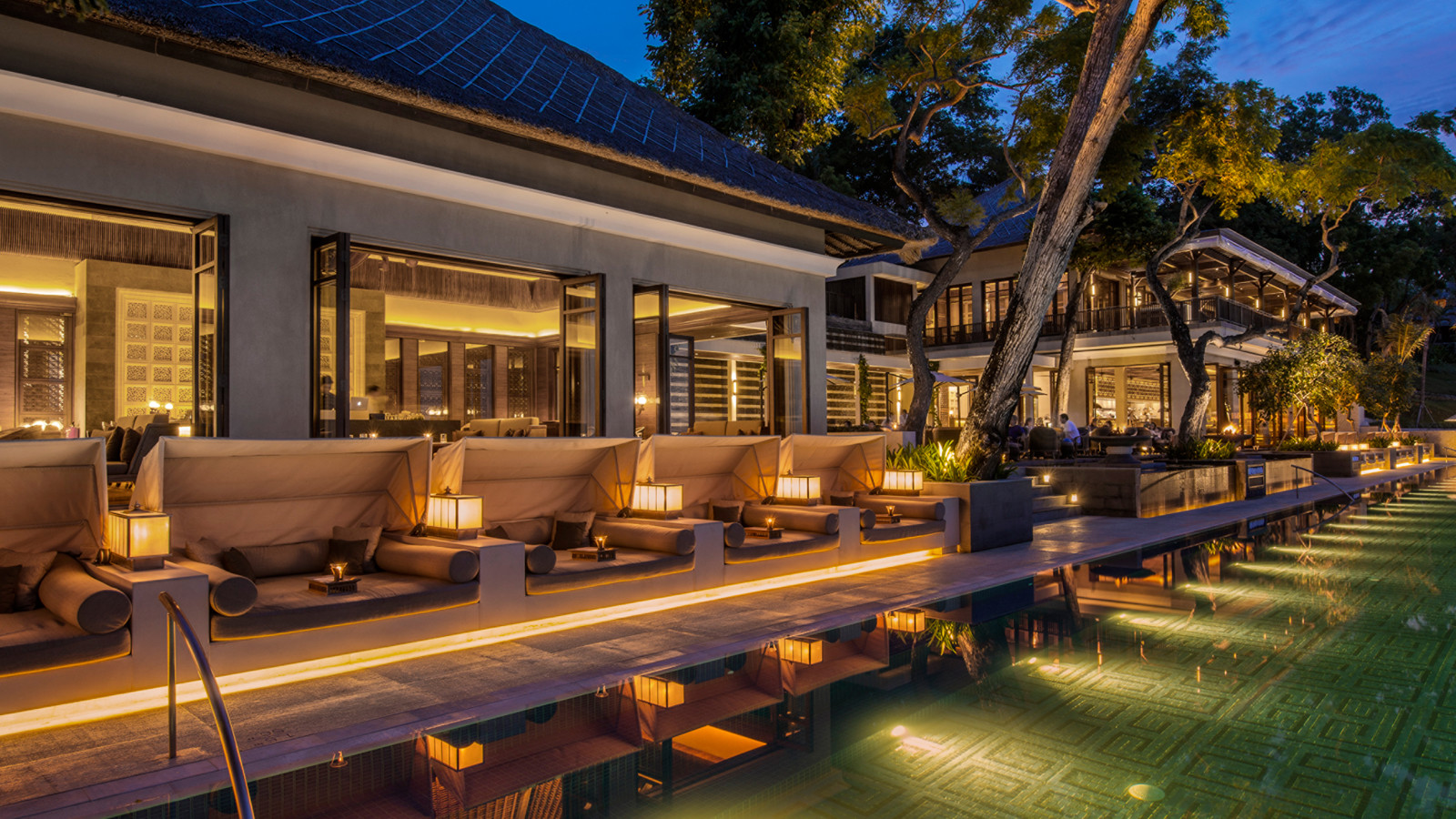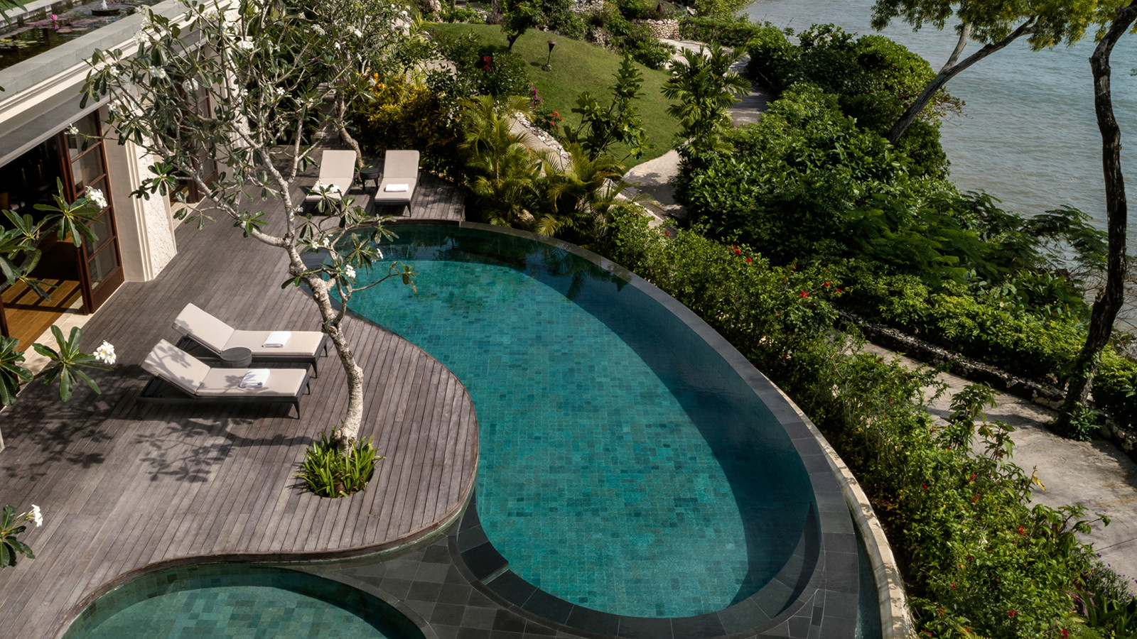 På en bergssluttning med dramatisk utsikt över Jimbaran Bay ligger prisbelönta Four Seasons Resort Bali at Jimbaran Bay. Ett lugnt och lyxigt resort med ett vackert boende där varje villa har en separat boendedel och en intill liggande härlig och avkopplande utomhuspaviljong. Förutom en magnifik havsutsikt har varje villa dessutom en privat liten pool och utomhusdusch. Ett sobert och klassiskt hotell som med Jimba Kids Club även passar de yngre. Centralt beläget vid Jimbaran Bay men ändå avskilt och privat.