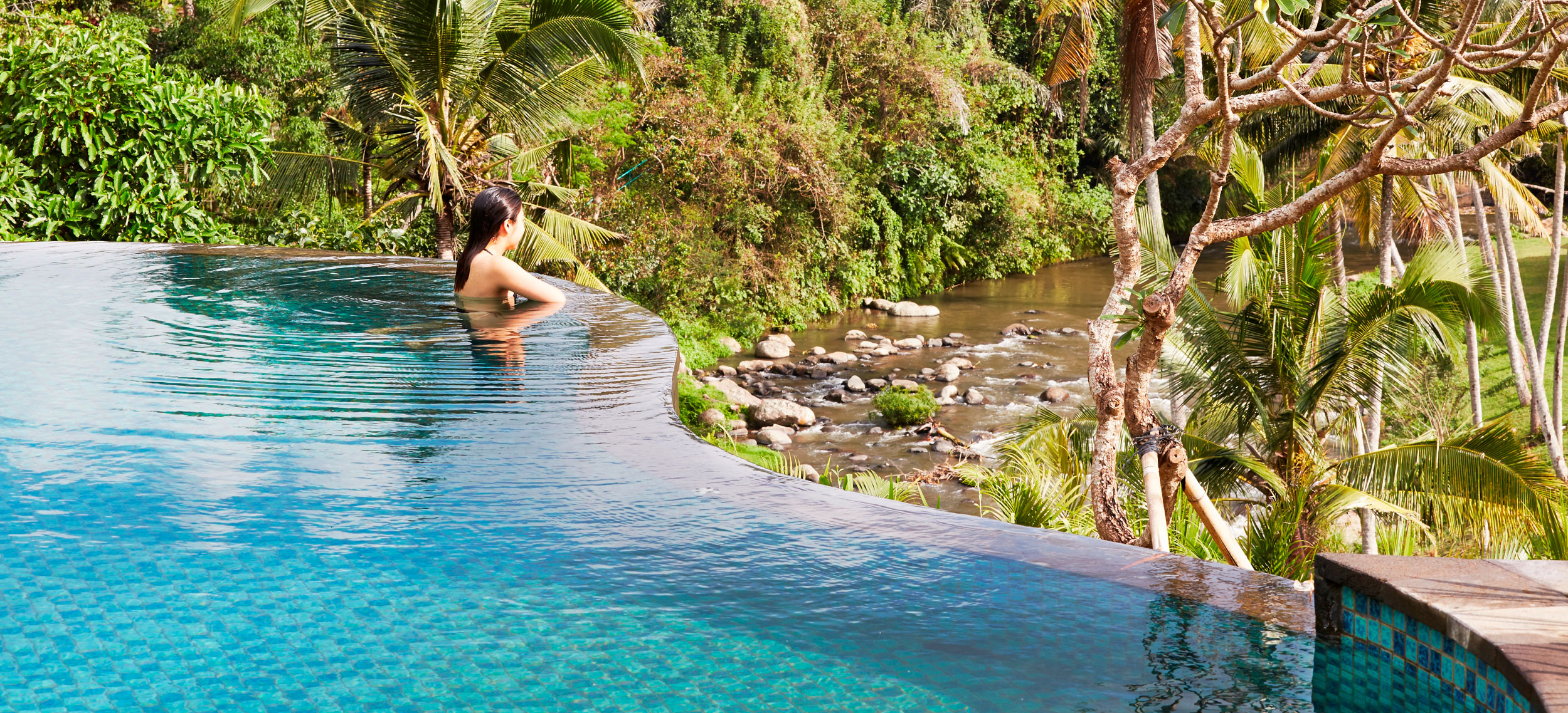 Ubud, Balis tropiska och kulturella hjärta har i över 30 år varit en samlingsplats för några av världens allra bästa hotell. Nu har ytterligare ett lagts till den exklusiva samlingen: Mandapa, a Ritz-Carlton Reserve. Hotellet ligger mot en vackert terrasserad vägg längs floden Ayung och utsikten över floden. Den grönskande dalen och de djungelklädda bergen är magnifik, något man tagit till sig i designen av såväl villor som hotellet i helhet. Slaget av en traditionell balinesisk gong-gong markerar att du anlänt till hotellet och därefter blir direkt förd till din villa för en avslappnad check-in. Den (minsta!) av sviter mäter nästan 100 kvadratmeter, sedan blir det bara rymligare och rymligare upp till de privata poolvillorna. De flesta villorna ligger precis vid flodstranden och har en sömlös planlösning i diskret lyx med underbart sovrum och elegant glamorösa badrum i mörkbrunt och vitt. Dessutom med 24-timmars butler service. Mellan villor och sviter är terrasserade risfält en del av designen, precis som de vackra trädgårdarna. Det spirituella spaet har en vacker yogapaviljong, öppna behandlingsrum som vetter mot floden och är utrustat med både bastu, ångbad och isfontän. I direkt anslutning ligger restaurangen Kubu, en given favoritplats för en sängfösare - kanske vid något av de bambutäckta och avsides borden direkt vid floden.