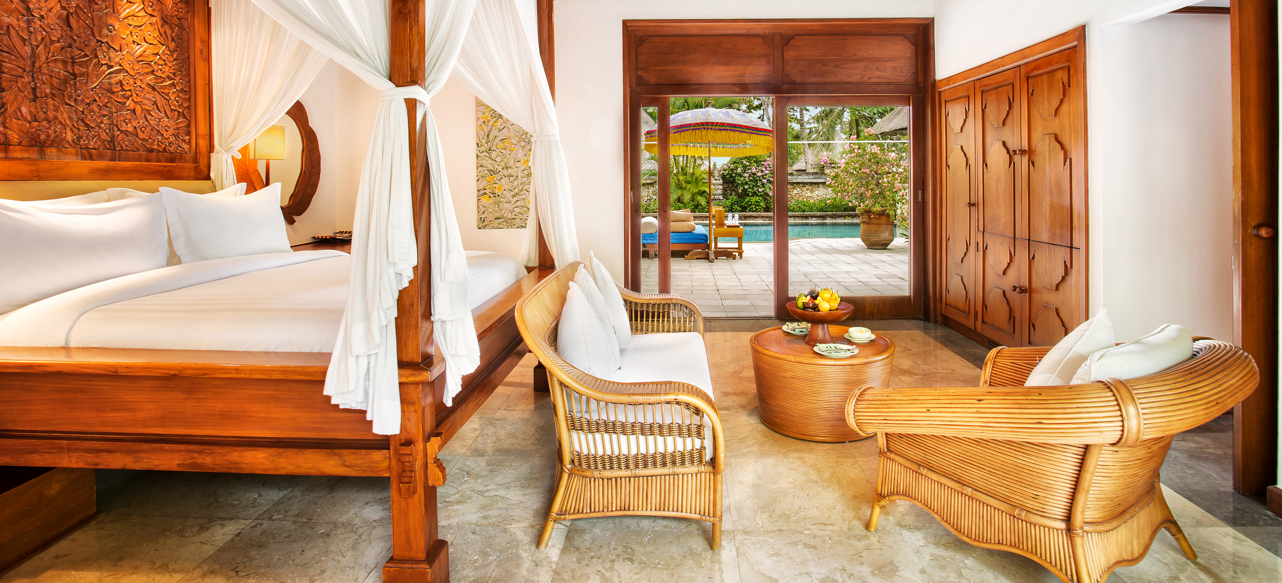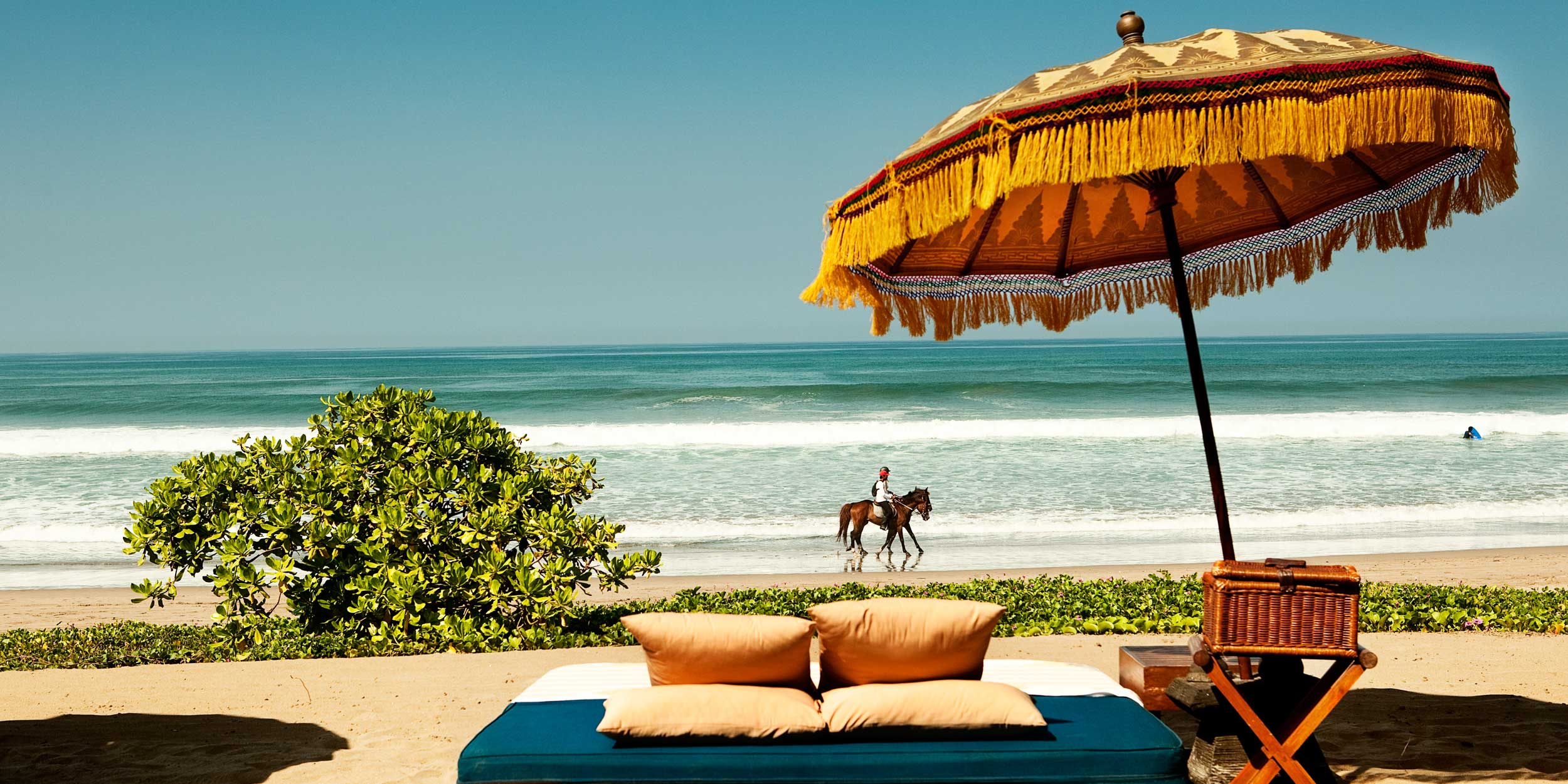 The Oberoi Beach Resort är ett stycke balinesiskt himmelrike direkt på stranden. I en oas av tropisk skönhet, lugn och lyx har man skapat en egen liten by där sviterna ligger som ett pärlband längs Balis vackraste strand, Seminyak. Den privata känslan går igen i alla rum som uttrycker både tidlös skönhet, romantik och mystik i traditionell stil med stora halmtak, privata pooler, trädgårdar och en inredning utsmyckad med balinesisk konst, hantverk och antikviteter. Dagarna spenderar du vid stranden, vid den vackra poolen eller njuter välgörande behandlingar under bar himmel på hotellets annorlunda utomhusspa. Seminyaks fantastiska solnedgång upplevs bäst på någon av The Oberois fyra restauranger med utsökt mat och levande ljus till tonerna av traditionell musik och dans. The Oberoi Bali har flera exklusiva utflykter och arrangemang du som gäst kan ta del av. Till exempel en Full Moon Ceremony vid ett tempel med hinduistiska munkar, och en utflykt till The Turtle Sanctuary där havsskölpaddan med det annorlunda svenska namnet Sydlig Bastardsköldpadda kläcks, föds upp och sätts ut i havet.