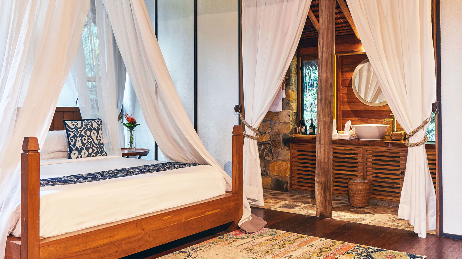 Bawah Reserve ligger i den sagolikt vackra och oexploaterade arkipelagen Anambas - 150 nautiska mil nordost om Singapore. De sex öarna stryker sig som ett lätt färgstänk av grönt mot den det klarblå vattnet i Sydkinesiska sjön. På den vackraste av öarna Bawah står 35 villor av safaritält redo att ta emot sina gäster. Hela ön är en privat resort med 13 stränder samt tre laguner i en natur där skogen aldrig blivit bränd eller beskuren och korallrevens fiskar varken blivit fiskade eller sett en snorklare. Det är kanske därför de inte visar någon rädsla när du kommer glidande genom vattnet för en morgonsnorkling innan frukost på den egna terrassen ovan vatten. Boendet är fördelat på tre Garden Villas i den frodiga djungeln, 21 Beach Villas med utsikt över lagunerna, och elva Water Villas som fångar den otroliga soluppgången samt magiska solnedgången. Allt i en naturlig design med bambu och tak av thatch, formade efter ön Bawahs egen silhuett. Bawah Reserve är en jungfruresa i sig och naturen kommer alltid i första rummet på denna unika plats i världen.