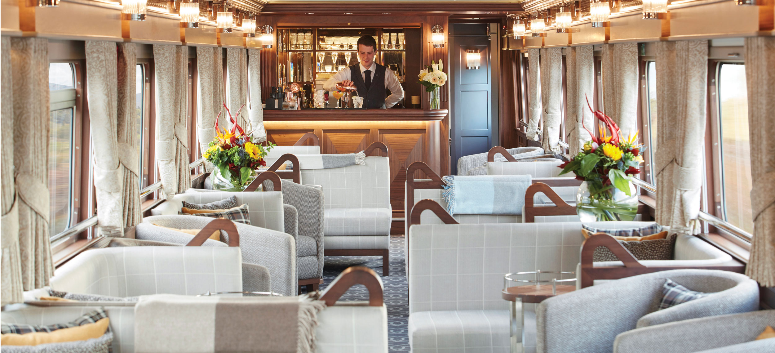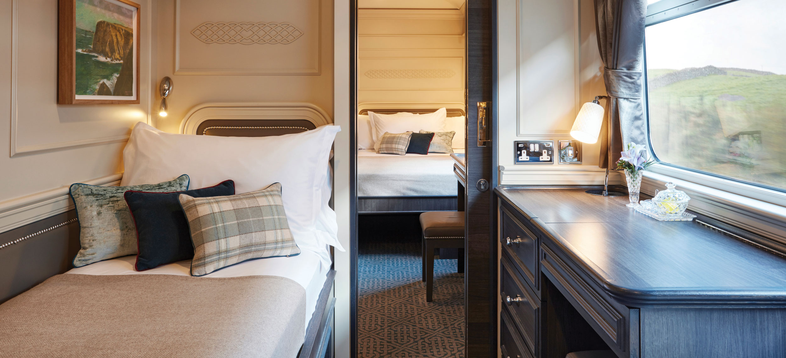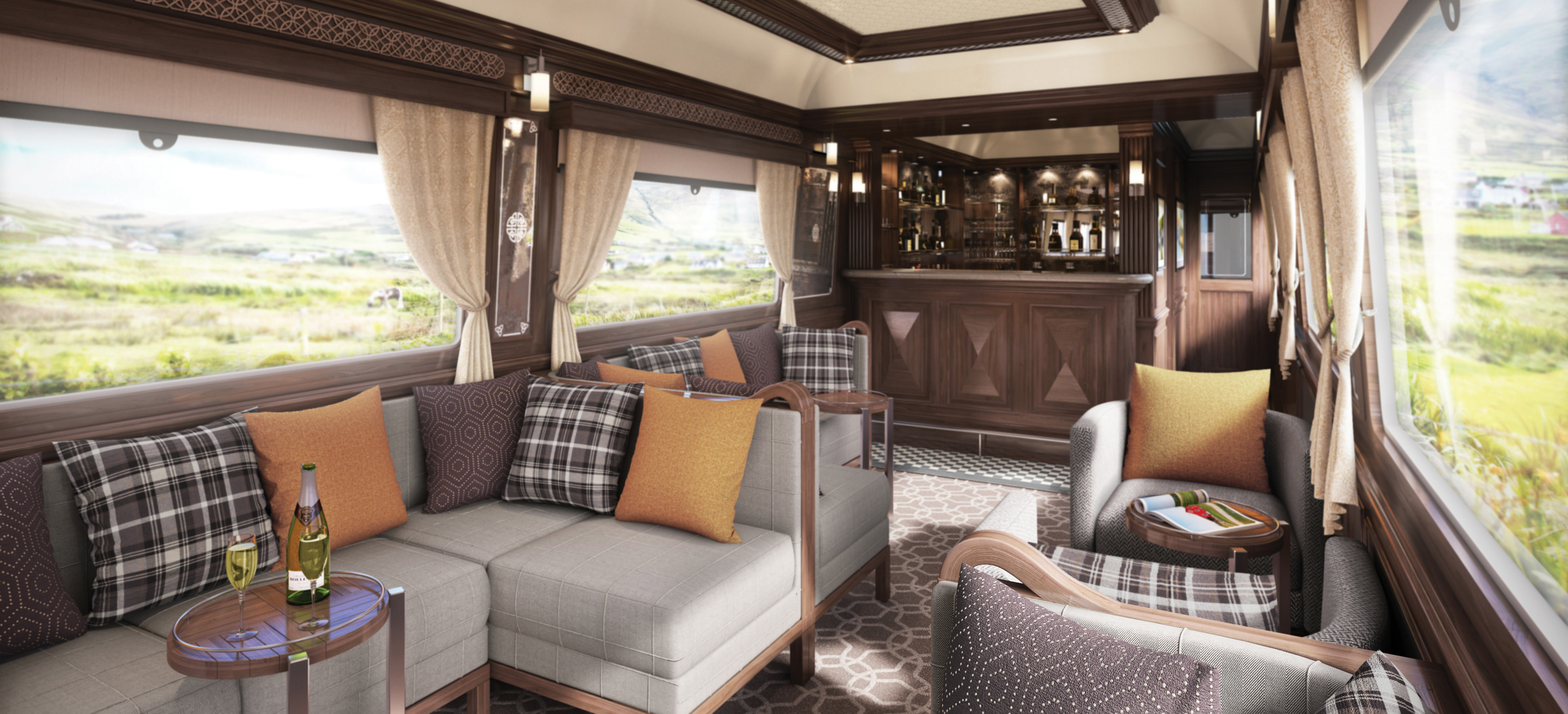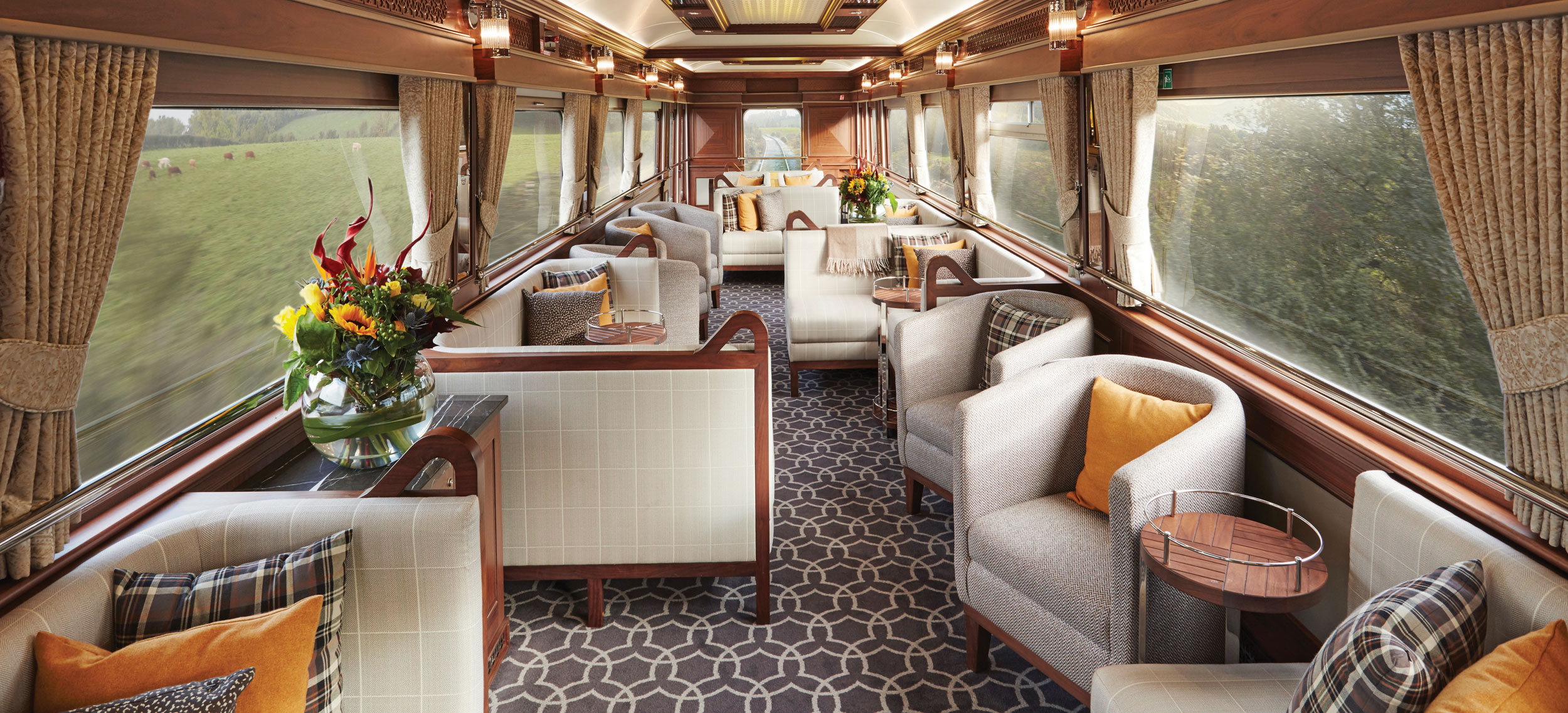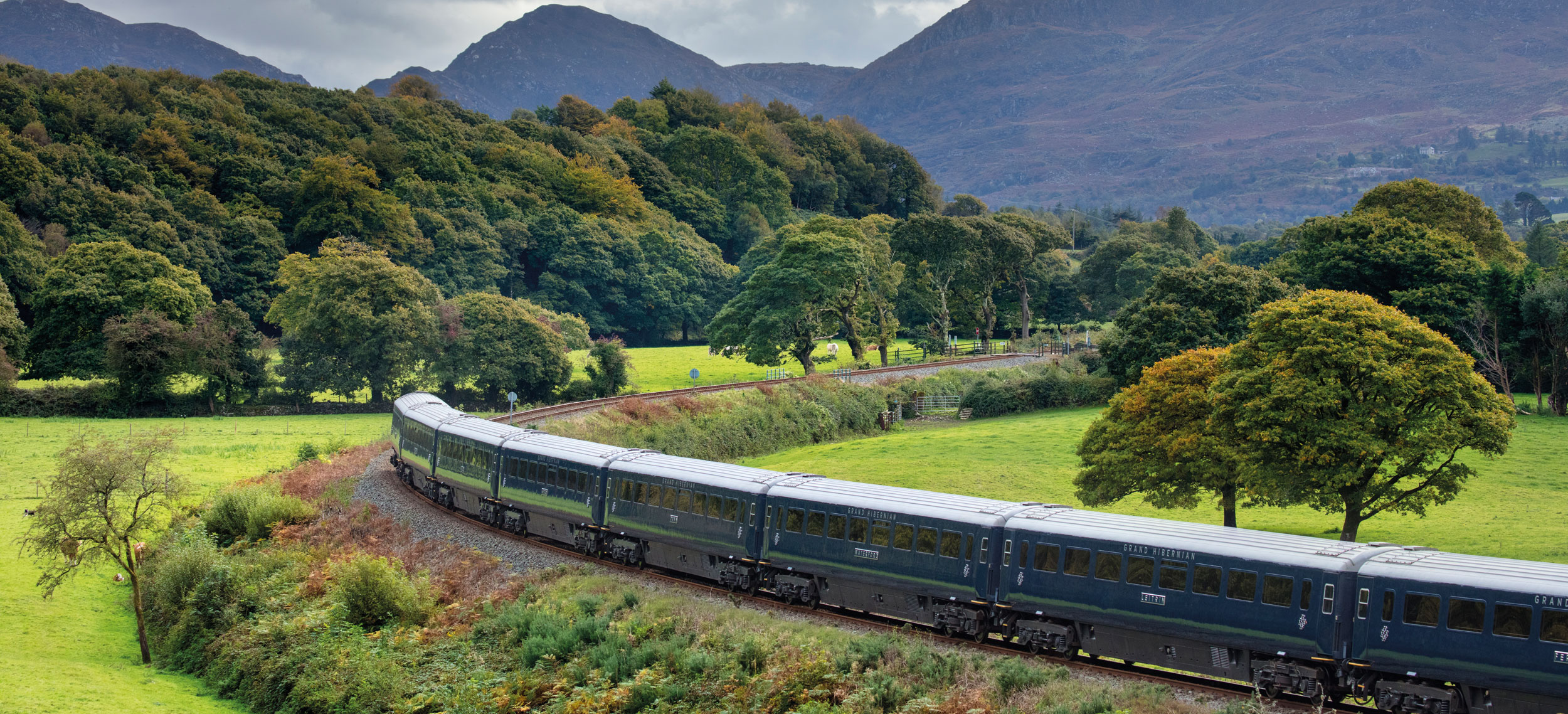 Den senaste nyheten i Belmonds och världens mest exklusiva samling av tåg är Belmond Grand Hibernian som med sedvanlig stil, klass och elegans kommer att servera sina gäster en oförglömlig upplevelse. Från Dublin går turerna till mytomspunna platser som Cork, Killarney, Connemara, Galway och Belfast. Det blir täta stopp och intressanta utflykter varvat med glädjen från ett gastronomi-cuisine som får Dublins redan högklassiga restauranger att verka lite bleka. Tågets 16 ljusa kabiner har en design med inspiration från den klassiska gregorianska arkitekturen med en lagom del folklore, tradition och modern twist. Varje tågvagn har namn efter ett irländskt län och kabinerna är dekorerade för att matcha länets klassiska tartantyg. Kerry har sofistikerade nyanser av lila medan Down har levande toner i orange. Fylliga röda toner regerar i Leitrim och svala blå toner hälsar sina gäster välkomna i Waterford. Alla kupéer kan kopplas samman om familjer reser tillsammans. Det finns även en kabin för den som har nedsatt rörlighet. Njut av de vackra, vilda och varierade irländska scenerierna från panoramavagnen med en iskall Stout eller Bushmill’s i högerhandens glas av kristall från Wexford.
