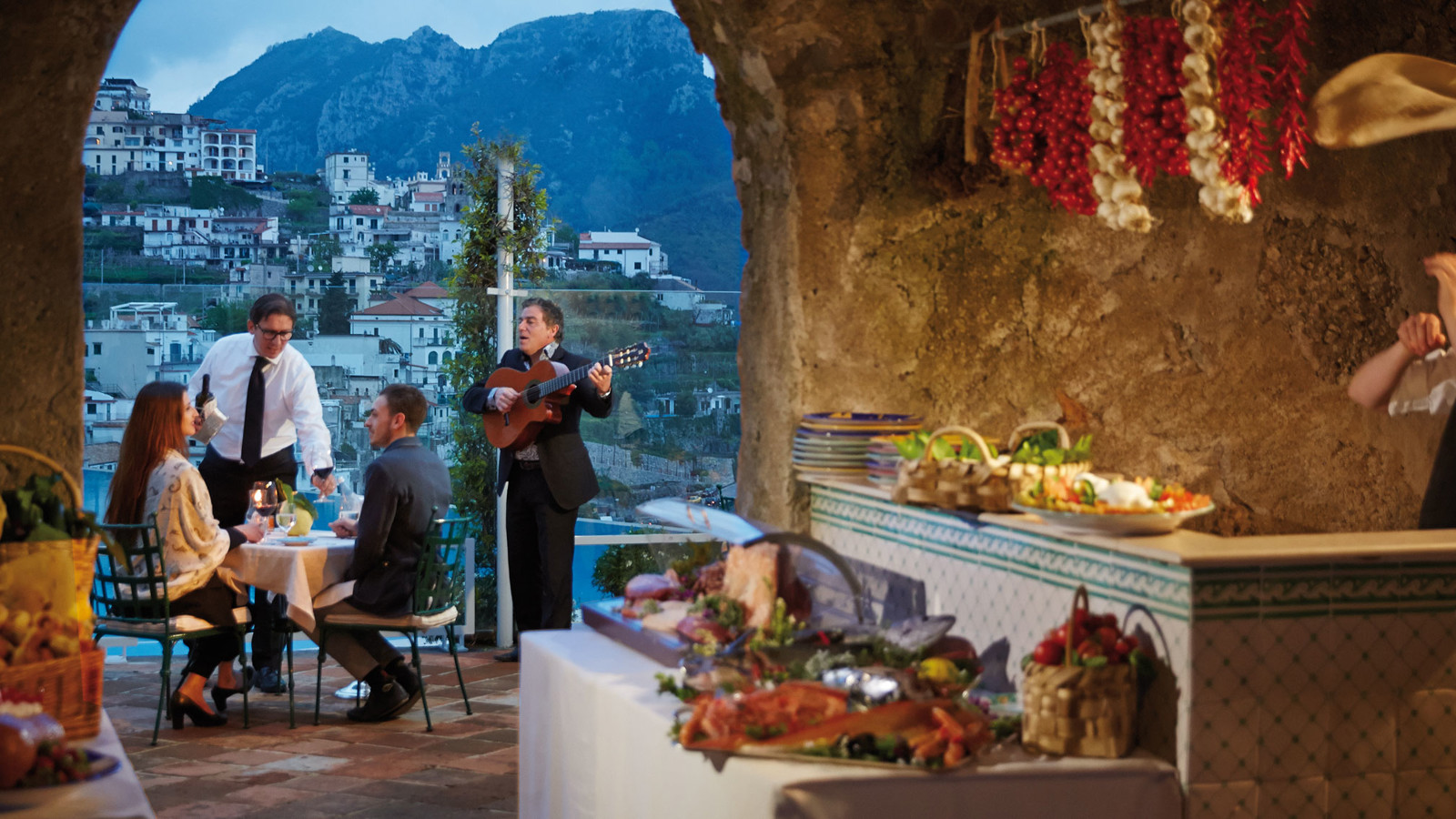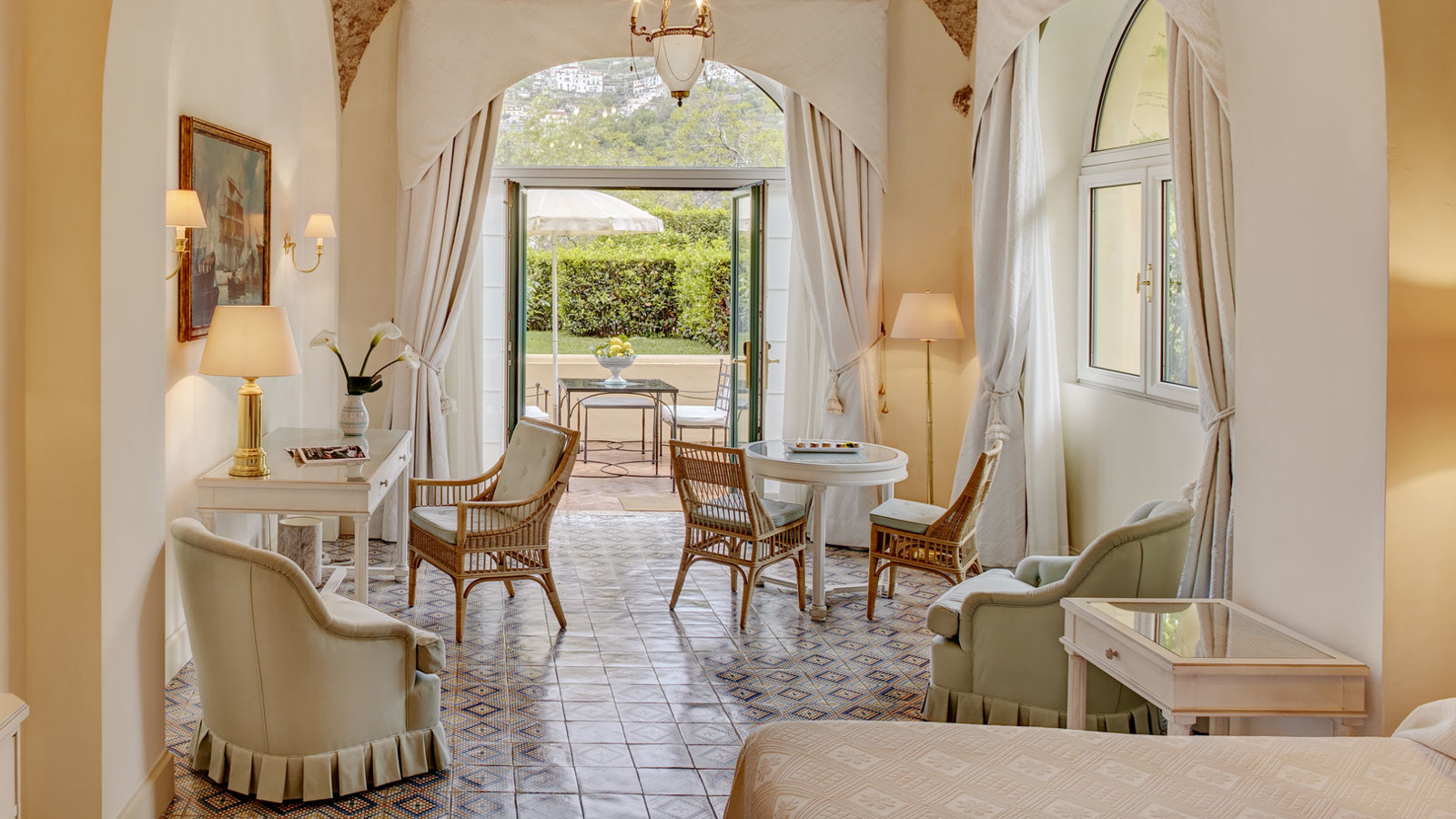 Caruso är ett av den makalöst vackra Amalfikustens allra mest romantiska hotell. Det är det bäst belägna hotellet i rika Ravello och sveper över terrasserade trädgårdar på ett klippsprång med en hänförande utsikt över Salernobukten i flera väderstreck. Stilen är lika stor som operasångaren och hotellets namne med stora hallar i marmor, runda bågar och välvda tak med såväl fresker som ljuskronor. Det gamla palatset med anor från medeltiden pryds med ädla antikviteter och gamla mästerverk, men utan att det blir pompöst tack vare den varma och härliga personalen. Alla rum och sviter har havsutsikt och någon form av privat terrass eller trädgård. Inredningen är fräsch med textilier från Frette i soliga medelhavsfärger. Badrummen är stora, i marmor med fluffiga badrockar, tofflor och otaliga produkter från Bvlgari och Penhaglion. Den berömda infinitypoolen återfinns ständigt i topplistorna över världen bästa hotellpooler, och det finns dessutom ett utsökt spa och gym. Hotellet erbjuder transfer flera gånger dagligen till Amalfi och Positano. Som gäst erbjuds man också en gratis båttur längs den berömda kusten. Köket serverar det bästa ur det italienska köket, oavsett om du njuter pezzogna (röd havsaborre) på den romantiska terrassen med utsikt över bukten eller en linguini med musslor eller hummer al fresco vid poolen. O sole mio!